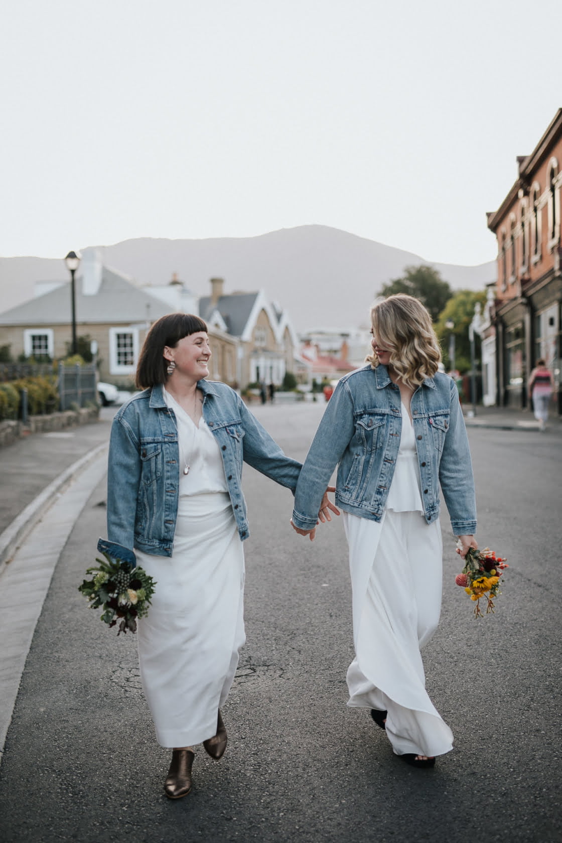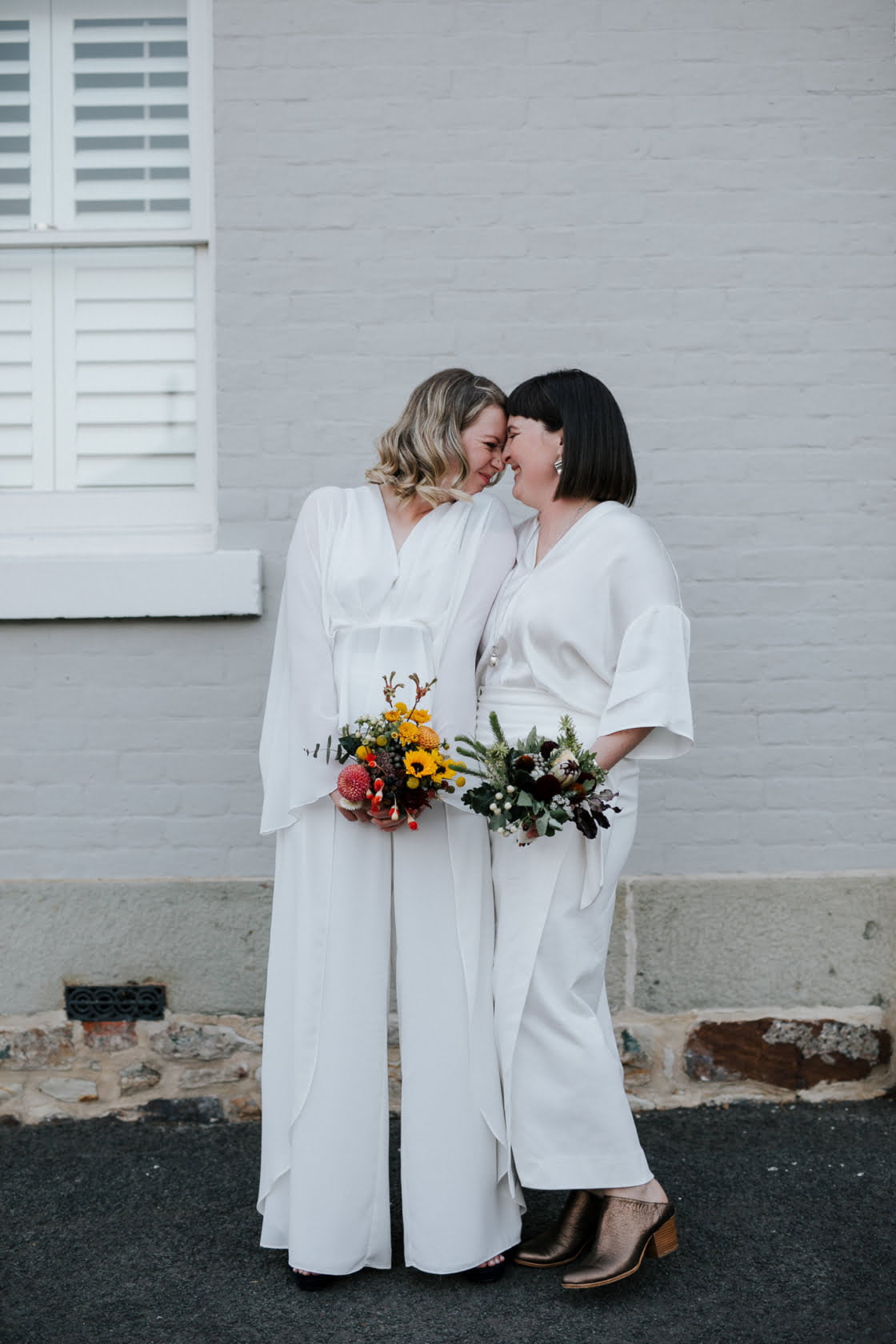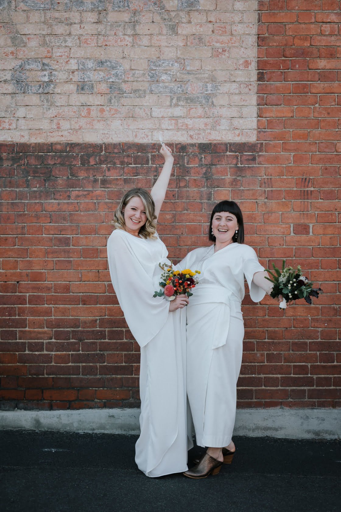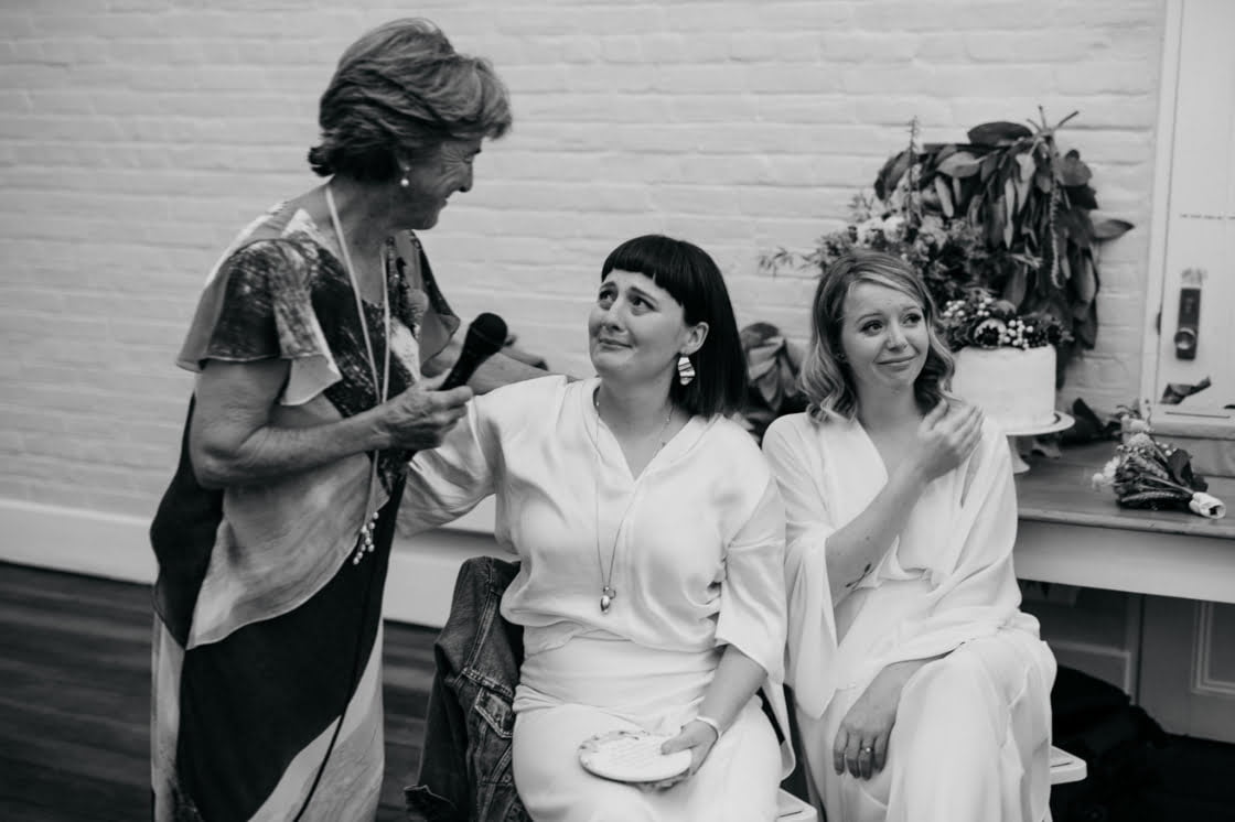 STANDOUT VENDORS “Our Photographer, Nina Hamilton – her pictures are just beyond. They are so professional and beautiful, and she really captured who we are as a couple. Merren Wilkinson (of Cinta Celebrate Love) was gorgeous. She has this glowing energy and was so personable and warm in her manner. Lisa Kingston Flowers was incredible. At Lisa’s encouragement, we went down early to Salamanca markets on the Saturday and picked our flowers from Lisa’s stall. She has amazing posies (two of which became our bride bouquets), and bunches of dahlia’s and eucalyptus greenery.”