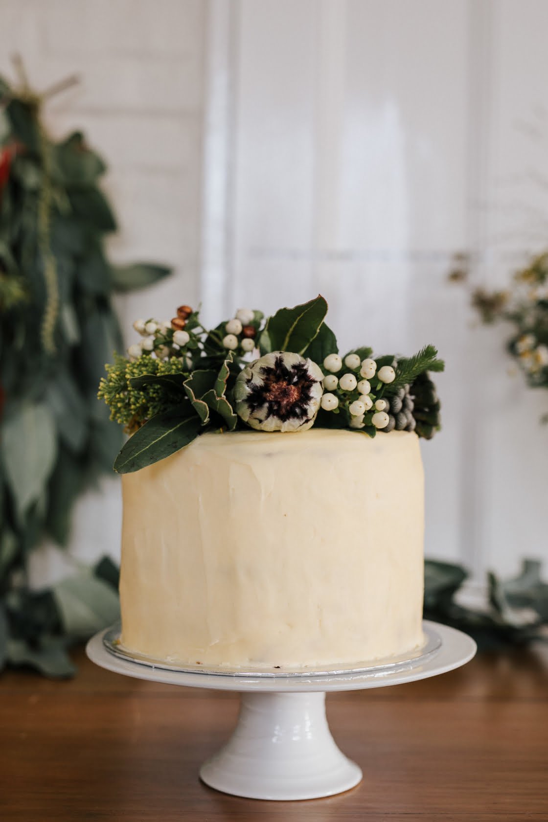 FAVE DETAILS “Amber’s wedding cake was simple and delicious – a white chocolate, Madeira cake with buttercream icing and a thin layer of fresh strawberry jelly. We also loved our arbour, it was a piece of driftwood we had found months earlier, and my sister and two close friends spent the day before dressing the wood with greens and florals from Lisa Kingston Flowers.”