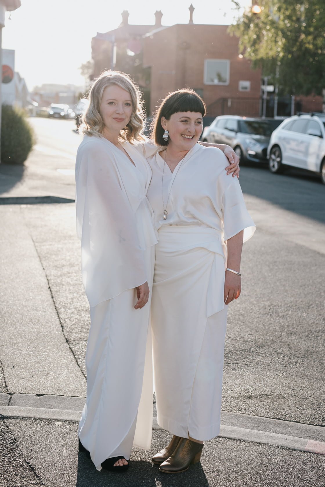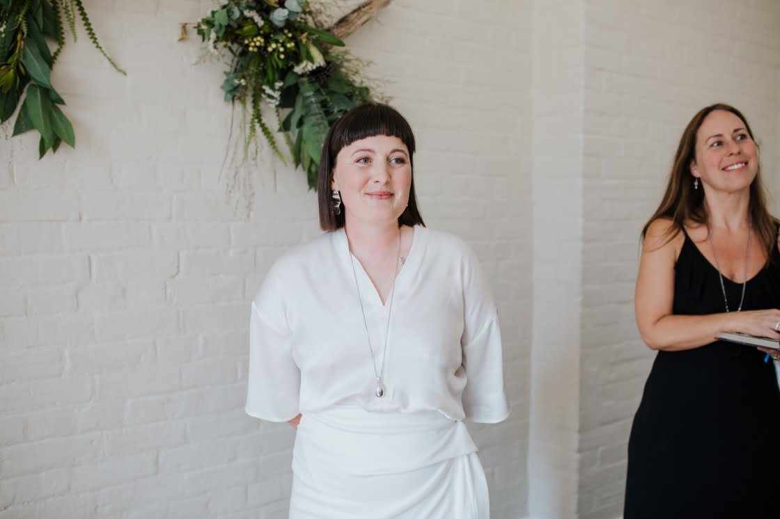 CONTRIBUTING VENDORS Photographer Nina Hamilton Florist Lisa Kingston Flowers Ceremony & Reception Battery Point Community Catering Sabre. Donuts Lady Hester Entertainment Lasts & JD Celebrant Cinta Celebrate Love Rings Courtney Jackson Jewellery Event Hire Salters Hire (Crockery, cutlery, tables, chairs, glasses, wine barrels & outdoor umbrellas) THE BRIDE (Bridget) Top Mossimo via MYER Pants Tussah via The Iconic Shoes Gorman Hair Amanda Joy Hair Stylist Makeup Brides by Kate THE BRIDE (Amber) Top Seed Skirt Bianca Spender Shoes Gorman Accessories Toyah Perry (Earrings) Hair Amanda Joy Hair Stylist Makeup Brides by Kate