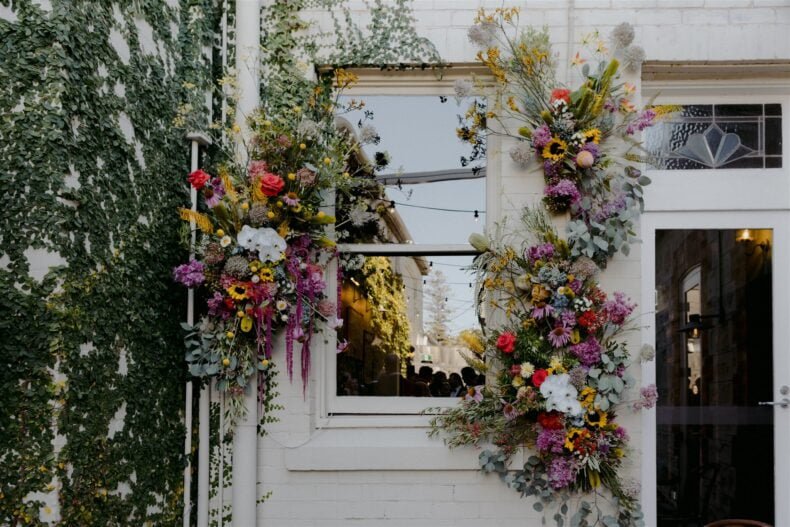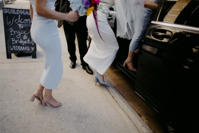CONTRIBUTING VENDORS Photographer Flossy Photo Event Planner Amelia – Guildhall Event Space Florist The Flowergirl Perth Stationery Bryce Conway (Groom) & Henry King (Friend) Venue & Catering Guildhall Event Space Cake Maker Wild Bakery Lighting Hire JC Festoon Lighting Signage Bridget Pendergast (Bride), Bryce Conway (Groom) & Sticker Mule Celebrant Married by Megs Rings Sarah & Sebastian Entertainment Yon Jovi THE BRIDE Bridal Gown Designer Harriette Gordon Bridal Boutique Noa Bridal Veil Amélie George Shoes Zomp Hair & Makeup The Pretty Parlour Bridesmaid Dresses Bec + Bridge THE GROOM Suit & Pants M.J. Bale Shirt, Cufflinks & Bow Tie P.Johnson Shoes Ted Baker Watch Longines Barber / Grooming Billy Snips – Bloodhound Barbers