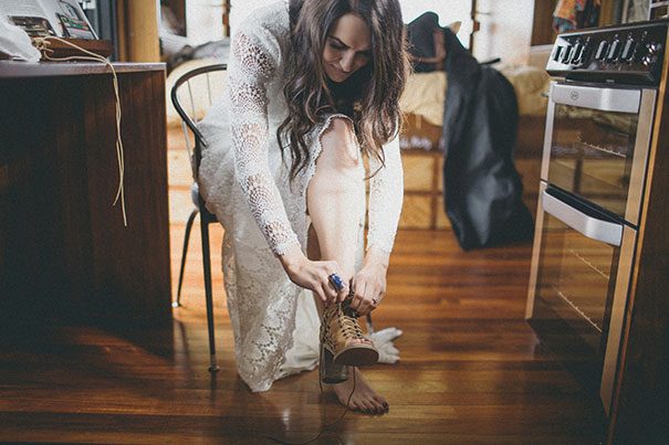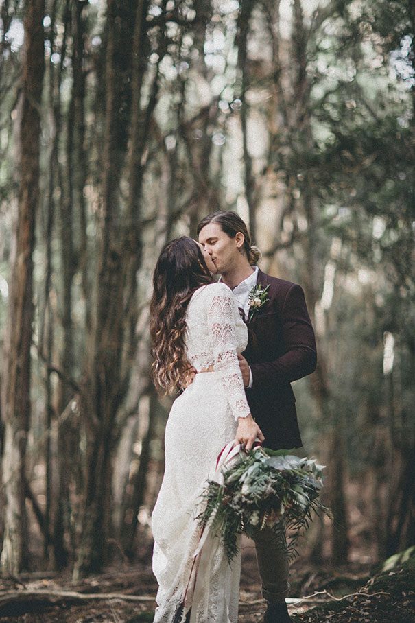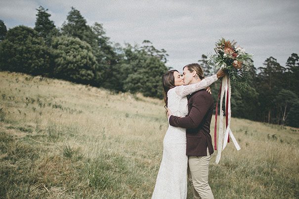 CREDITS Photos Joshua Mikhaiel // Florist Eb and Flo // Ceremony venue The Container, TAS // Celebrant Kellie Maree Cutler Civil Celebrant // Rings Zoara and Waldemar Jewellers // Bridal gown Daughters Of Simone // Lingerie Bras and Things // Shoes Midas // Accessories Sportsgirl and Tree of Life // Groom’s Jacket Politix // Pants Topshop // Shoes Windsor Smith // Socks Roger David.