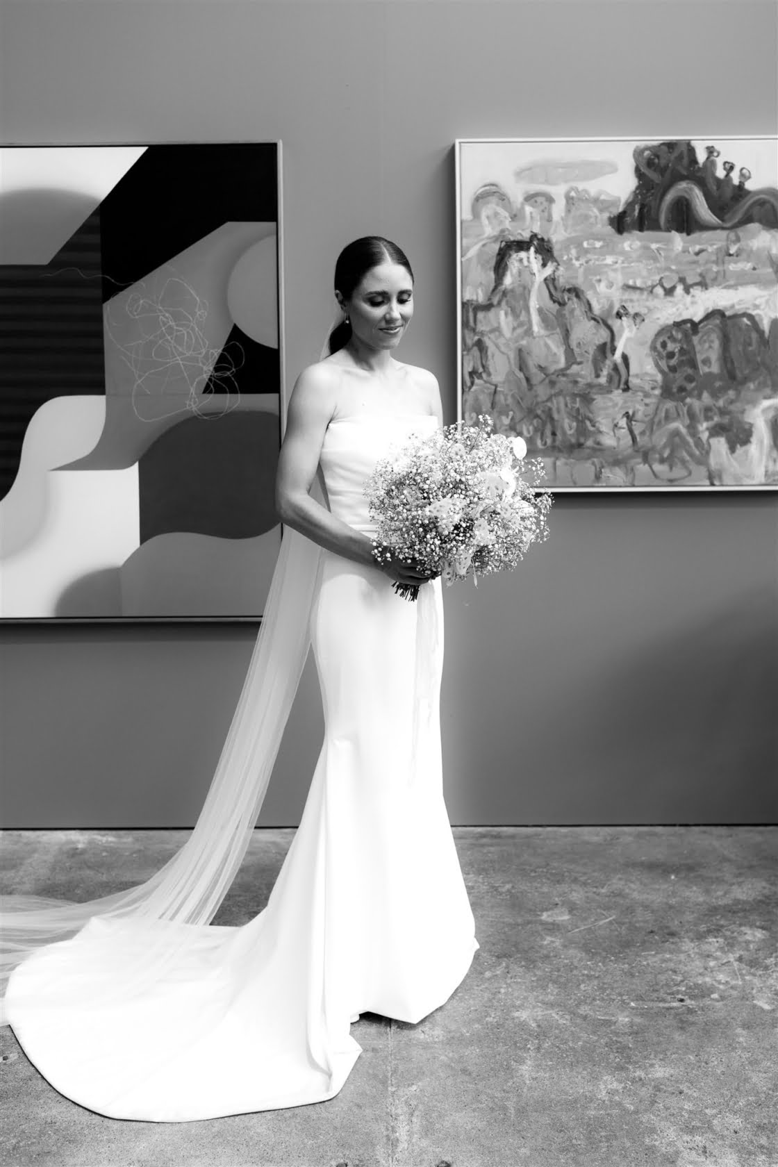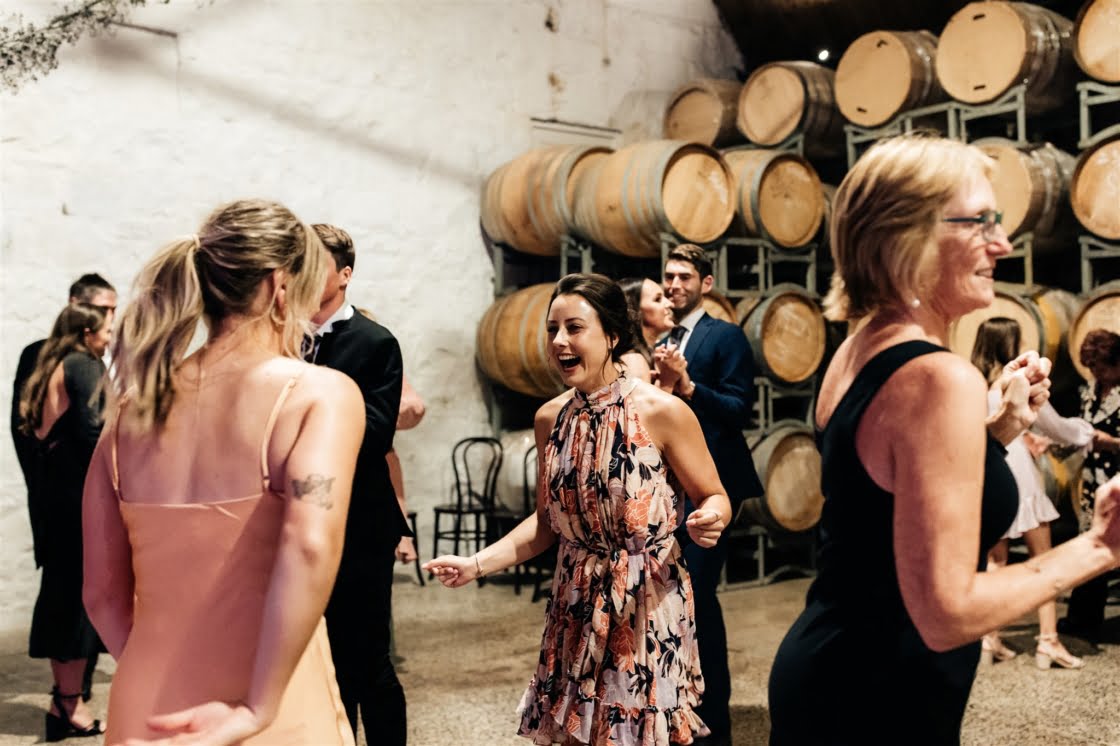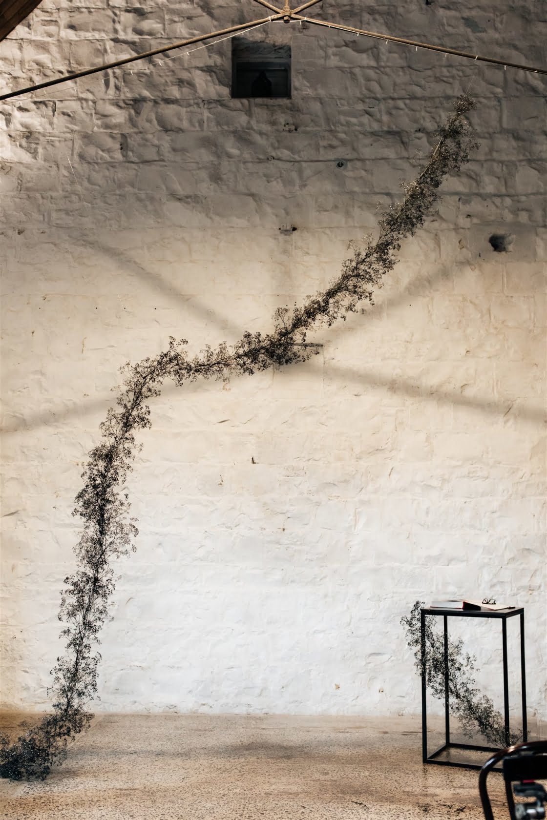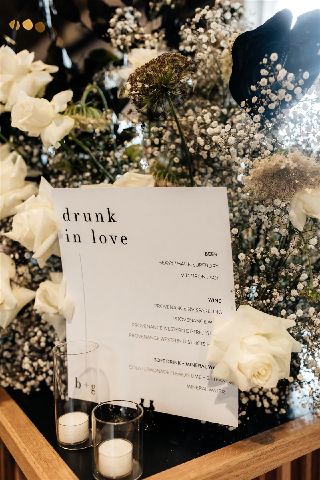 FAVE DETAILS “Getting married under the draping clouds of black gyp was my favourite visual element. I also loved the contrast of scattered white, including our bouquets and mine with added hints of lunaria. Looking around when the dance floor came alive really gave me time to appreciate just how amazing Provenance Wines looks at night – all lit up with fairy lights and candles.”