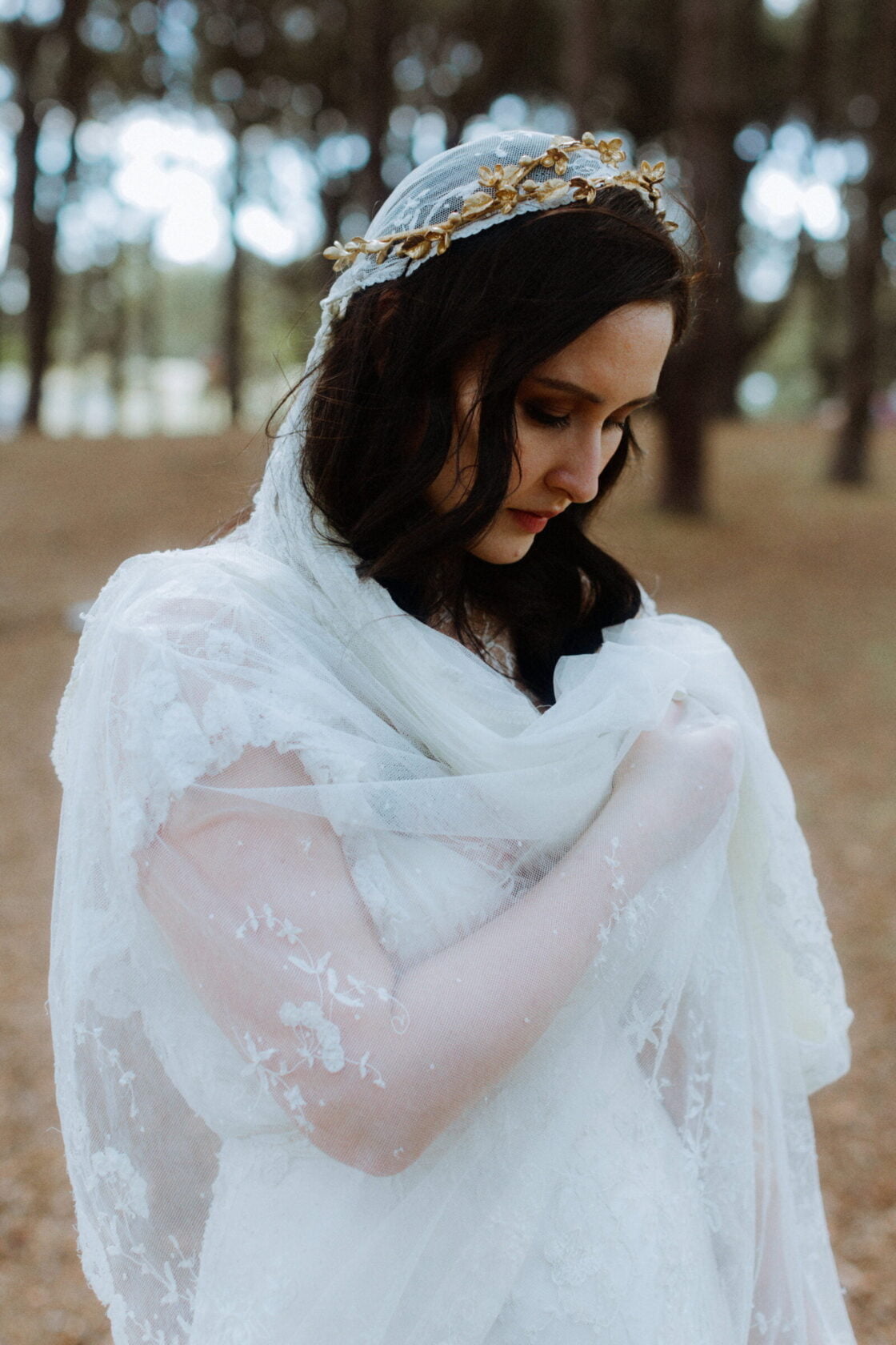 THE DRESS “I spent ages looking for the perfect dress. The (antique) dress arrived with holes that I spent months mending myself. I also learned how to handle antique fabrics and lifted the colour myself. I was really set on a Juliet cap cathedral length veil, so I had a very specific vision and luckily a few months before the wedding, I found it on eBay.”