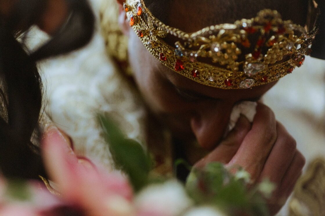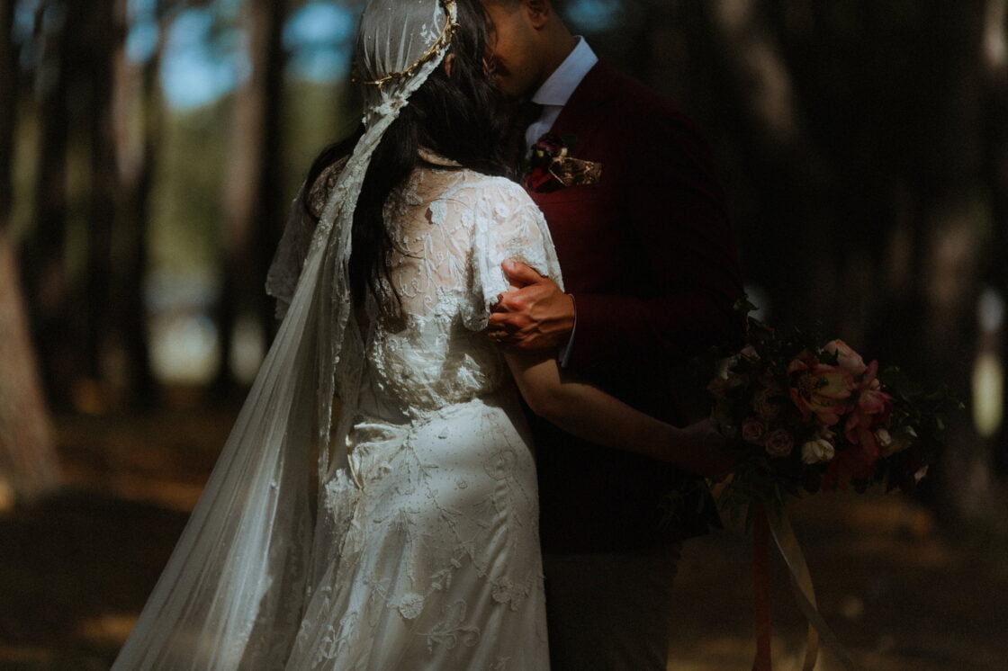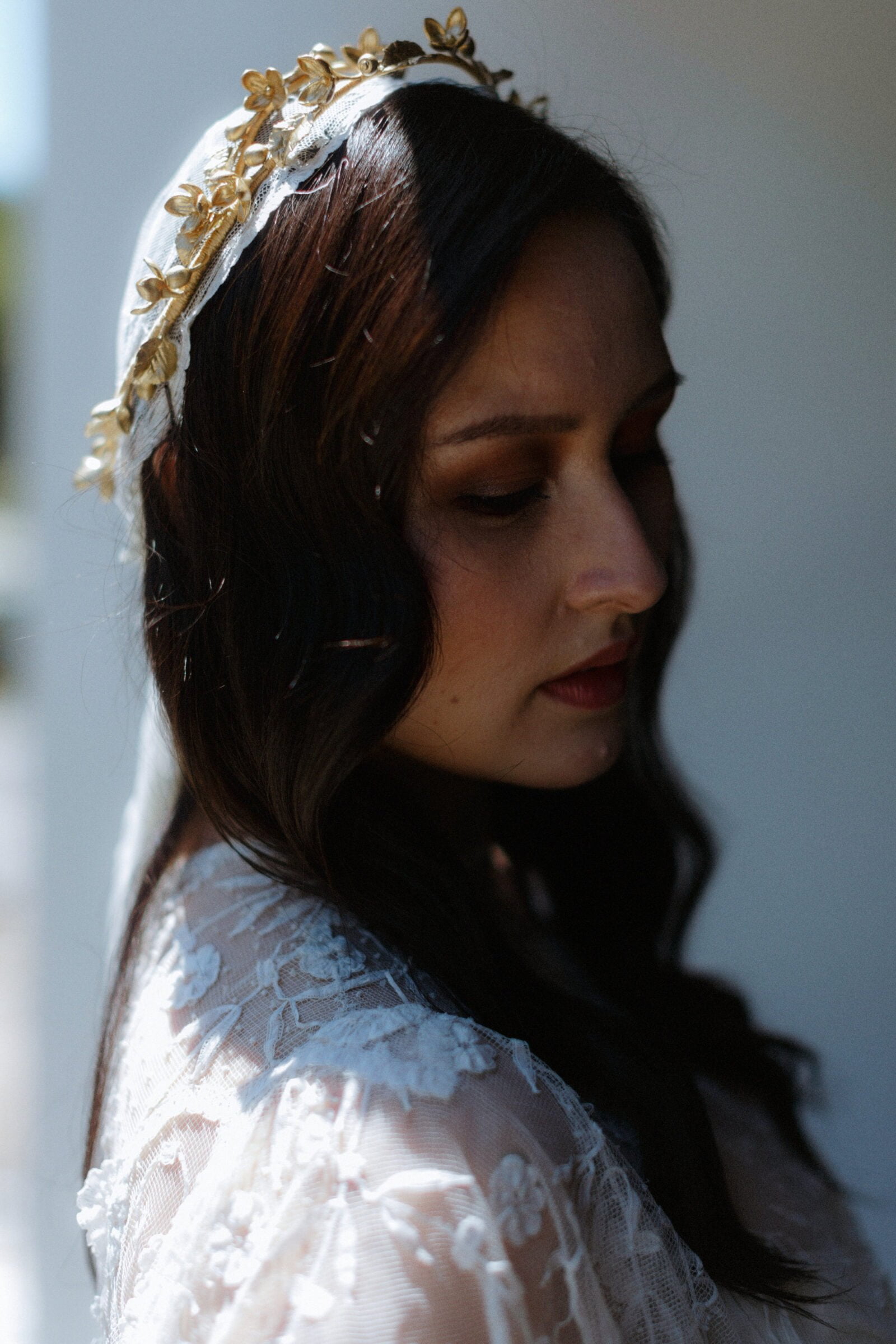 THE DRESS “I spent ages looking for the perfect dress. The (antique) dress arrived with holes that I spent months mending myself. I also learned how to handle antique fabrics and lifted the colour myself. I was really set on a Juliet cap cathedral length veil, so I had a very specific vision and luckily a few months before the wedding, I found it on eBay.”