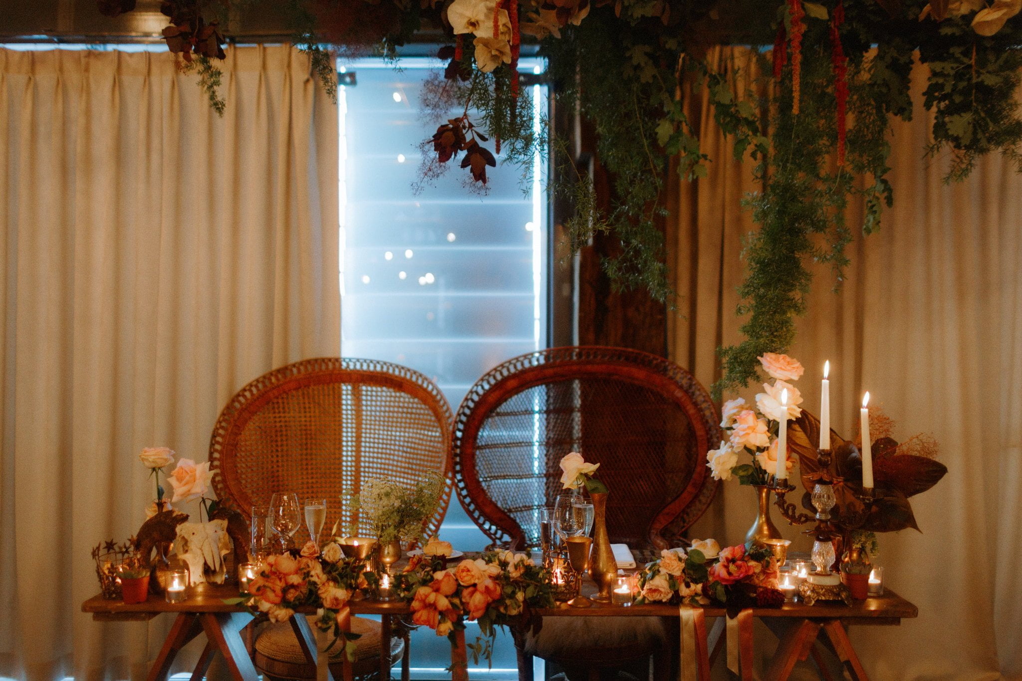 THE VENUE “We chose Simmer on the Bay because it was a blank slate that we could create anything with. Half of our decor was from our own home. I’ve collected vintage and antiques from all over the world for as long as I can remember and it was great to incorporate that into the decor.”