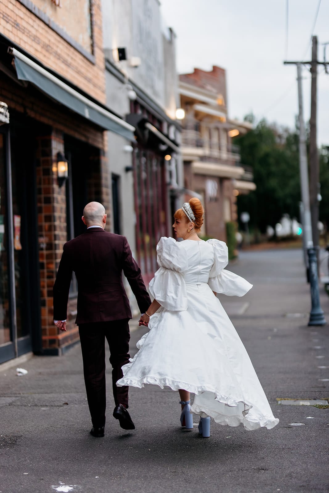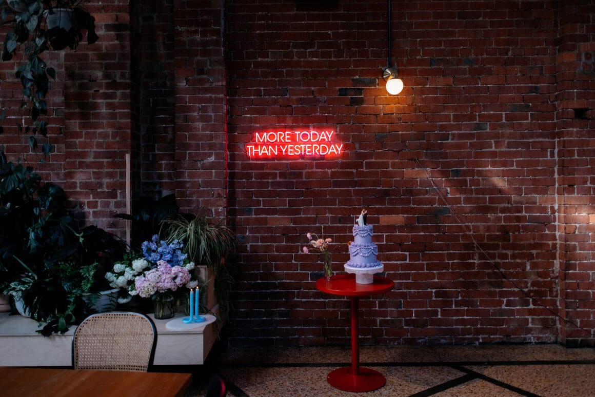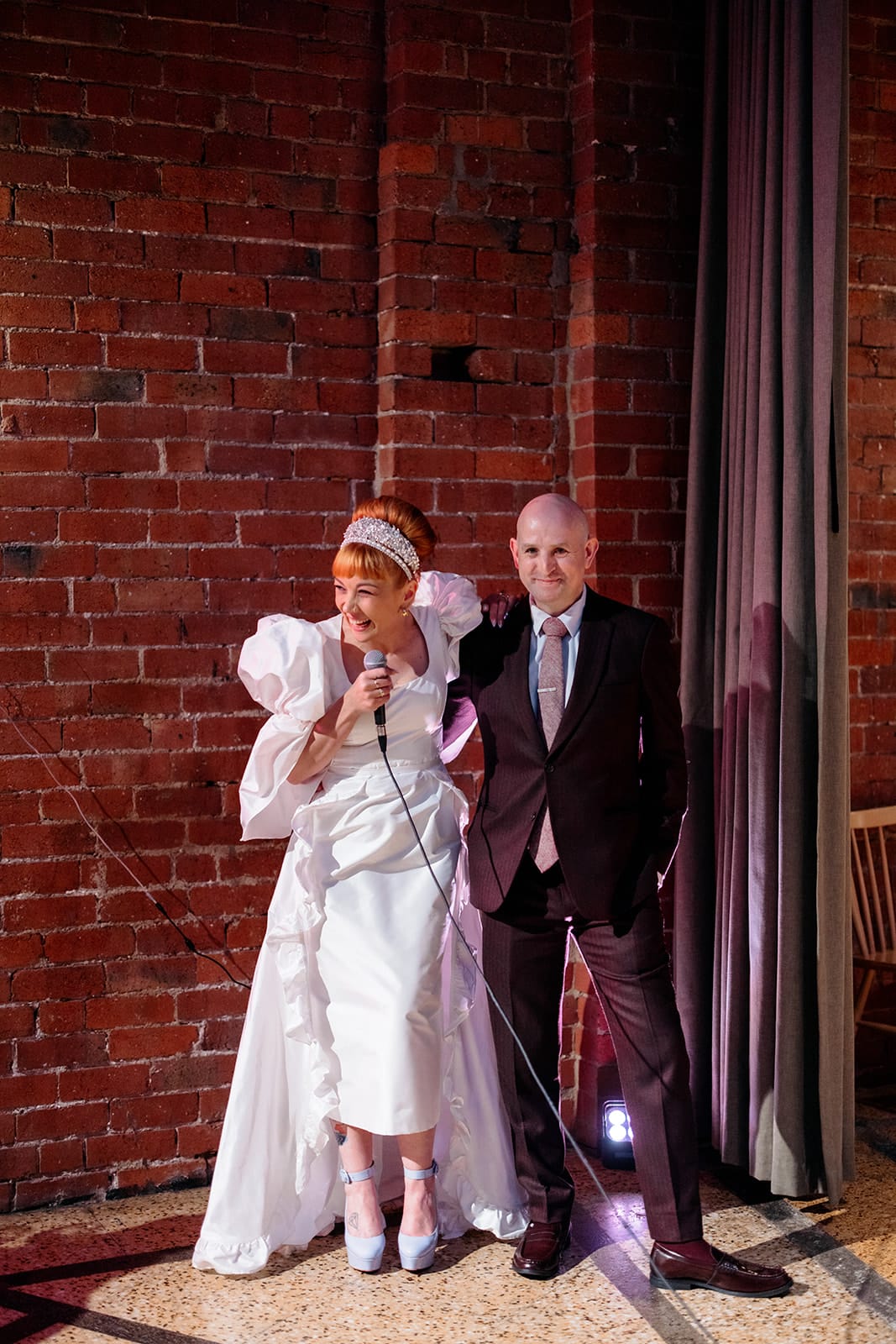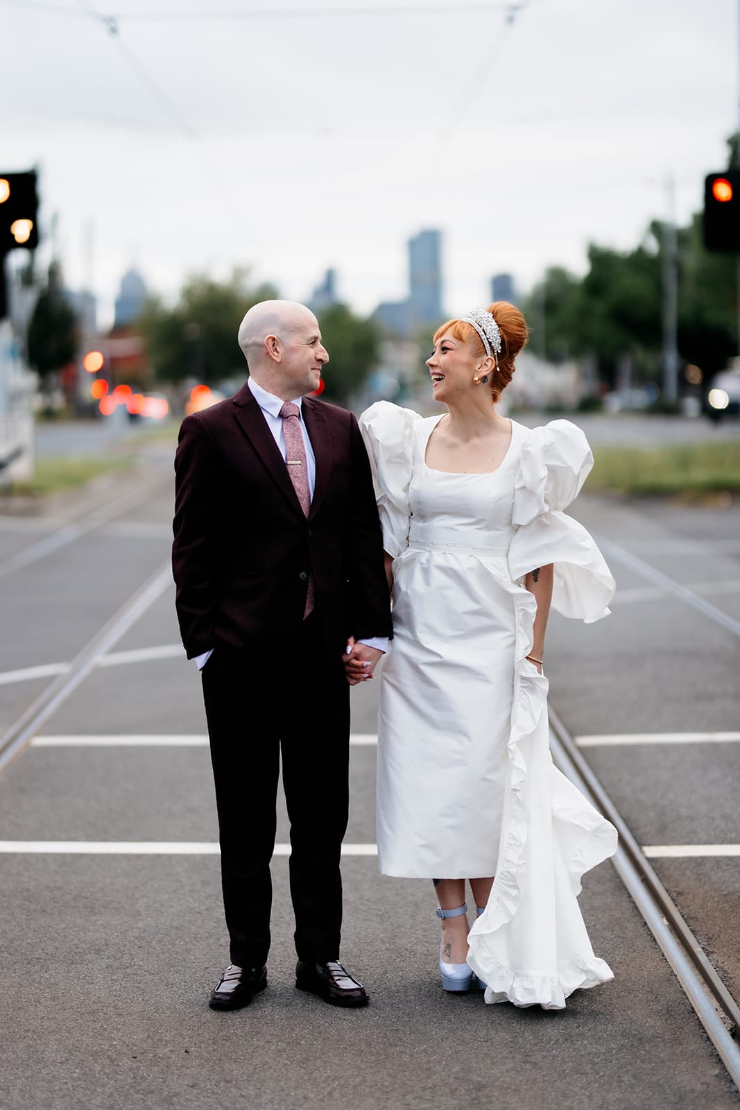 THE VENUE “Free to Feed had such a wide selection of wines available to us on the night (all from Jamsheed at the time) and beers (from Bodriggy). We knew their food would be exceptional with a focus on home cooking from their team’s home countries. The space was stunning and needed minimal decorating. And the nicest piece of the puzzle is supporting a non-profit business that supports people seeking asylum and refugees. A wedding is a huge expense, and it was nice to be able to have some of that money go back into something meaningful.”