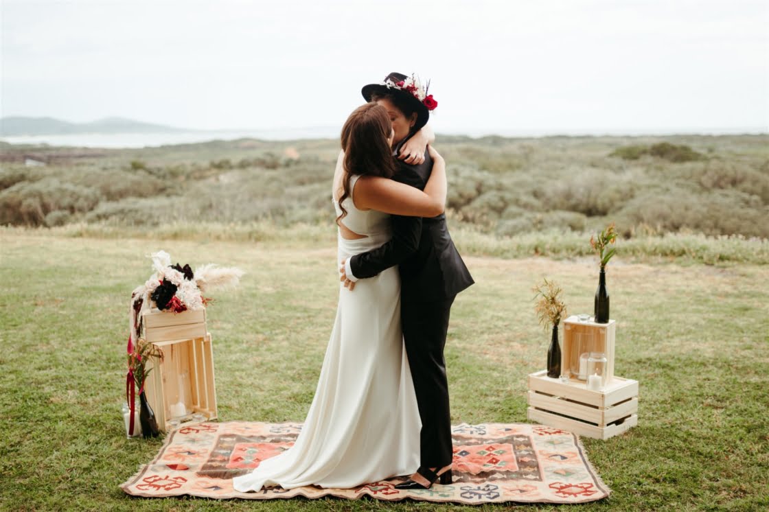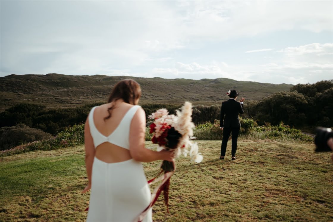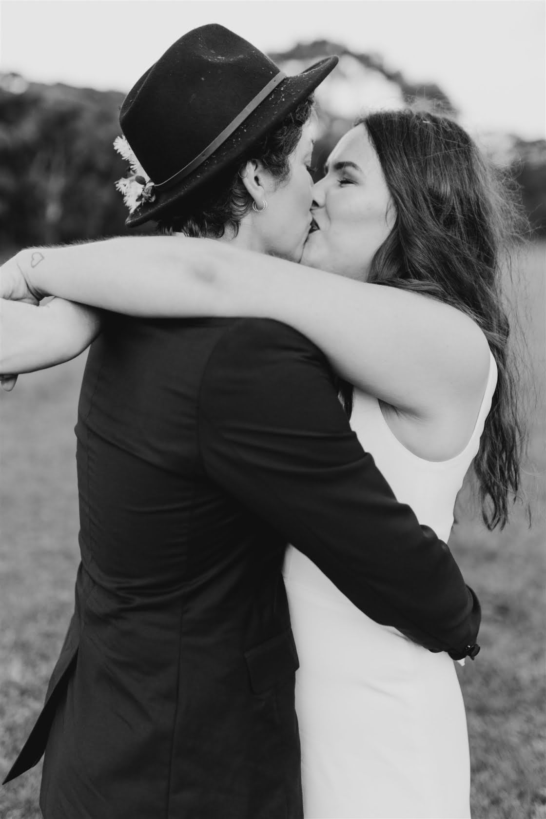 These two loved-up ladies literally had two guests at their intimate elopement (their witnesses), and Britt and Phoebs wouldn’t have it any other way. They also describe marriage as “You have someone to wipe away the tears, laugh at your terrible puns/ jokes and someone to scratch that itchy spot on your back that you just can’t get to” and we can certainly get behind that. The Barefoot Photographer got the good times on camera (as well as Brittany’s glorious Alca Line Bride gown) and we chatted to the gals to get the down-low on their day. You’ll find it all below…