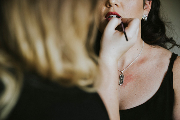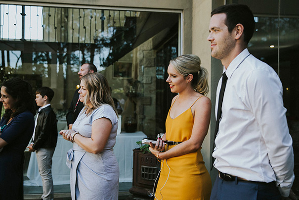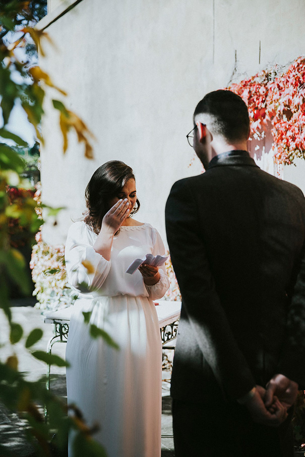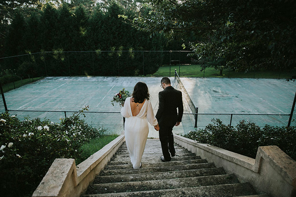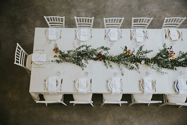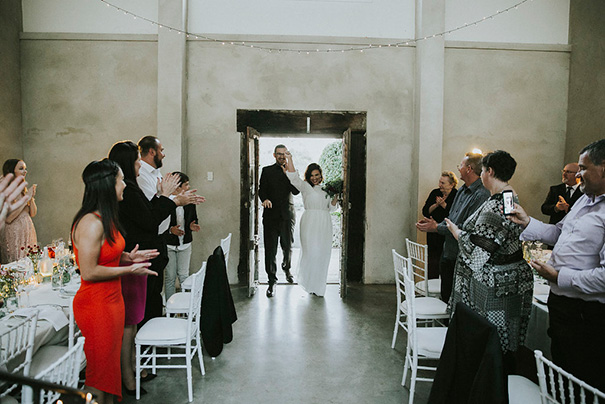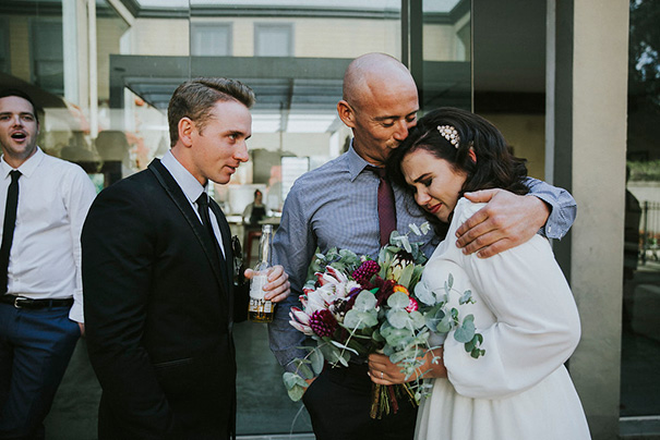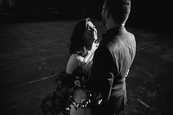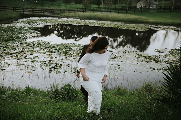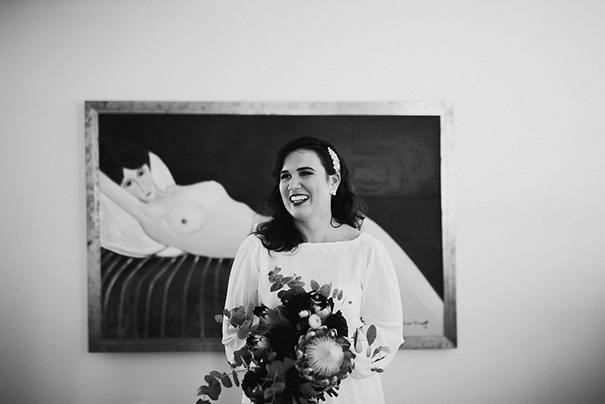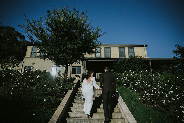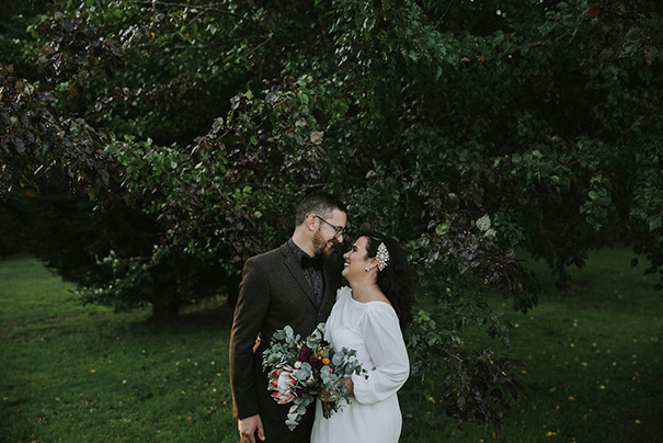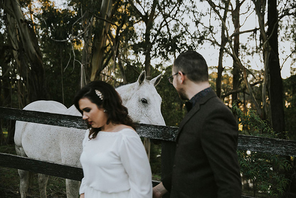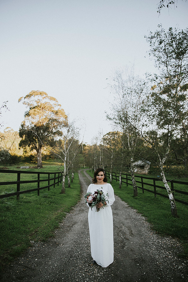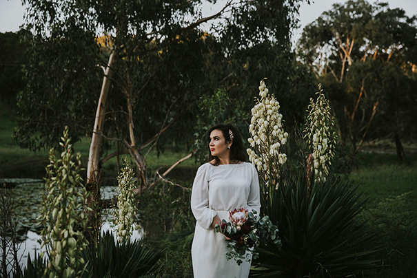 With an A+ crew of vendors behind them, the two enlisted favourites like Duck Duck Goose Catering and Anna of All Grown Up Weddings to be a part of their big day.” Anna took the time to understand us and how we worked; she knew we were not overly comfortable in front of the camera. Anna was very conscious when we were ‘fading’ and would either change location or pump us back up for another set of shots,” explains Bron, who paired her Samantha Wills with a gorgeous handmade gown.