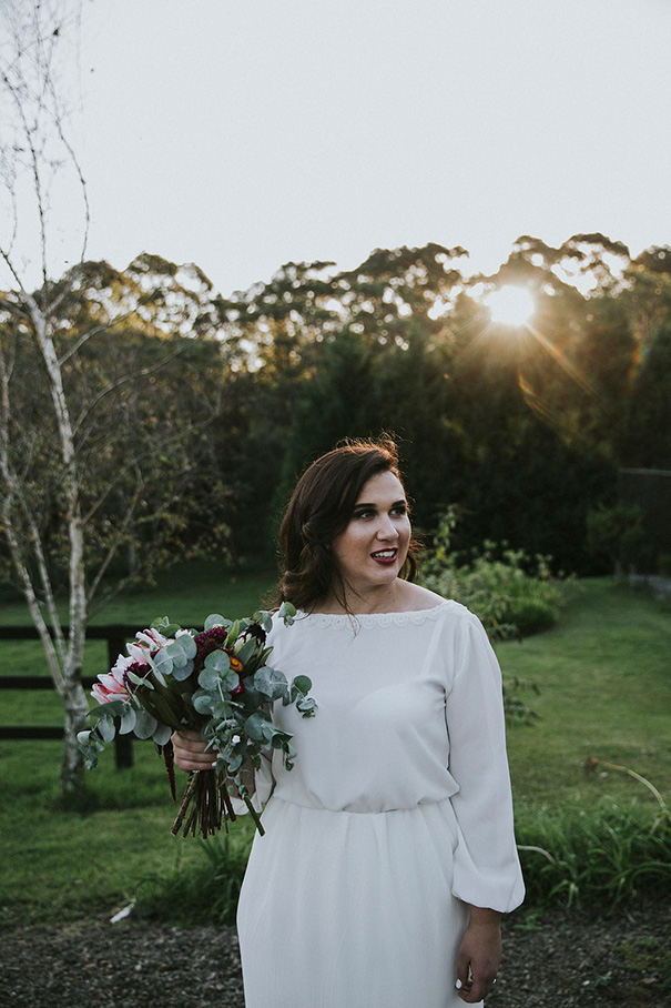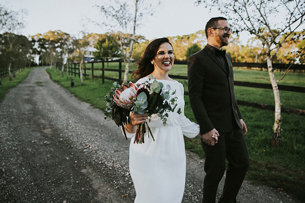 CREDITS Photos All Grown Up Weddings // Florist Jonima Flowers // Ceremony and reception The Bellmore Estate, NSW // Catering and cake Duck Duck Goose Catering // Wedding favours Coolaz // Prop / furniture hire Your Event Solution // Celebrant Claudia’s Celebrations // Engagement ring Paspaley Pearls // Weddings Bands Solitaire Jewellers // Transport 05 Club // Bridal gown designer Handmade by bride // Hair piece Samantha Wills // Lingerie, shoes and grooms suit ASOS // Accessories Lovisa // Hair and makeup Ethix Beauty // Grooms shirt Ben Sherman // Tie / Bow tie David Jones // Socks Paul Smith // Watch Braithwait.