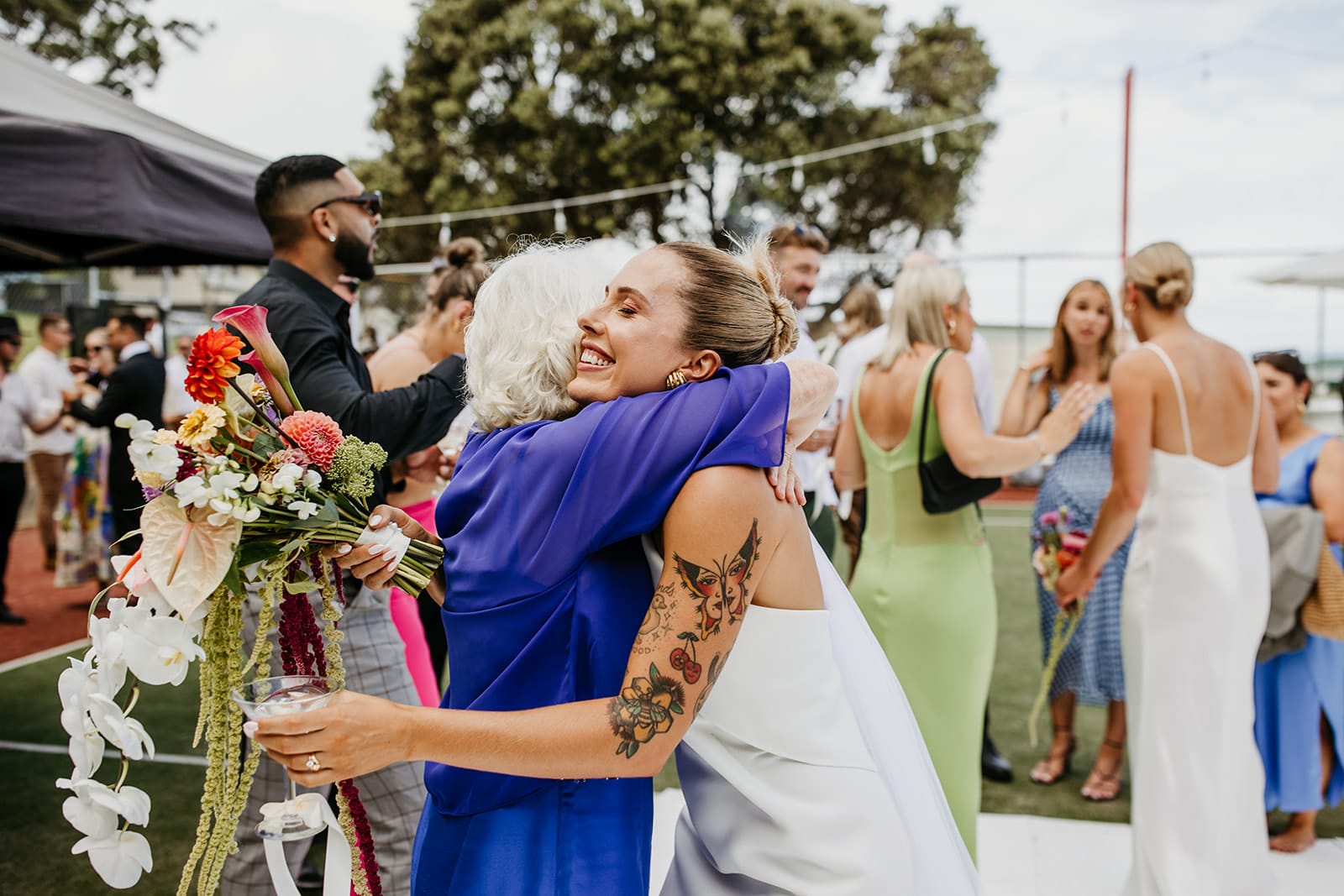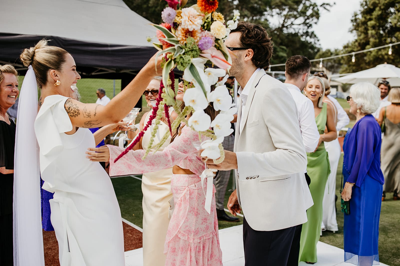 In Bec + Bridge and M.J. Bale, the bridal party were serving sophistication, and there were SO many touching details and DIYs courtesy of the couple’s nearest and dearest. Love by Colour Captured was behind the camera, and even the bumble bees gave this “giant garden party with extra personality” their tick of approval. Safe to say we’ll never look at a tennis court the same way. Scroll on for all the buzz.