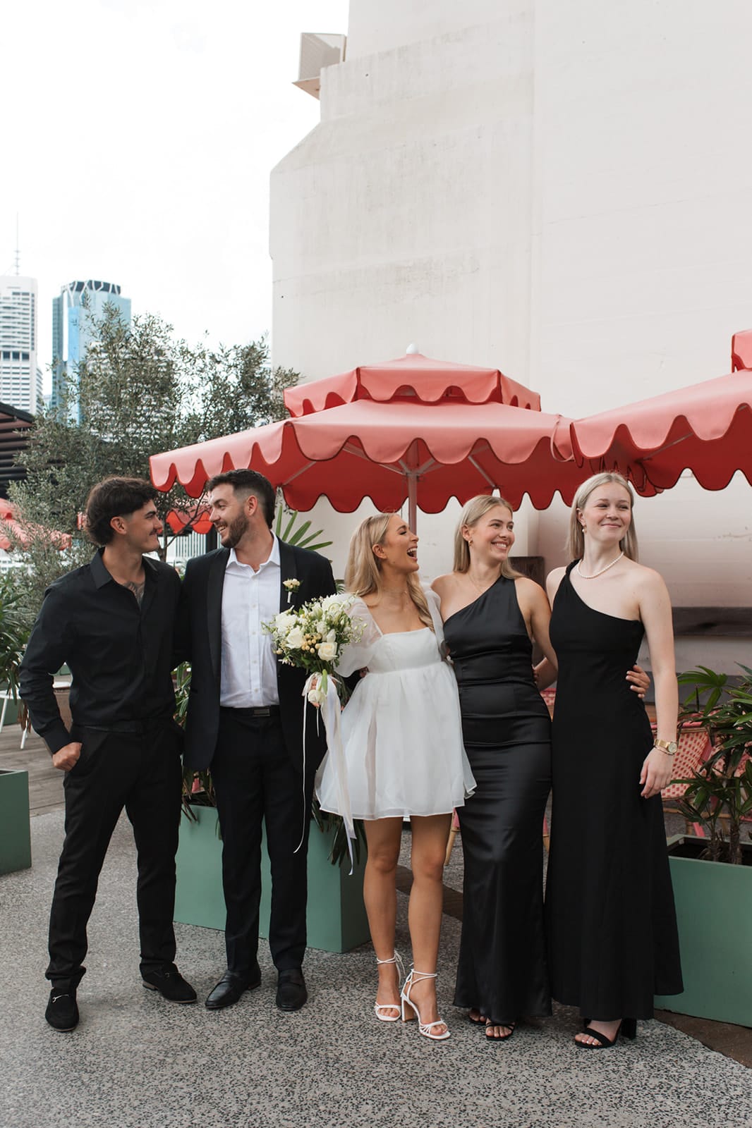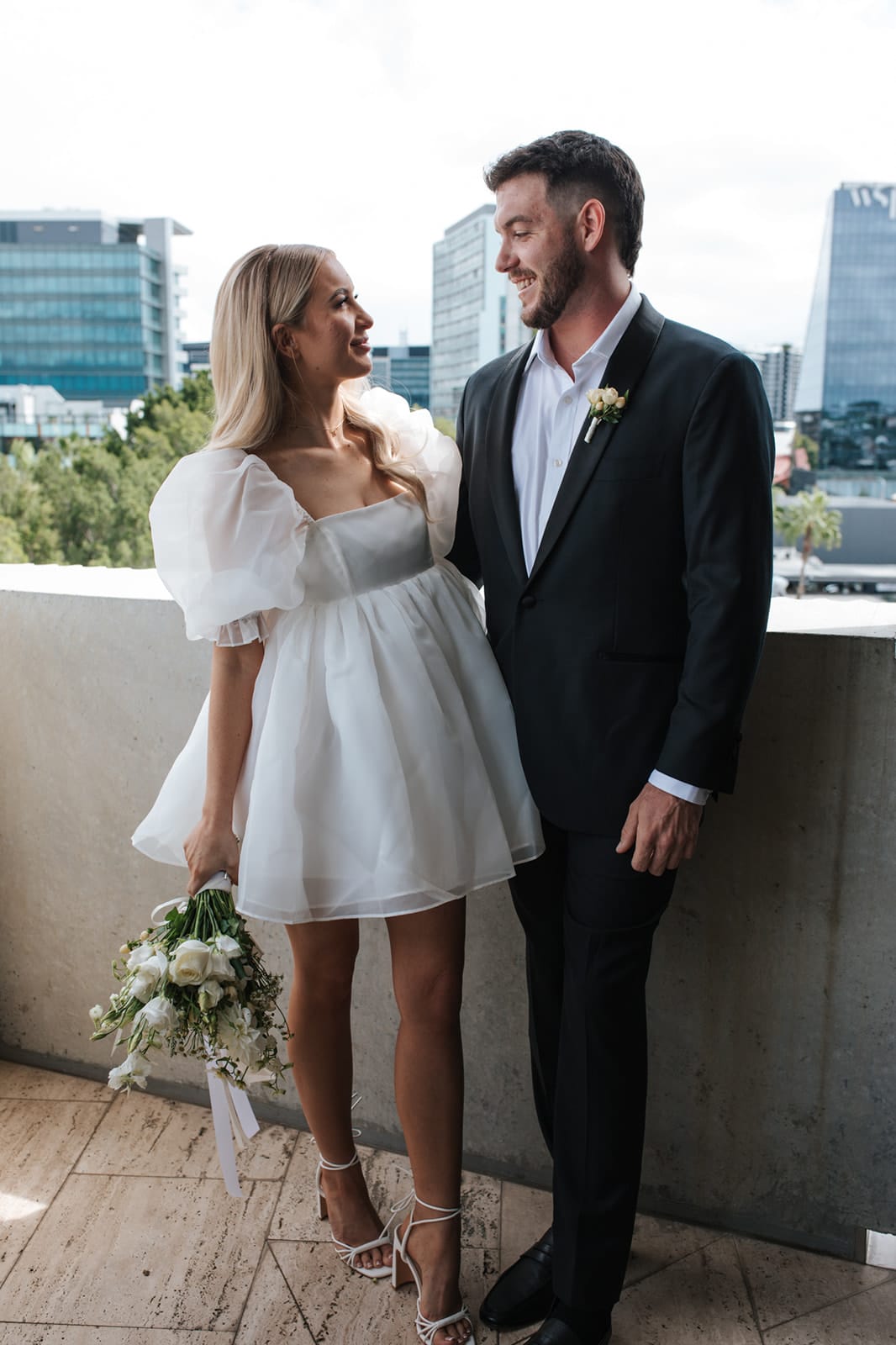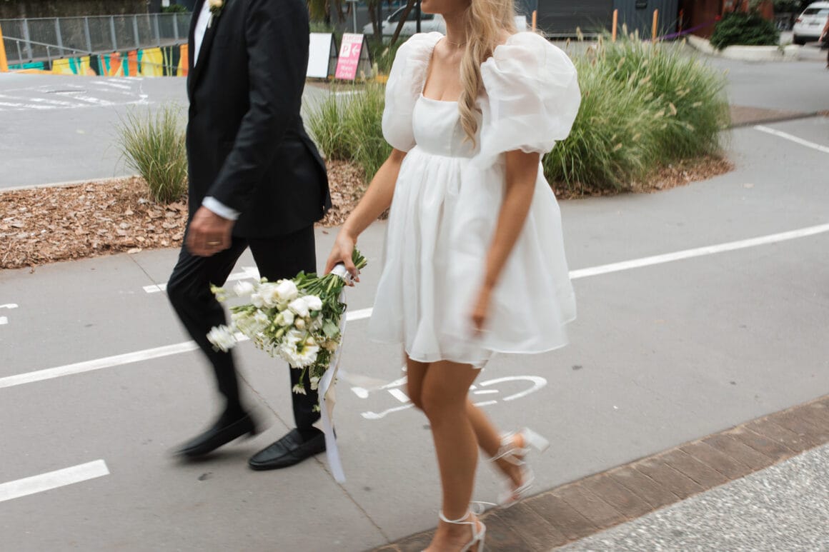 Totally smitten with Caitlin and Alex’s intimate elopement in Brisbane. Sweet, simple, and chic-AF with the bride in a fun Selkie mini and the groom in M.J. Bale.
