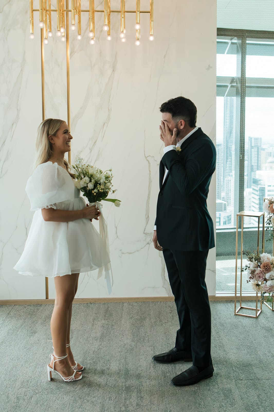 THE VENUE “We knew pretty early on we wanted to get married at the registry. Our Court House here in Cairns is very basic and doesn’t have much to offer in terms of weddings. We have always loved Brisbane city and we frequently visited from Cairns. The venue at the city registry is lovely, and the whole process was pretty easy. Everything was organised online or over the phone, so we only had to fly down once before we got married to finalise everything.”
