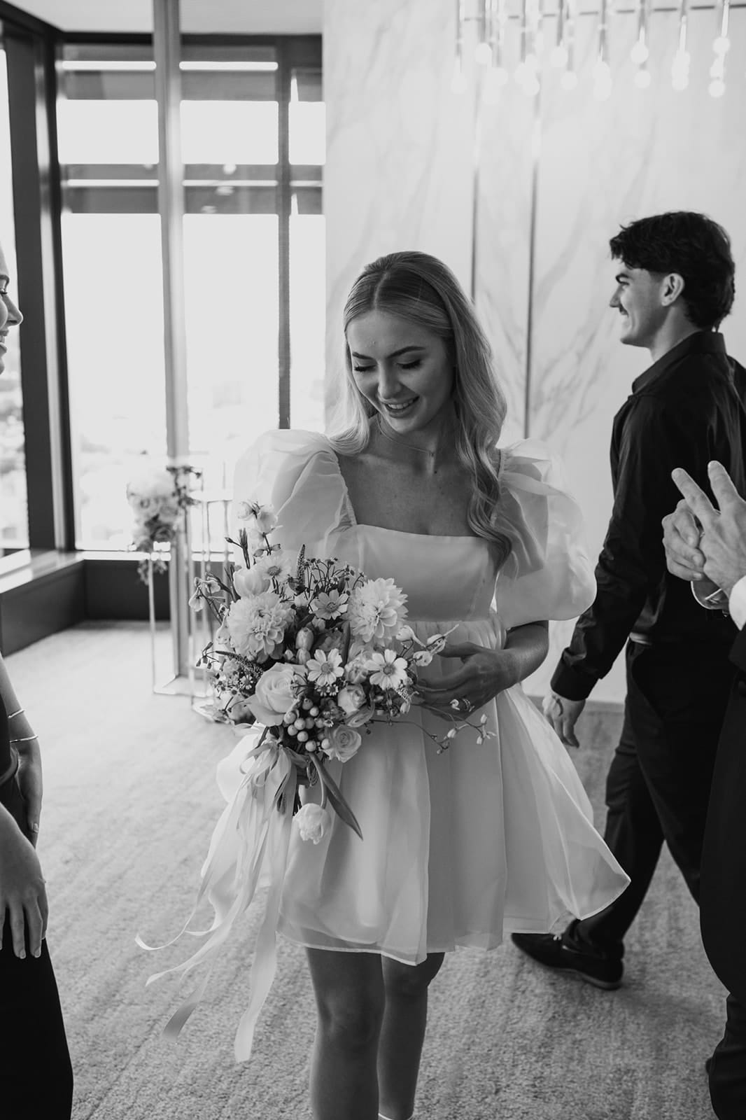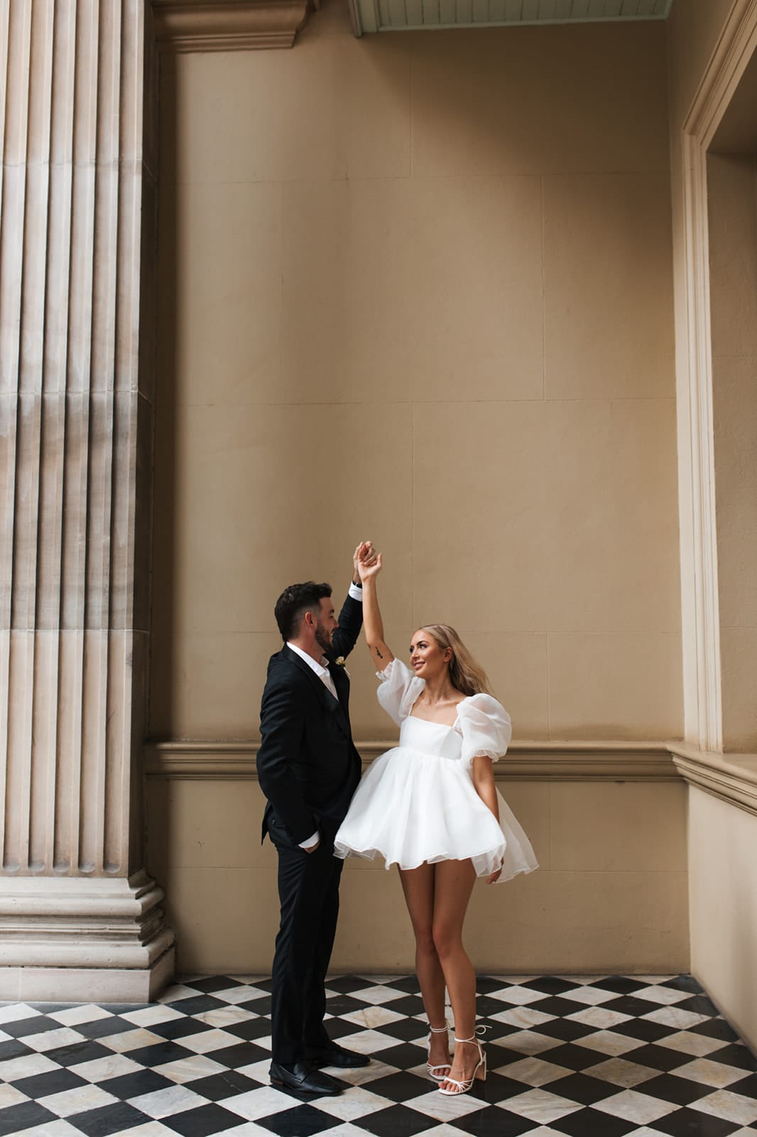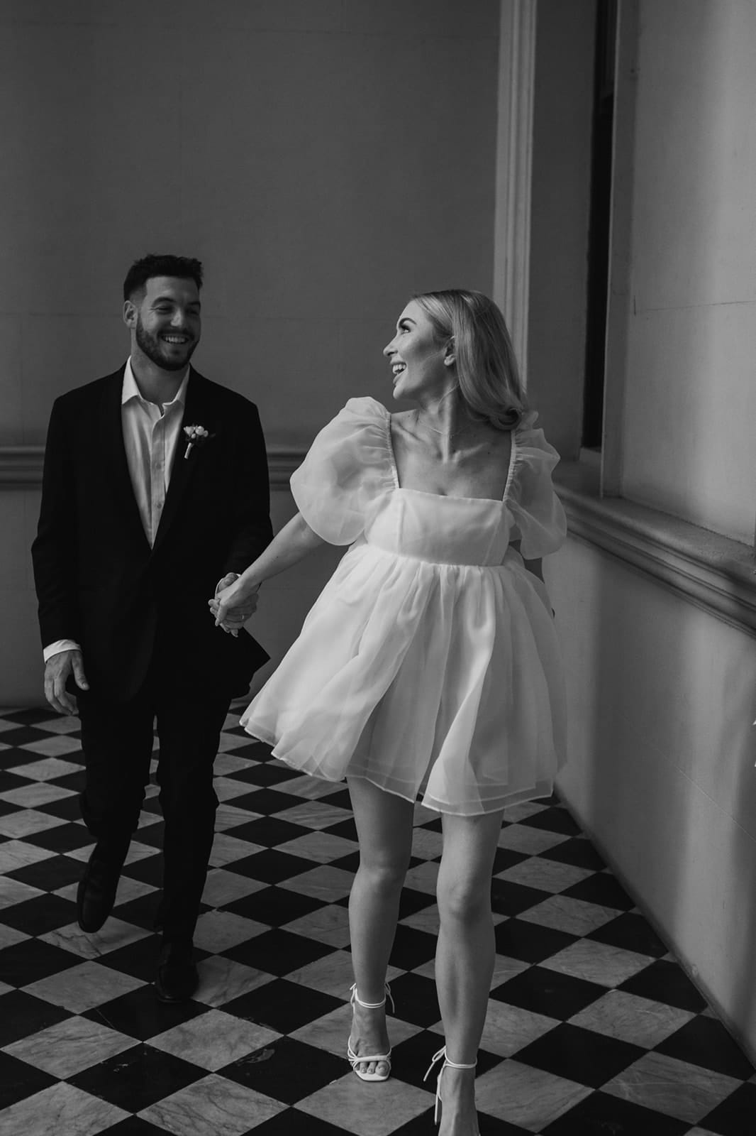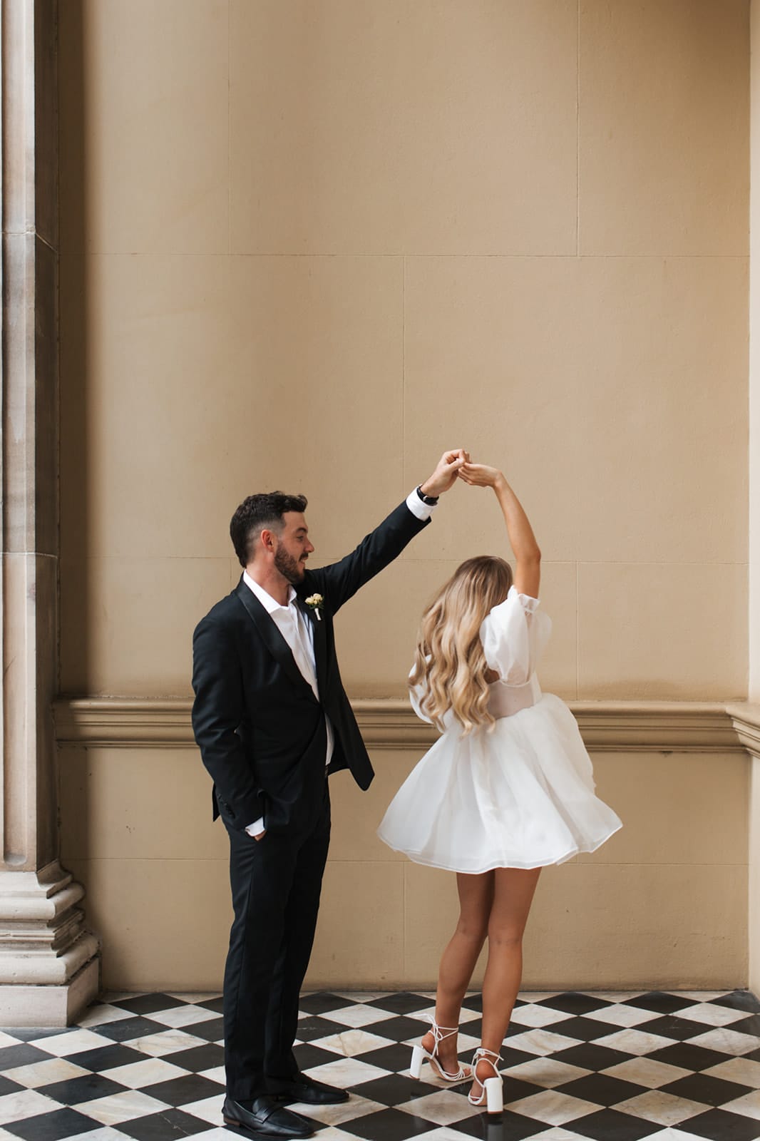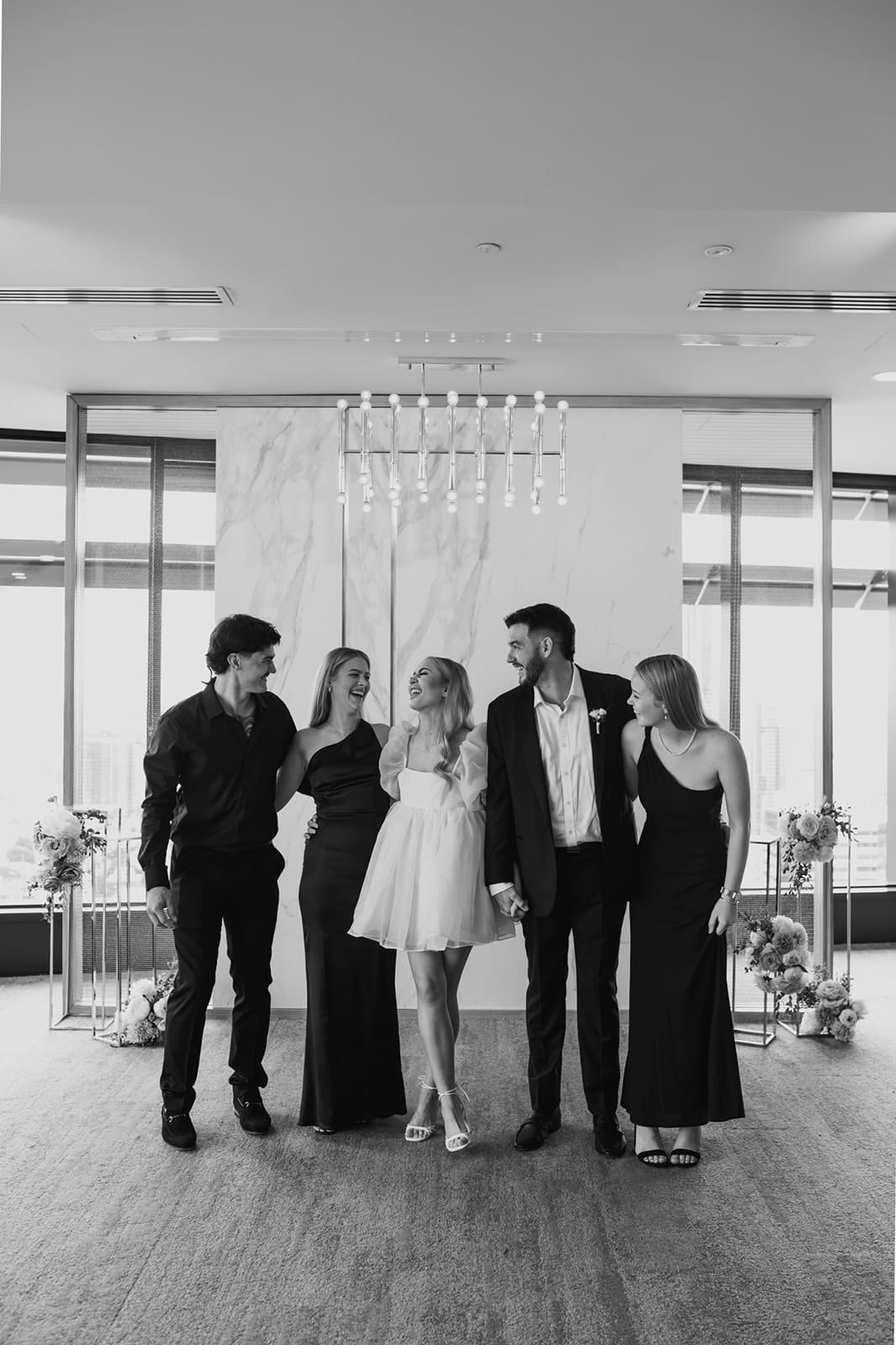 MEMORABLE MOMENT “After the ceremony and the photos, Alex, myself and our two witnesses went for a late lunch, got changed into something slightly more casual (although still keeping our black and white themes) and went for drinks. We have all been friends for a very long time, so after the day had slowed down and the nerves had subsided, it was so nice to take a moment, reflect on the day, and belly laugh with two people we hold very dearly to us.”