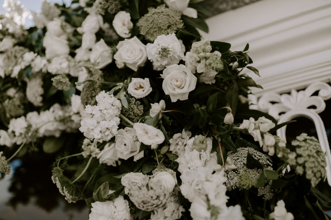 THE VIBE “I knew I wanted an all-white colour scheme, something simple and timeless, and that our day should feel relaxed and romantic with lots of flowers. And of course, I had the whole collection of Pinterest boards that I’d started when I was 12 (just kidding!). Wedding dress, wedding flowers, wedding reception, wedding ceremony, wedding grazing table- the whole thing! Ha!”