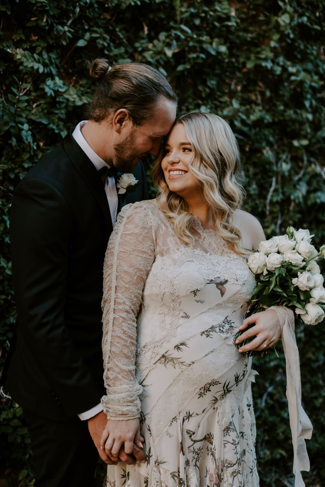 FAVOURITE DETAILS “The flowers definitely. I actually worked at The White Bungalow for a long time so the florist who did all our flowers was a close friend. I never really got to take the time to appreciate them on the day but when we got all our wedding photos back I felt so emotional seeing what she’d created. They were such a dream come true. All the tables at the end of the night were left bare because the guests stole all the arrangements!”