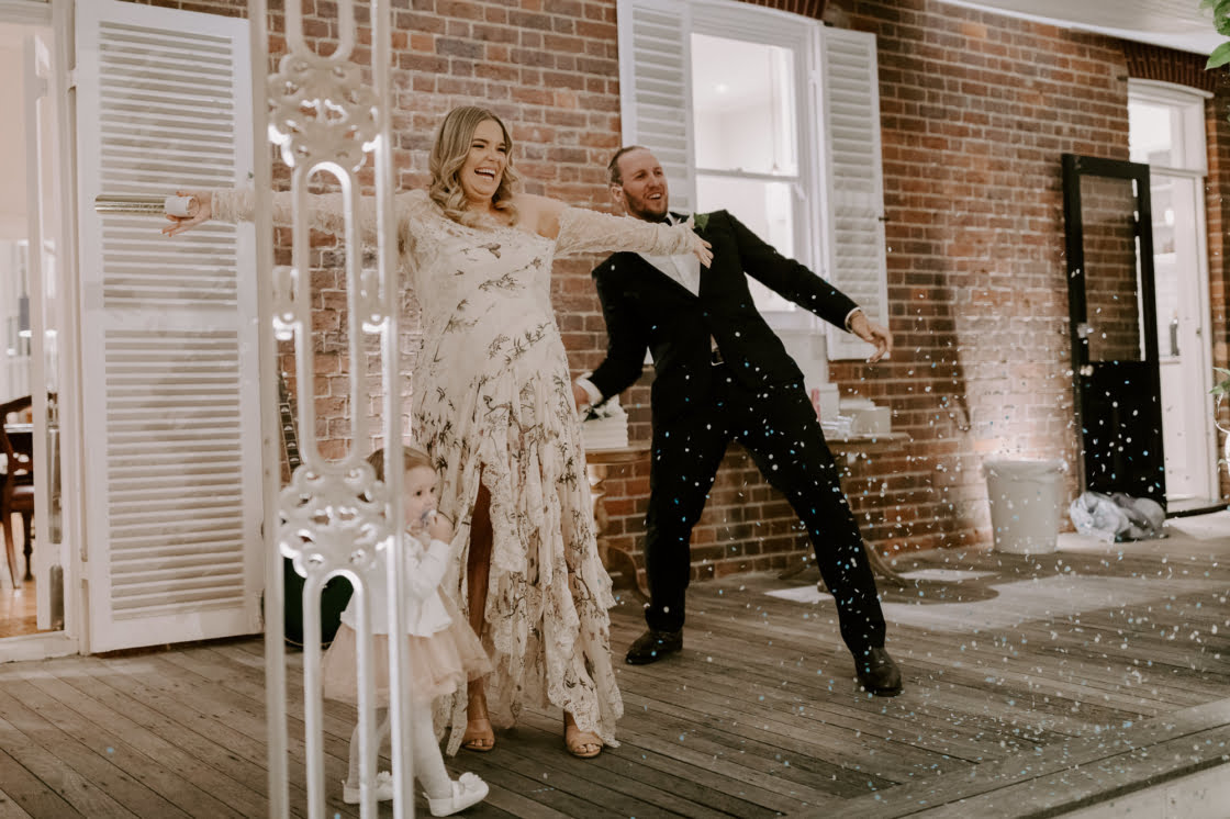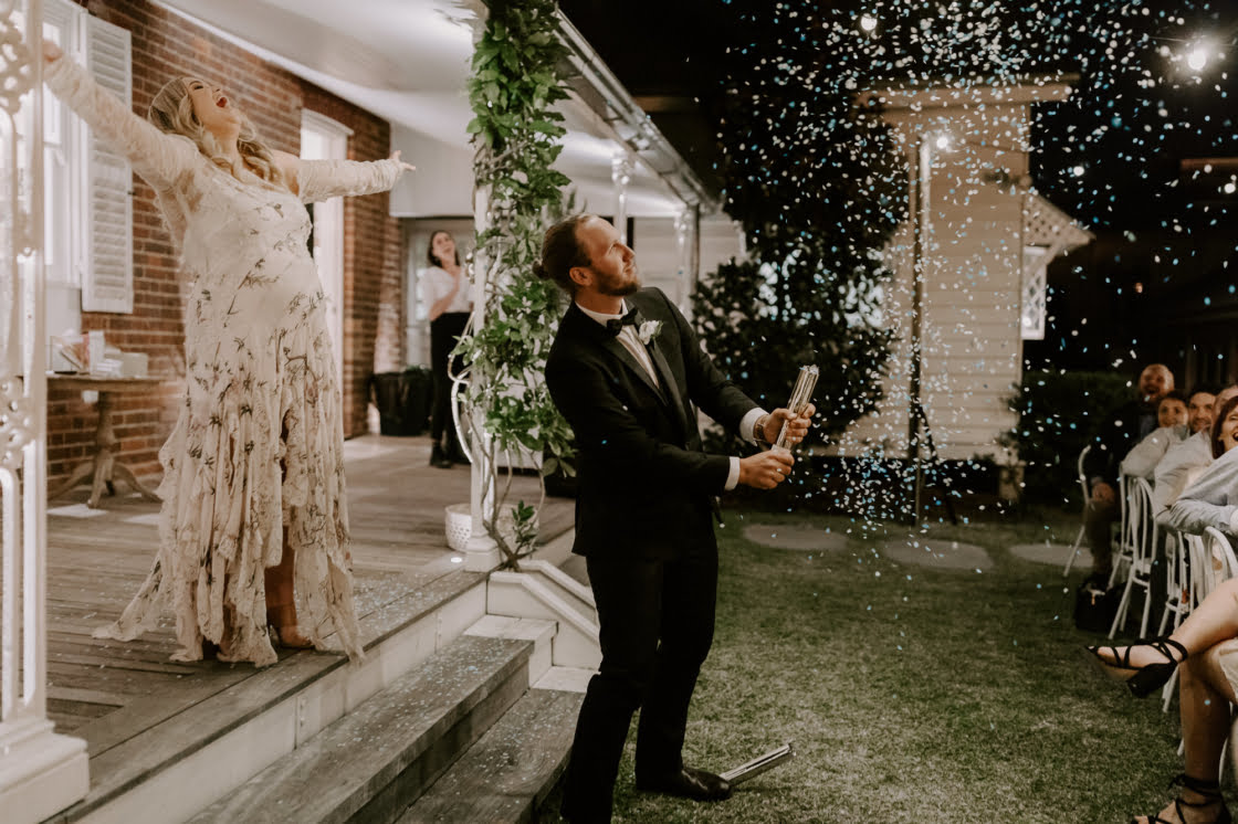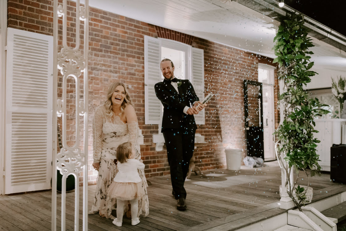 FAVOURITE MOMENT “We found out the gender of our baby just before the wedding and secretly organised confetti cannons for the end of our speech as Mr & Mrs. When we let off the blue confetti everyone was crying and screaming, it was the perfect chance to surprise everyone we loved with our babe’s gender.”