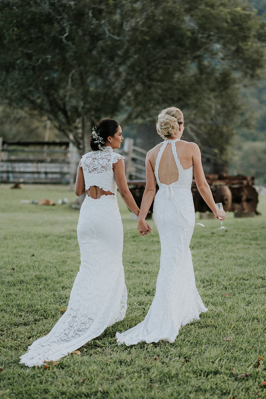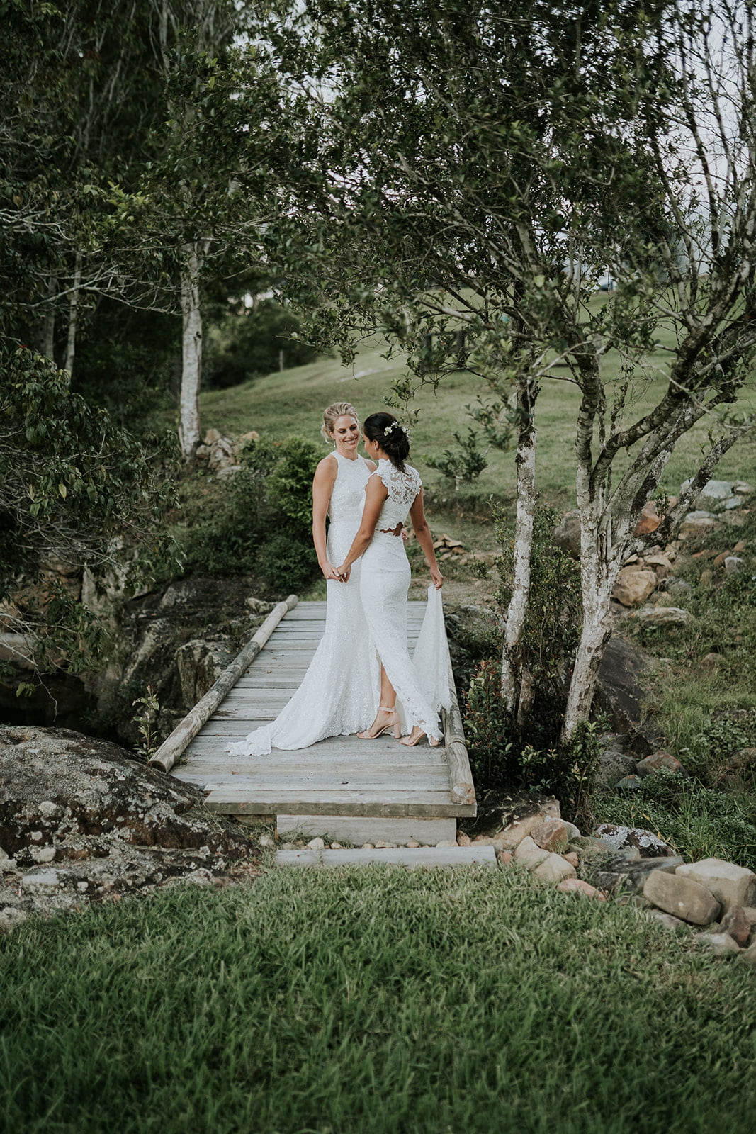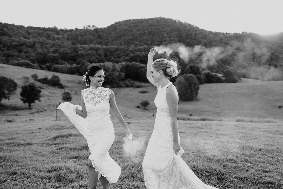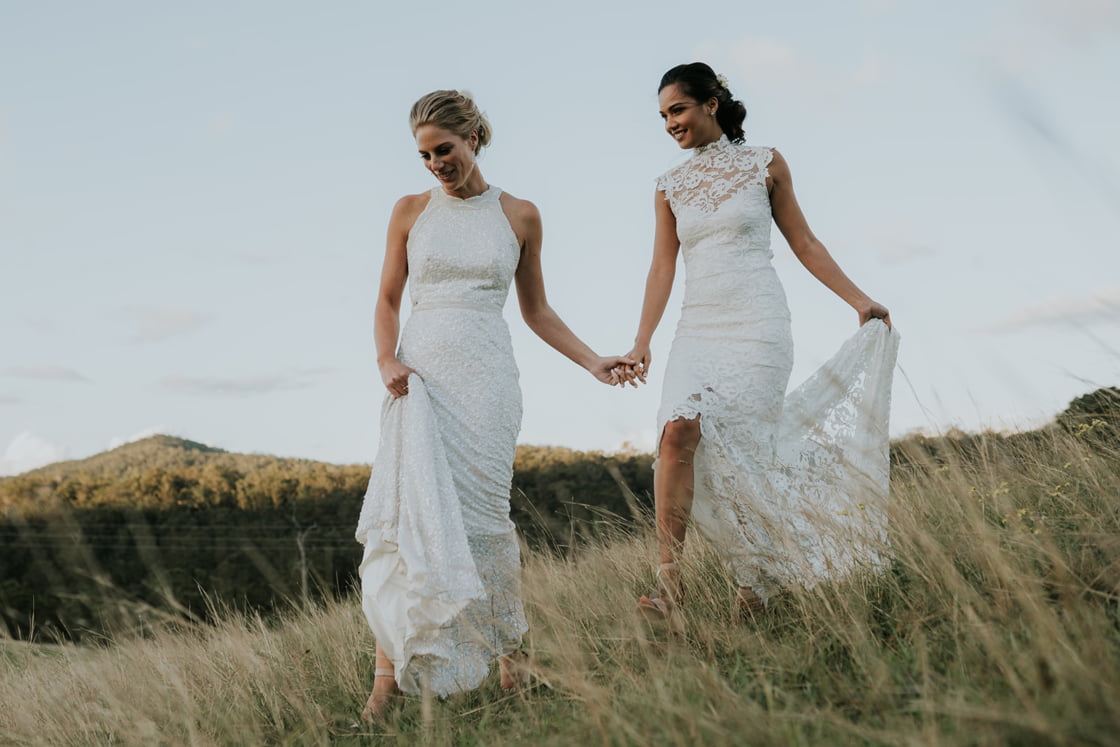These two lady docs have a pretty funny first meeting story, friends. “I (Vaite) was operating on a poor kid’s twisted testicle and Caitlin was my scrub nurse. It was during this very romantic scene, in the beam of the operating light, that I allegedly caught Caitlin’s eye.” Fast forward three and a half years and they were the subject of this glorious wedding, complete with two gorgeous gowns from our go-to’s, Grace Loves Lace and Karen Willis Holmes. True North Photography was there to capture the good times and we had a chat with the gals below. Scroll down for all…