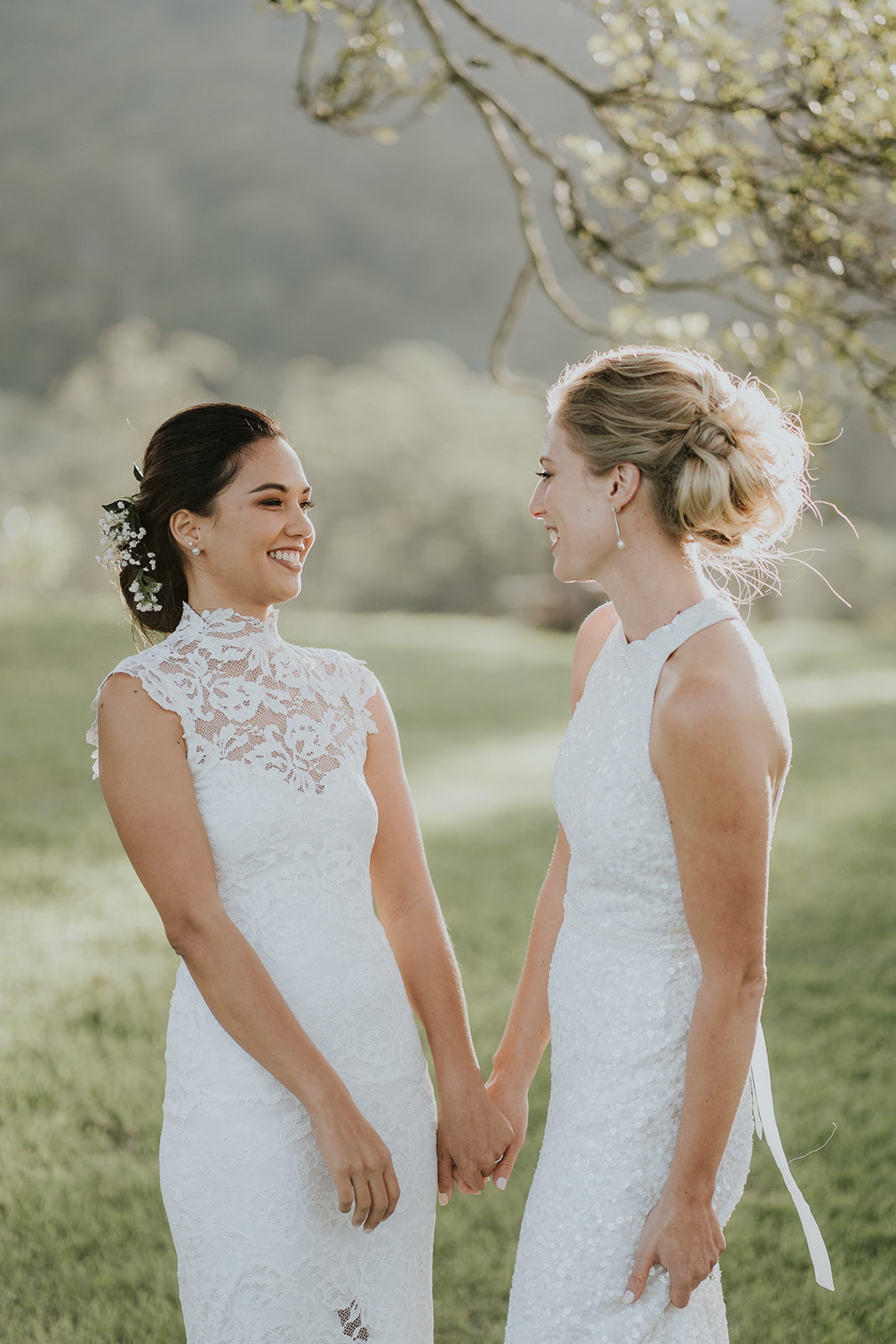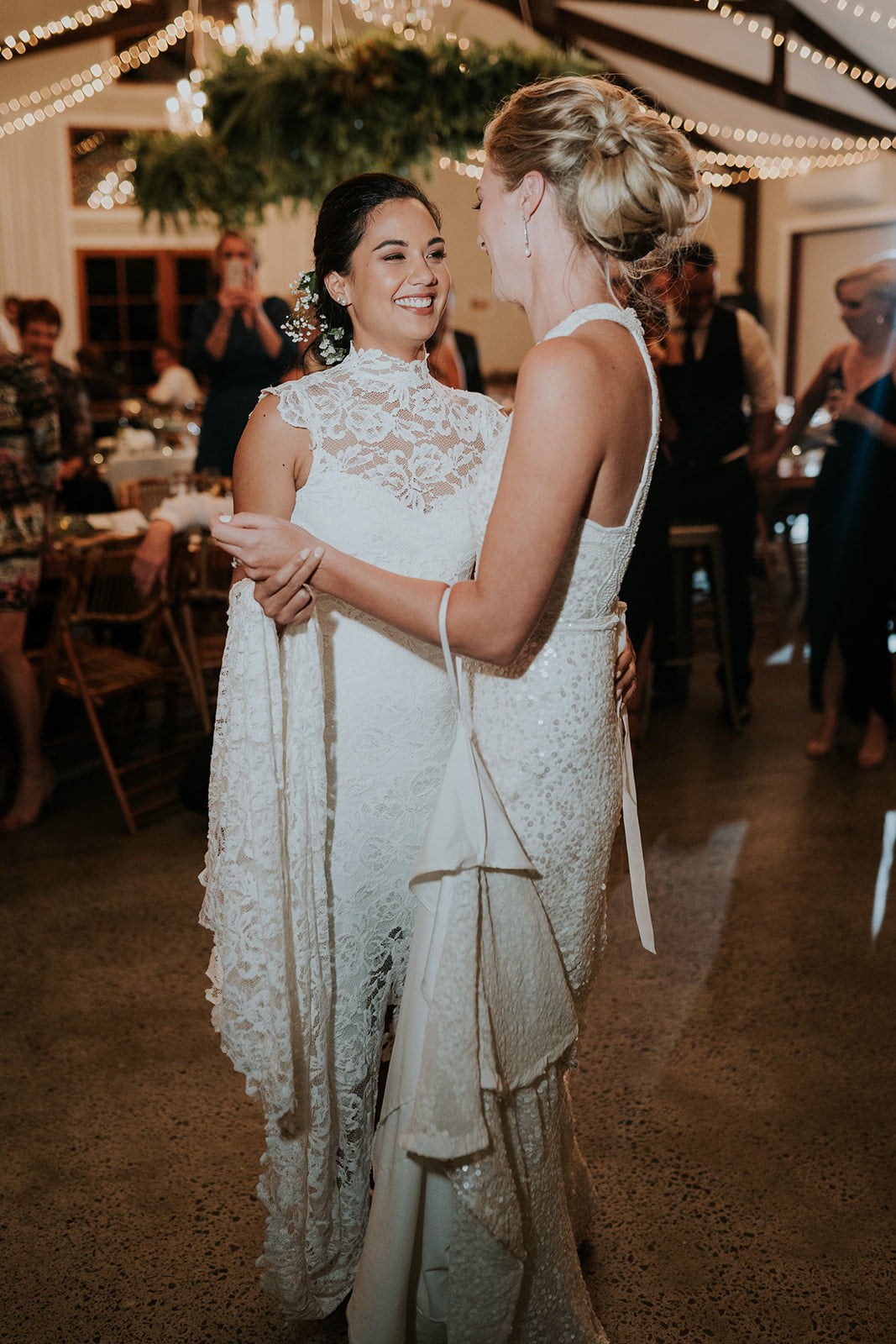 THE DRESSES “I (Vaite) tried on the Renata and not to sound cliché but it was love at first sight. It was the one I liked from their website and it was the only one I loved from the minute I had it on. I didn’t look anywhere else apart from Grace Loves Lace. My dress was made to order. Caitlin went to Karen Willis Holmes. She really didn’t think that sequins were her style but as soon as she tried on the Cindy, she also fell in love with her dress. Hers was a brand new off the rack dress which she then had altered to fit.”