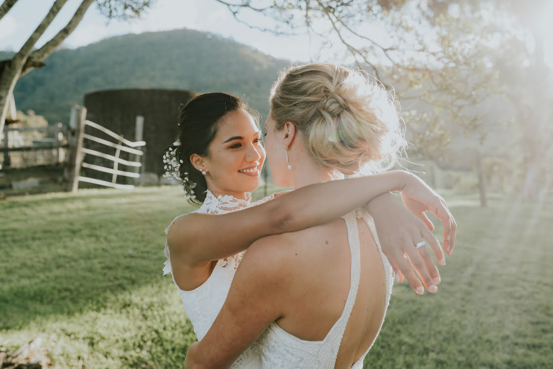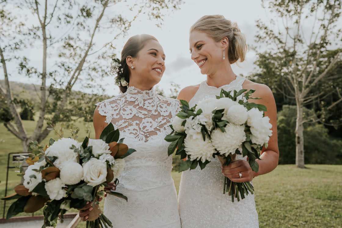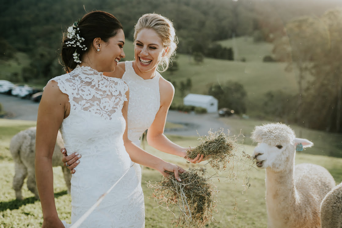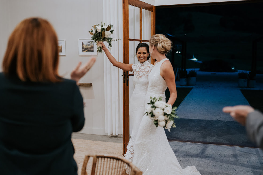 These two lady docs have a pretty funny first meeting story, friends. “I (Vaite) was operating on a poor kid’s twisted testicle and Caitlin was my scrub nurse. It was during this very romantic scene, in the beam of the operating light, that I allegedly caught Caitlin’s eye.” Fast forward three and a half years and they were the subject of this glorious wedding, complete with two gorgeous gowns from our go-to’s, Grace Loves Lace and Karen Willis Holmes. True North Photography was there to capture the good times and we had a chat with the gals below. Scroll down for all…