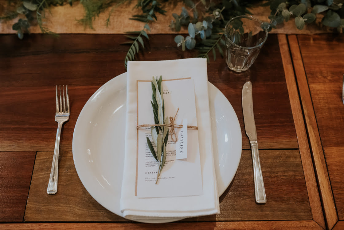 DIY “We made our own menus / place cards. We also did our own olive leaves for throwing after the ceremony. We picked all the leaves from my mum’s olive trees, which looked really nice in the photos.