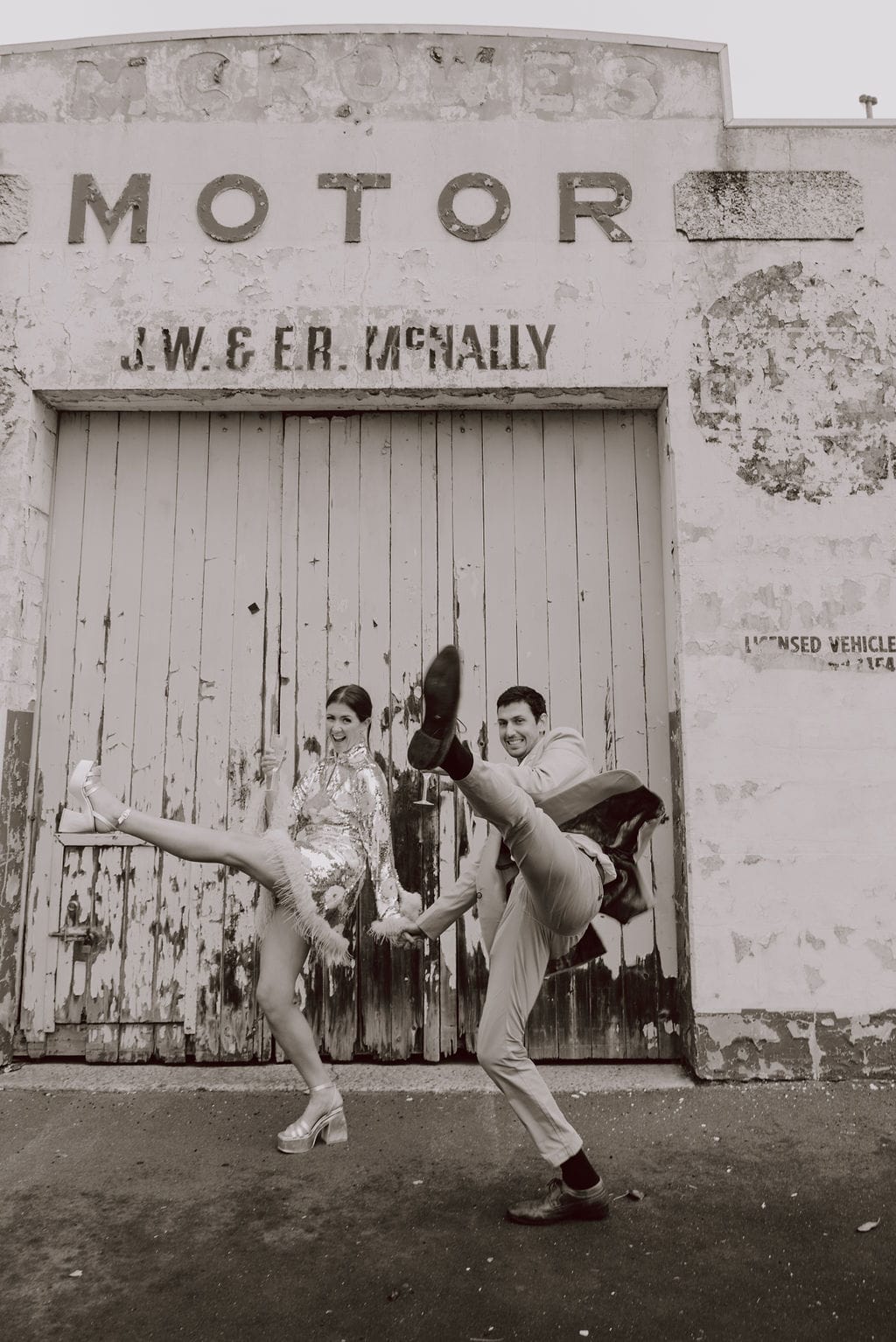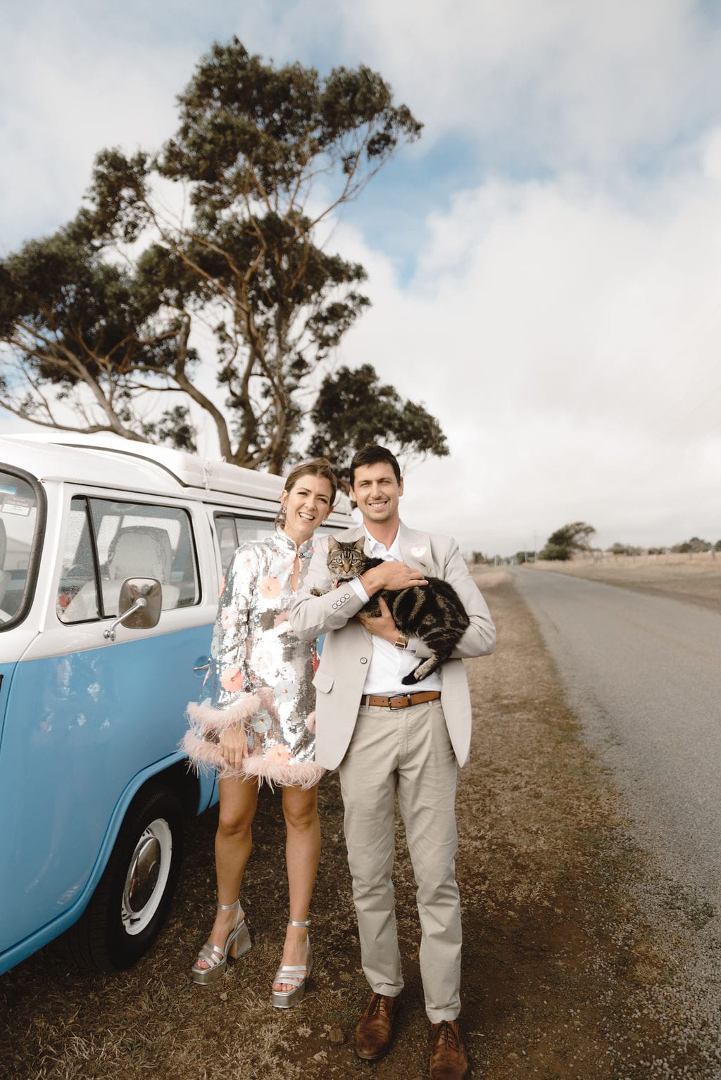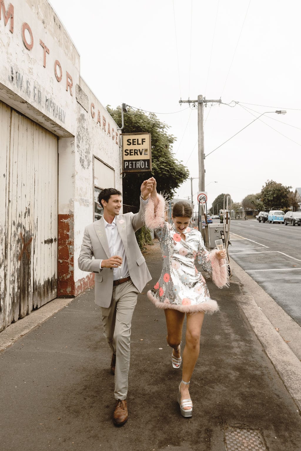 Caity and Grady know how to put on one hell-of-a-good time. The loved-up retro hullabaloo in Victoria you see before you is what the pair dubbed their wedding ‘after party’. You see, they actually became hubs and wife a couple of days prior with a relaxed, cosy ceremony at Melbourne’s Registry office.