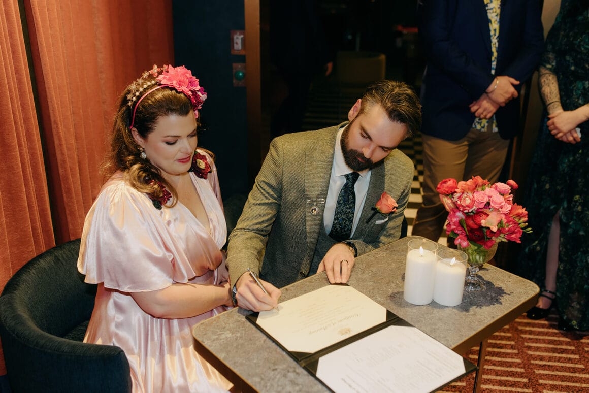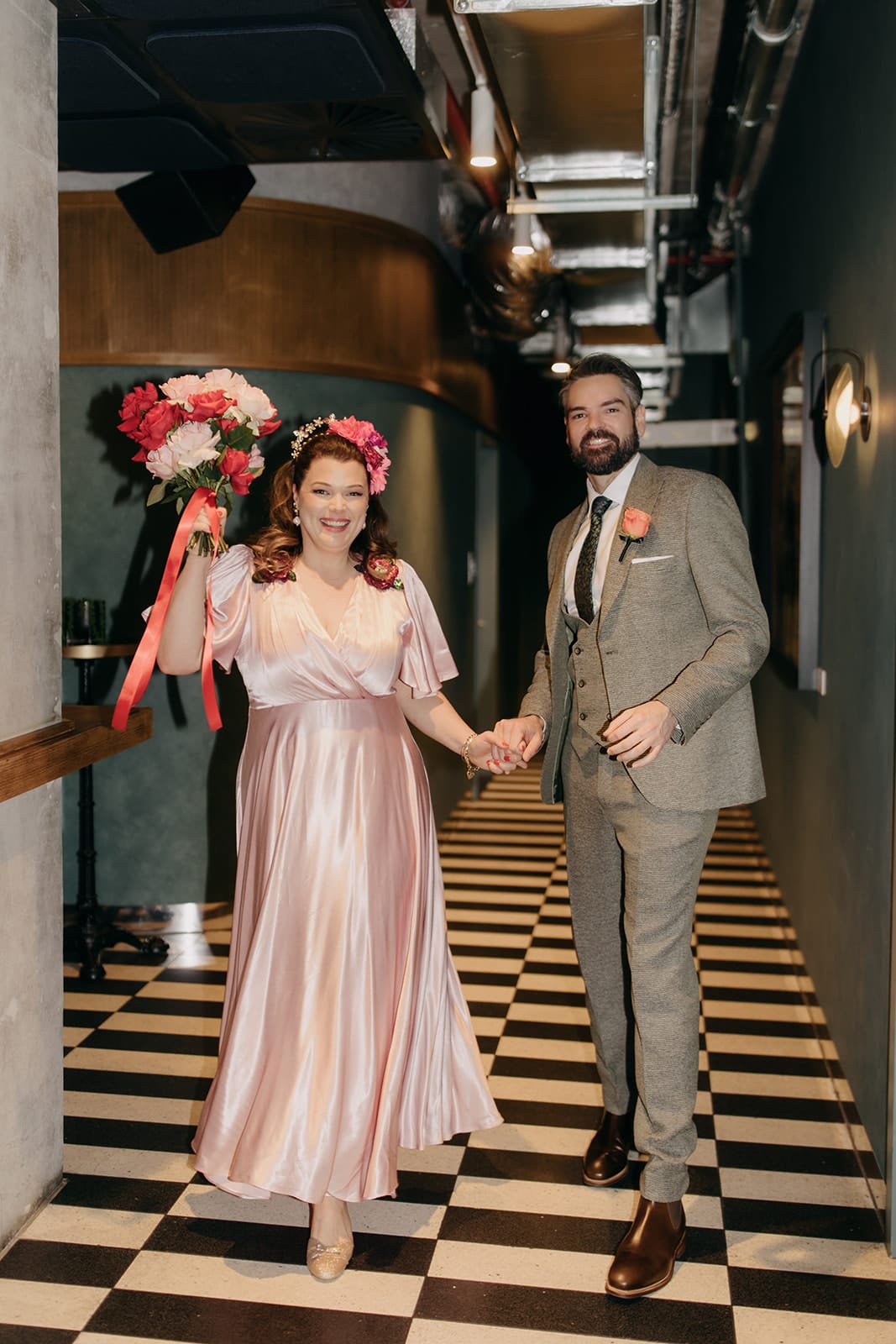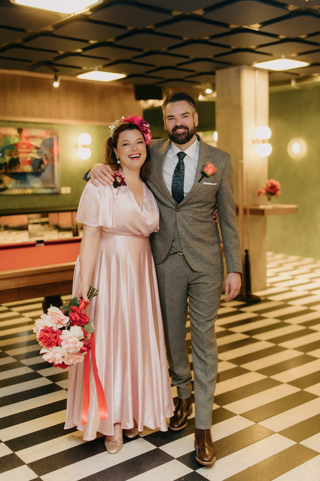THE TUNES “Carlie walked down the aisle to ‘Mint Car’ by The Cure. Our first dance was Roy Orbison’s ‘You Got It’ – Roy was one artist who seemed to come up quite frequently when we were first dating, so he was a great fit. ‘You & Me’ by Penny & The Quarters was our signing song. It’s such a sweet, romantic tune.”