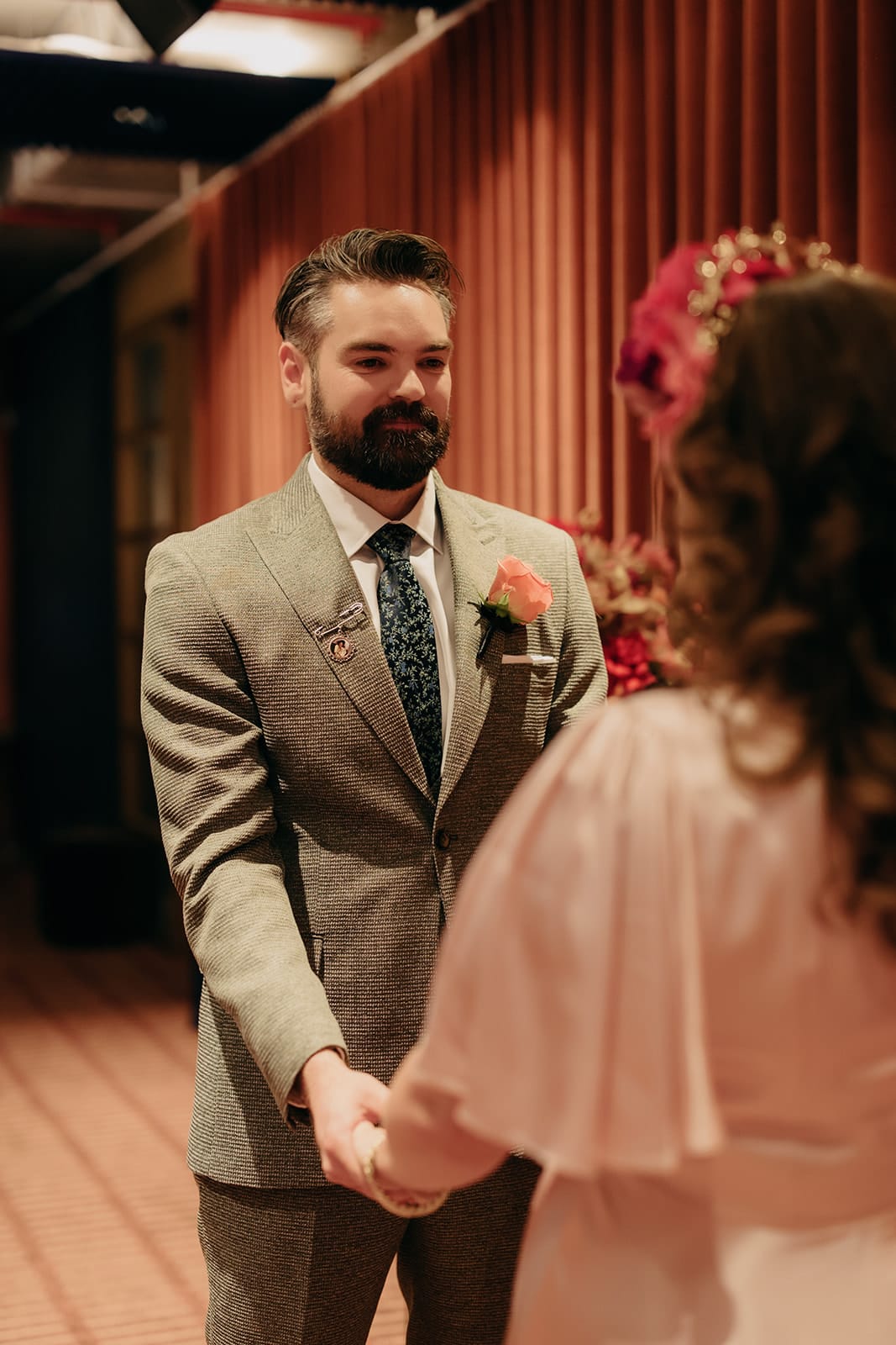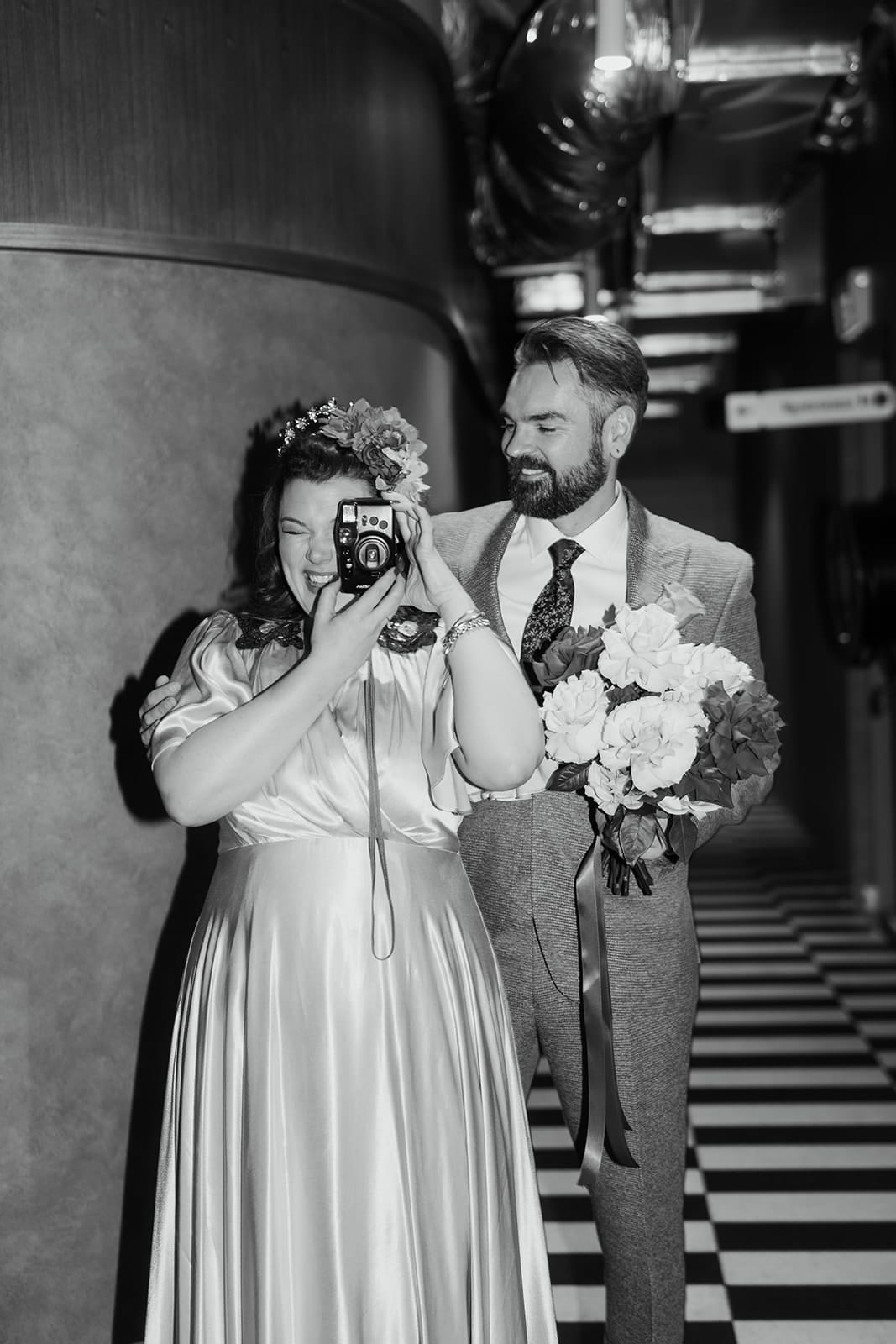 Carlie and Scott’s retro, playful, 1940s-infused wedding had us grinning ear-to-ear. These cool cats told us that initially they were “rather impartial” to getting married but believe it has ultimately made their bond stronger, adding that “referring to each other as husband or wife is still a thrill.”