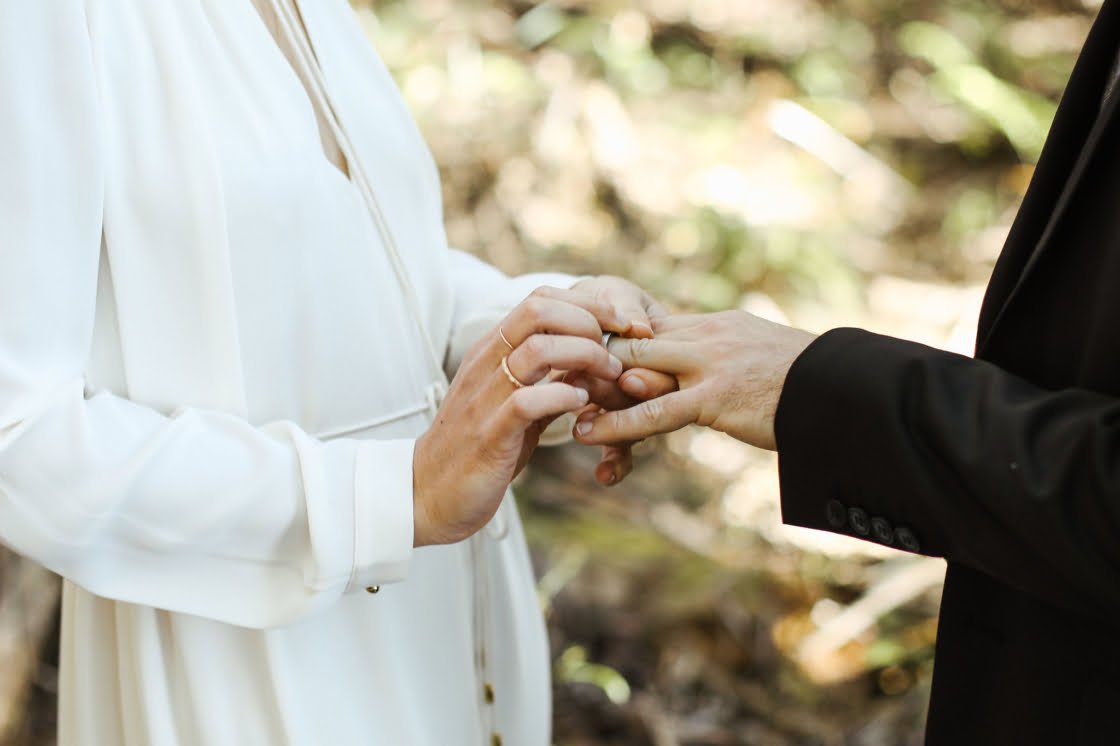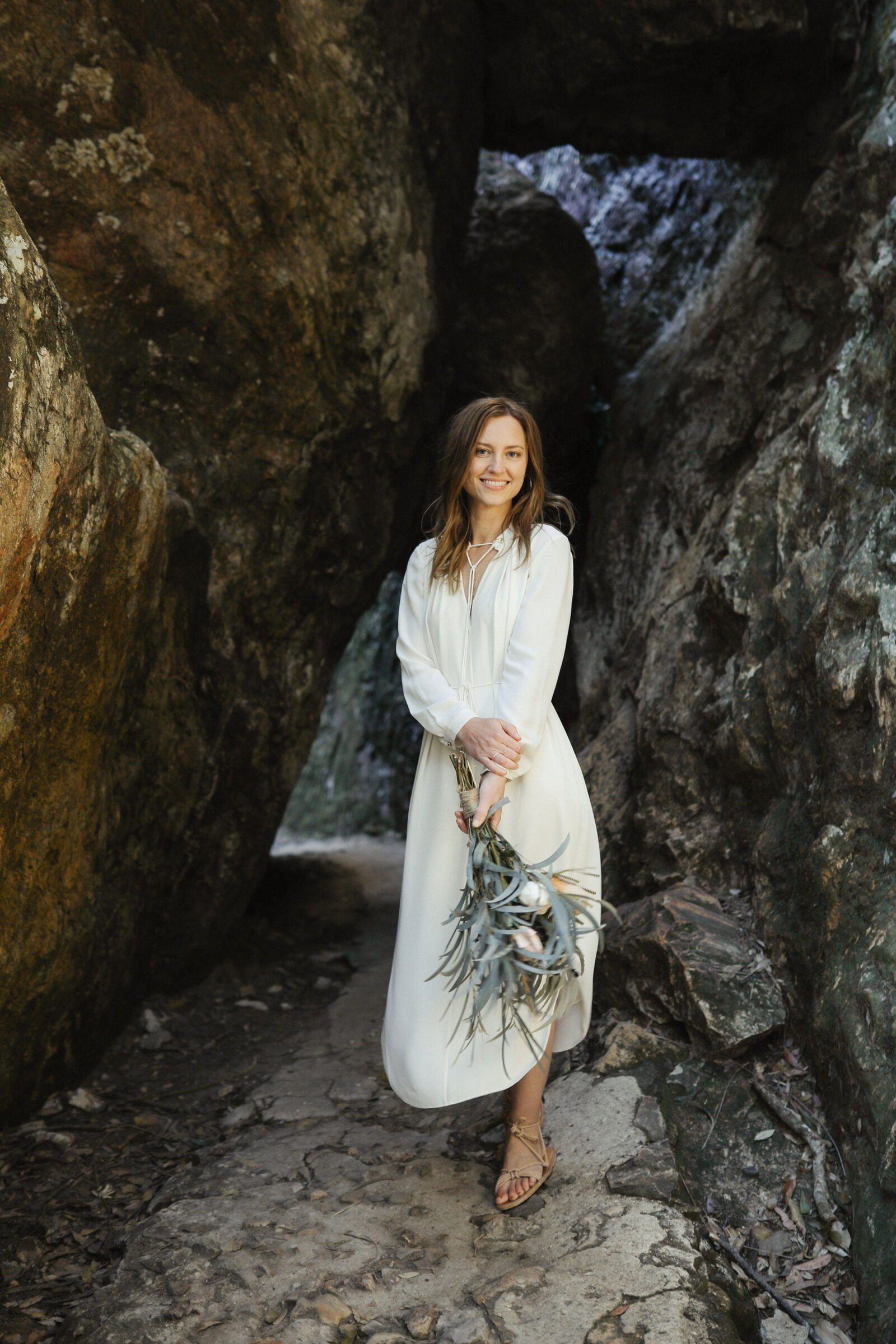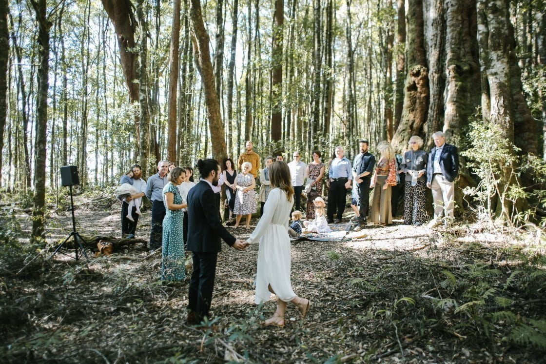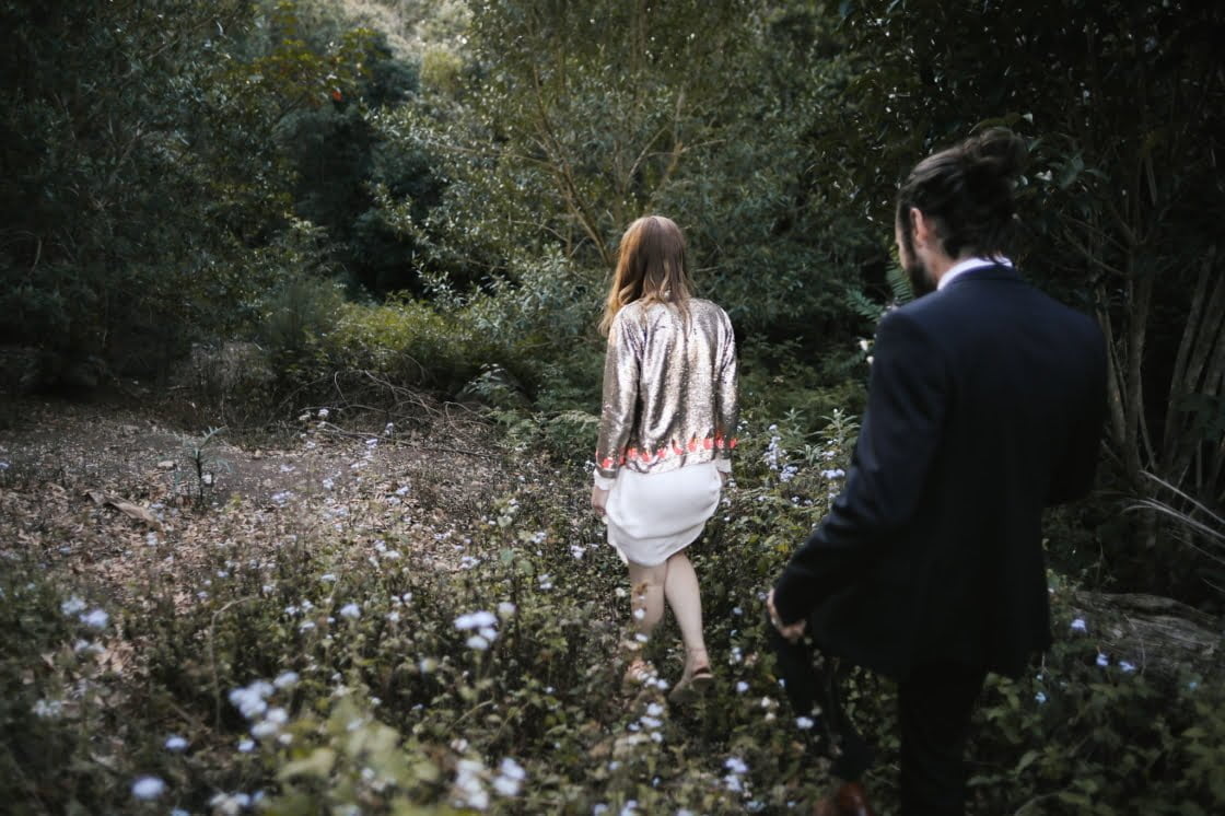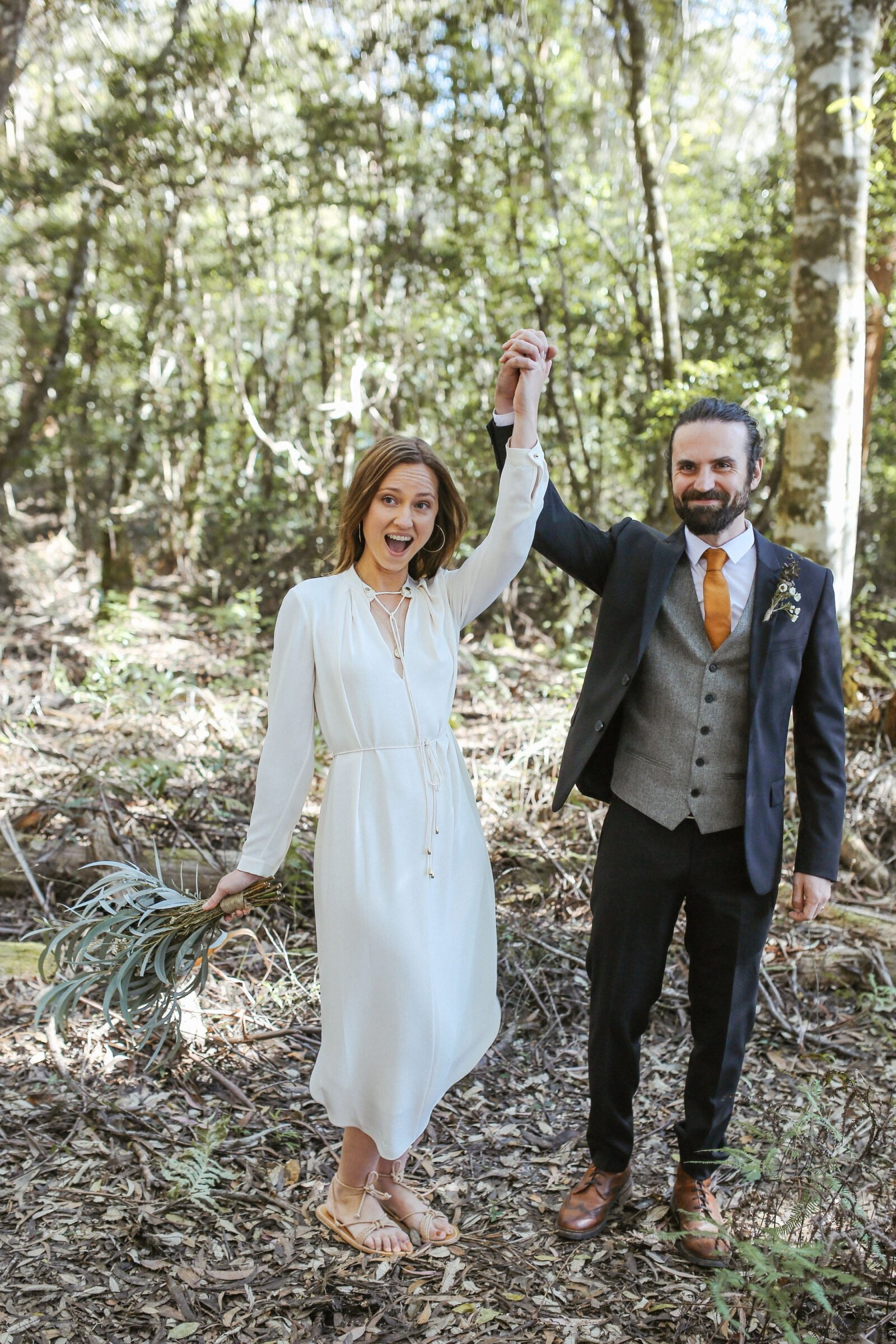 THE VENUE “We had just moved into our own home and decided that it would be nice to have the reception at home so we could just be ourselves. It had everything we needed and we only wanted a small wedding of 25 people. So that was easy. We did want the ceremony to be amongst the trees though. So we went on a few walks around our area and found a nice secluded forest that was easily accessible and had a rogue ceremony with no styling or set-up, just the big trees surrounding us.”
