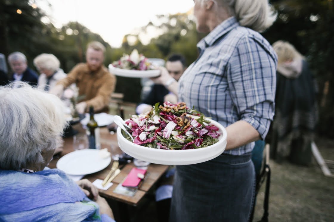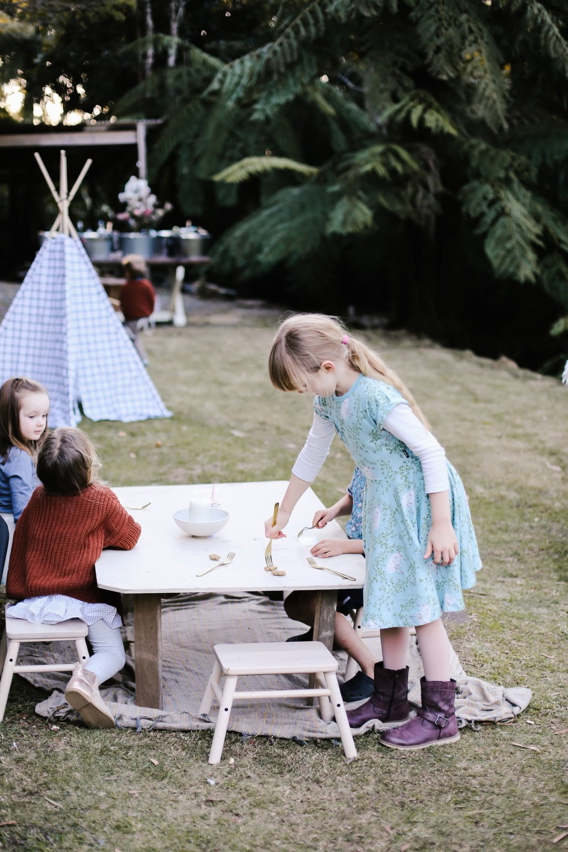 DIY “Our whole wedding was thrown together in our backyard, so it was pretty much all DIY except for the food. Our tables were actually made by Levi’s parents who used some old decking that was lying around. The day before, we had all hands on deck to put the lights up and my sister and I set the table on the morning of the wedding too. I think it was manageable because we decided to keep things pretty simple.”