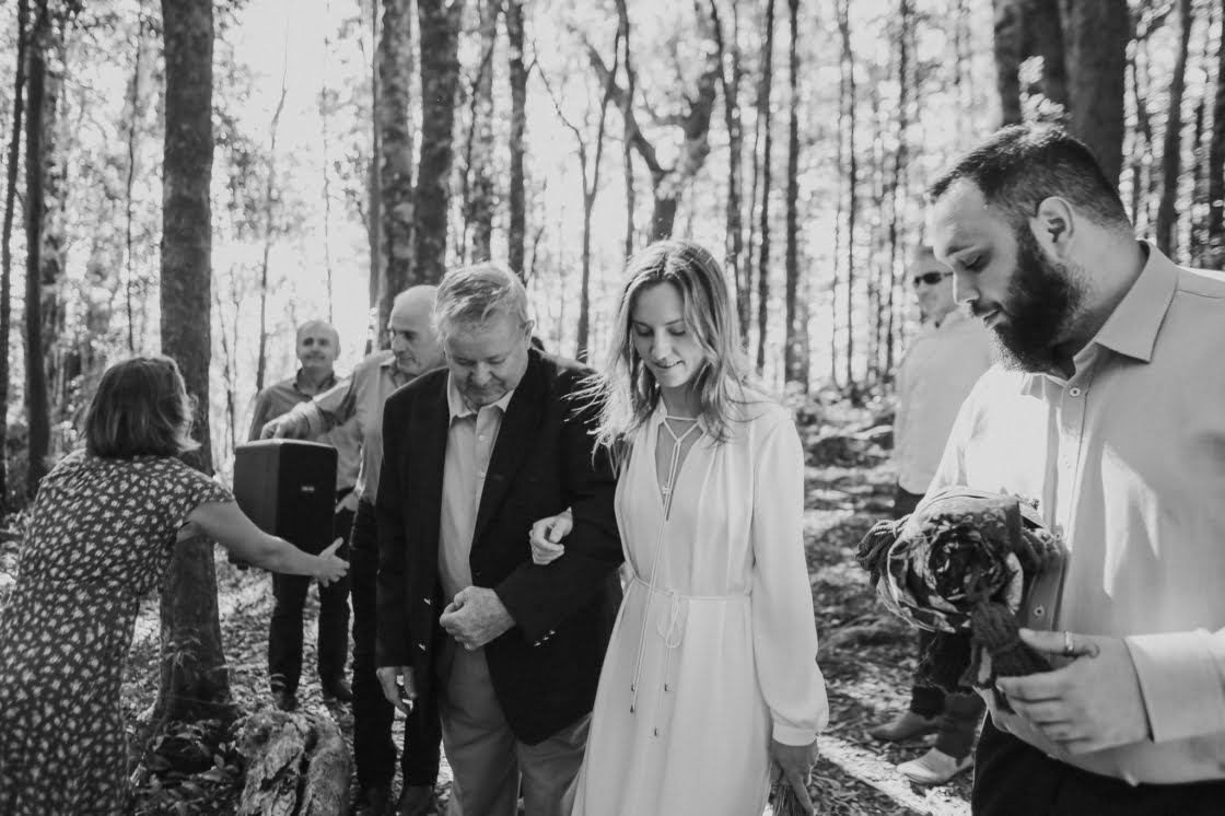 CONTRIBUTING VENDORS Photographer Brown Paper Parcel Stationery Levi Pinfold (Invite Design) Printer Moo Printing Ceremony Springbrook National Park Reception Private Property, Springbrook Catering & Cake Eat Drink Catering Wedding Favours Springbrook Honey & The Fudge Shop Entertainment Spotify Celebrant Modern Love Ceremonies Rings Alexis Russell & Rhodes Wedding Co. THE BRIDE Bridal Gown & Shoes Zimmermann Necklace Cleopatra’s Bling Hair & Makeup Emily K Hair THE GROOM Suit Jack London Bow Tie asos Shoes Frye Watch Casio
