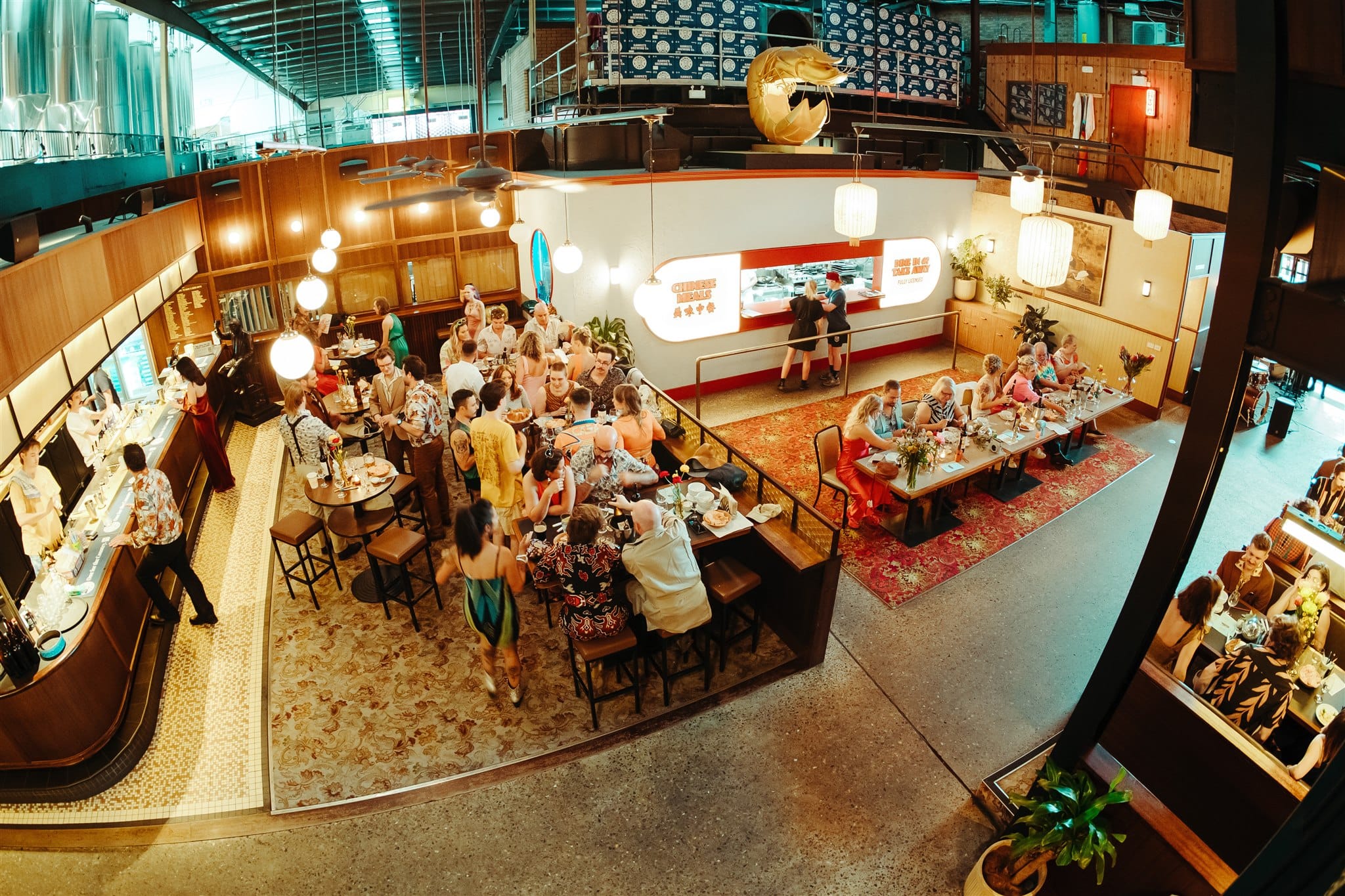 THE VENUE “Location and price drove us to look at the Royal Botanic Gardens. We didn’t want to have some big process to get from the ceremony to the party. Also, I really love trees and birds, so the gardens were an easy choice. For the reception, the Bob Hawke Brewery matched our vibe perfectly, and we loved their dedication to supporting Australian wildlife and lands.”