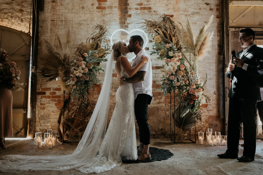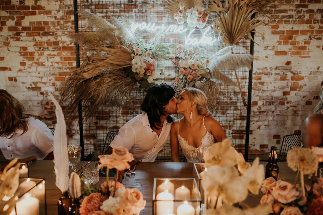 These lovely humans met eight years ago on a blind date and have been on cloud nine ever since. When they decided it was time to seal the deal, they channelled a day oozing relaxation and calm. In fact, bride Charli’s motto for the day was “bridechiller”, a term we can very much get behind. All these cruisey vibes were achieved with the help of a few talented vendors including stylist and event planning wonder woman Forethought by Samantha. This talented chickadee even designed a whole heap of light fittings to ensure the Charli and Nic’s day was as perfect as they come. The icing on the cake? The presence of master memory capturer’s Corinna & Dylan. We recommend preparing your Pinterest boards and scrolling down asap…