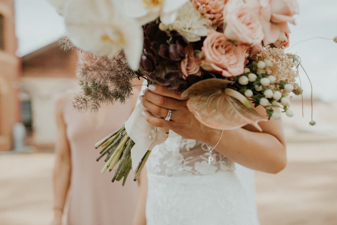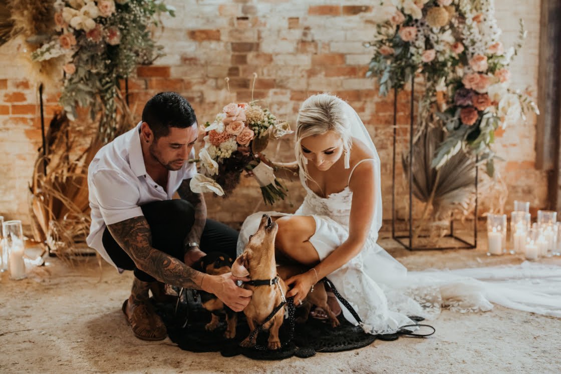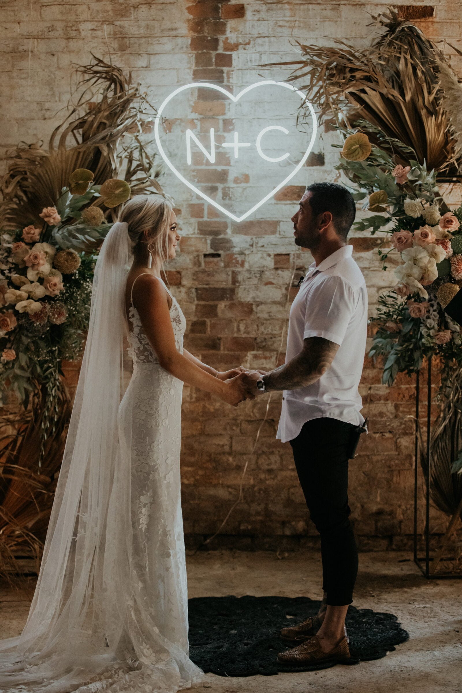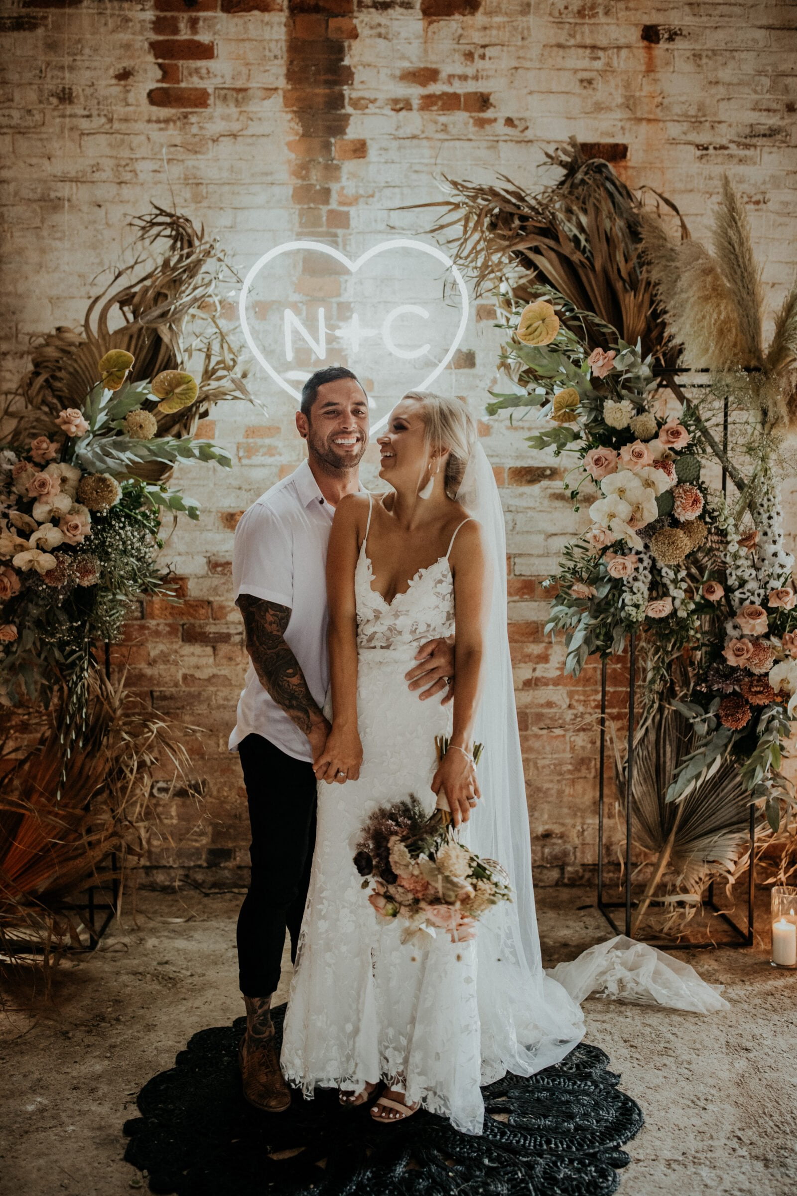 These lovely humans met eight years ago on a blind date and have been on cloud nine ever since. When they decided it was time to seal the deal, they channelled a day oozing relaxation and calm. In fact, bride Charli’s motto for the day was “bridechiller”, a term we can very much get behind. All these cruisey vibes were achieved with the help of a few talented vendors including stylist and event planning wonder woman Forethought by Samantha. This talented chickadee even designed a whole heap of light fittings to ensure the Charli and Nic’s day was as perfect as they come. The icing on the cake? The presence of master memory capturer’s Corinna & Dylan. We recommend preparing your Pinterest boards and scrolling down asap…