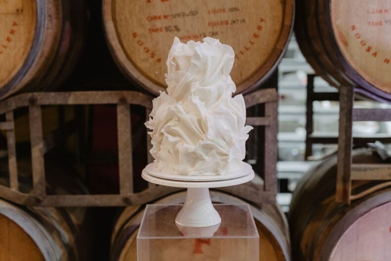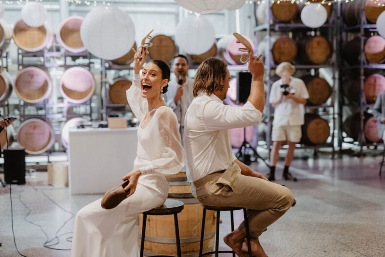 FAVE DEETS “The flowers were simply amazing. From concept to execution, Mondo Floral Design really went above and beyond. Because we live in Adelaide, I sadly wasn’t able to take any of my flowers home, so asked if we could donate some to a local retirement village, which Mondo Floral Design did the following day. Also our DJ Tony Velvet Likes To Party not only set the vibe for the event but was one cool dude. The best part, he played vinyl for the first half of our wedding, which we found super unique, and added to the overall feel of the night. Not to mention, his outfit was on-point. Finally, our cake by Zoe Clark Cakes was a masterpiece. It looked picture-perfect; I didn’t want to cut into it.”