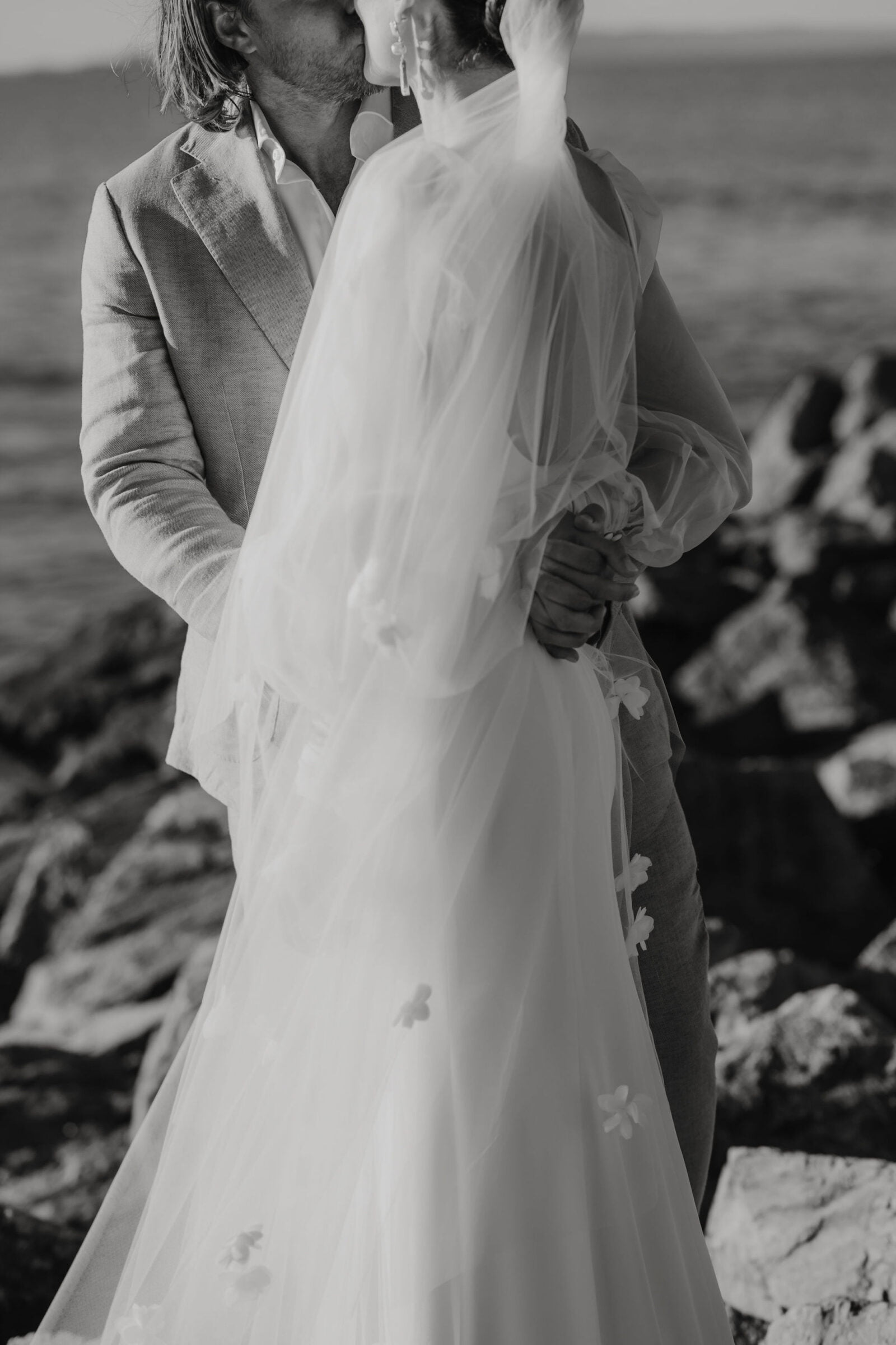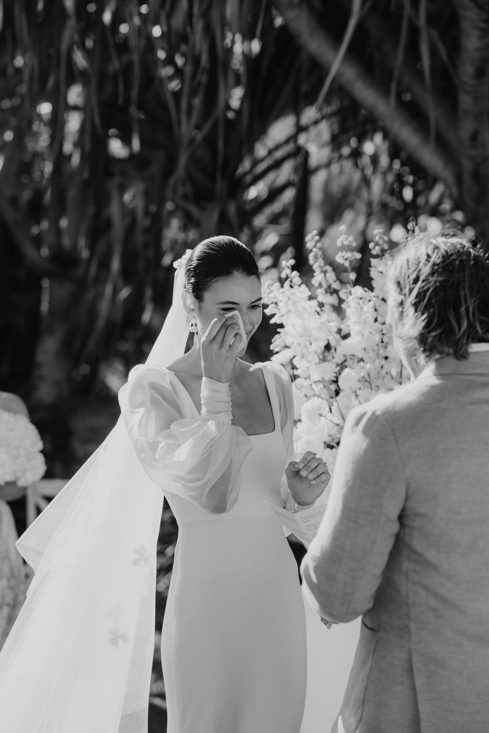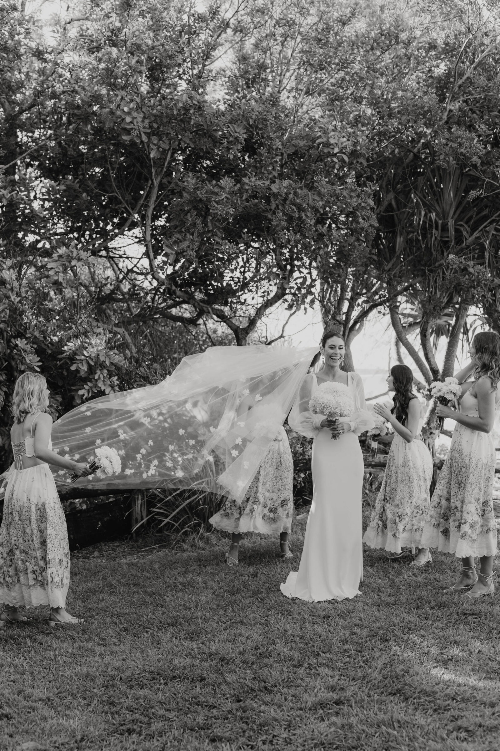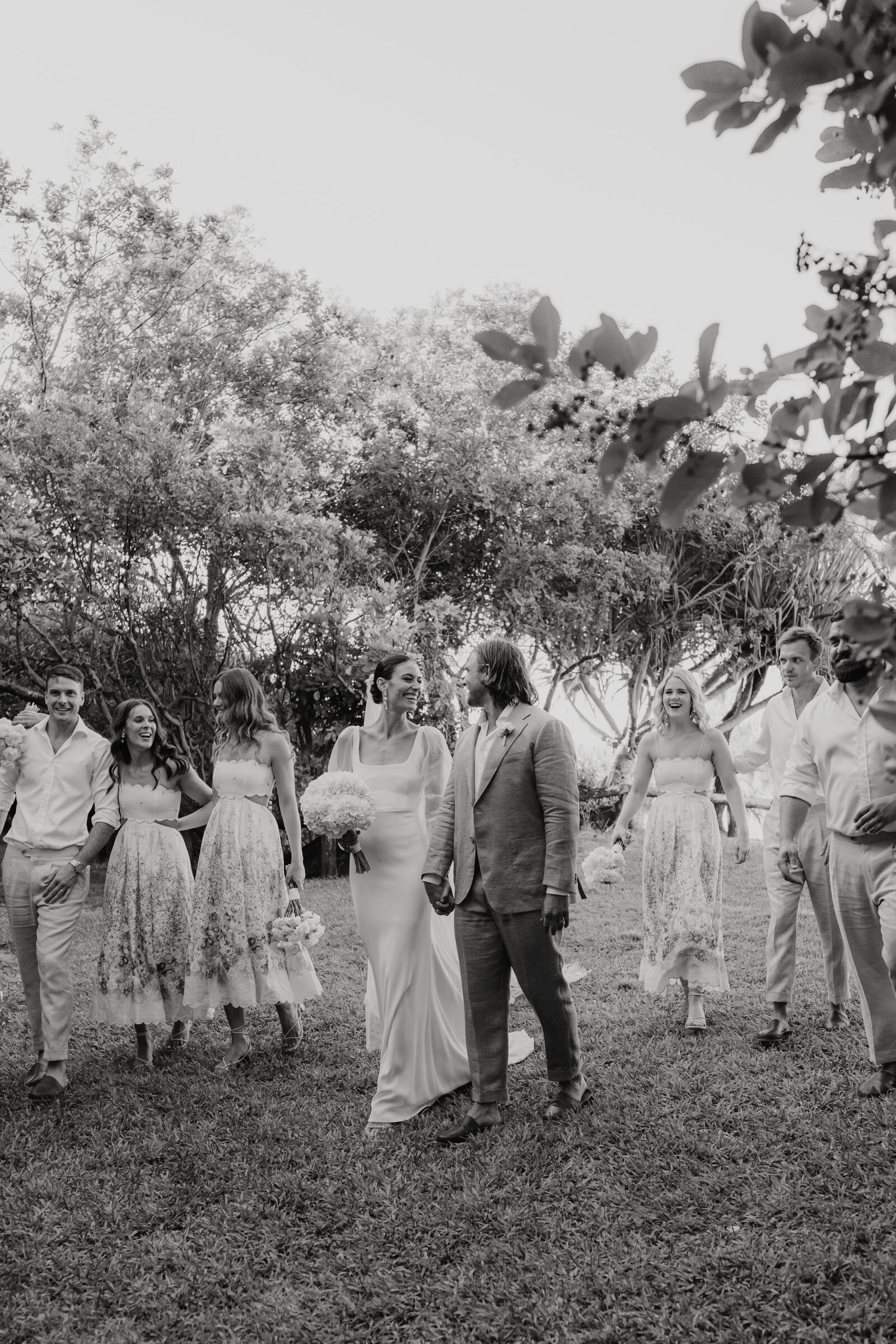 CONTRIBUTING VENDORS Photographer Taylor Kezia Photography Cinematographer Gurr Media Florist Mondo Floral Design Ceremony venue Maison La Plage Reception venue Land & Sea Cake Zoe Clark Cakes Hire Items & signage Splash Events Sound Hire & Entertainment Tony Velvet Likes To Party Celebrant Carly Slade Weddings Rings Natasha Schweitzer Transport Noosa Luxury Chauffeurs THE BRIDE Bridal gown & veil Greta Kate Shoes Wittner Shoes Accessories Christie Nicolaides Hair Amy Creten Makeup Alishia Babadimas Bridesmaid dresses Zimmermman Bridesmaid shoes Sol Sana THE GROOM Suit, shirt & groomsmen suits Institchu Shoes Aquilla