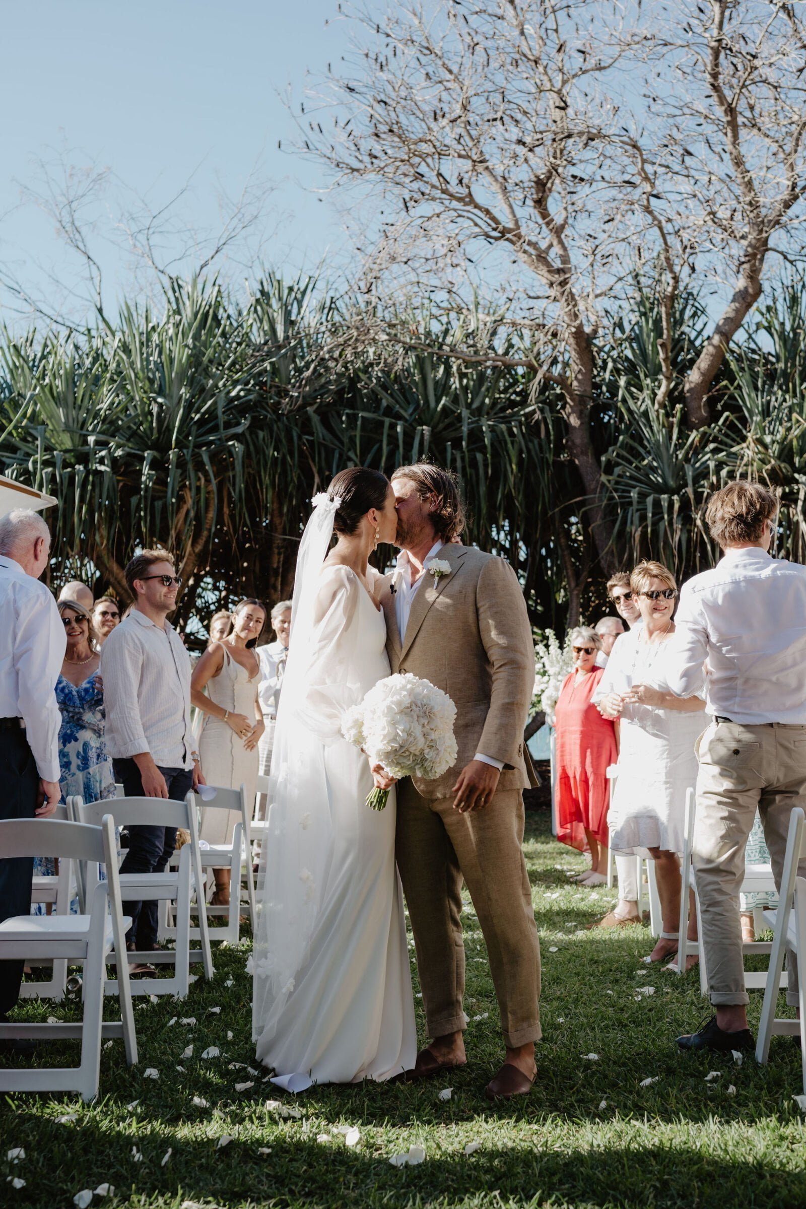 Charlotte and Luke’s destination wedding had us from the get-go. There’s just something about Taylor Kezia’s superb captures that puts a big smile on our dial. Then there’s the fact they persuaded 100 of their loved ones to travel to the coastal town of Noosa for their lovefest (not a hard sell, we’re sure!), Charlotte’s stunning custom-made gown, and finally, their definition of marriage…“It means to be the partner that we both deserve, and on days that we need each other the most, we will be there one hundred per cent of the time, without fail or judgement.” So you can see why we like them, right? Scroll down for all from this loved-up duo…