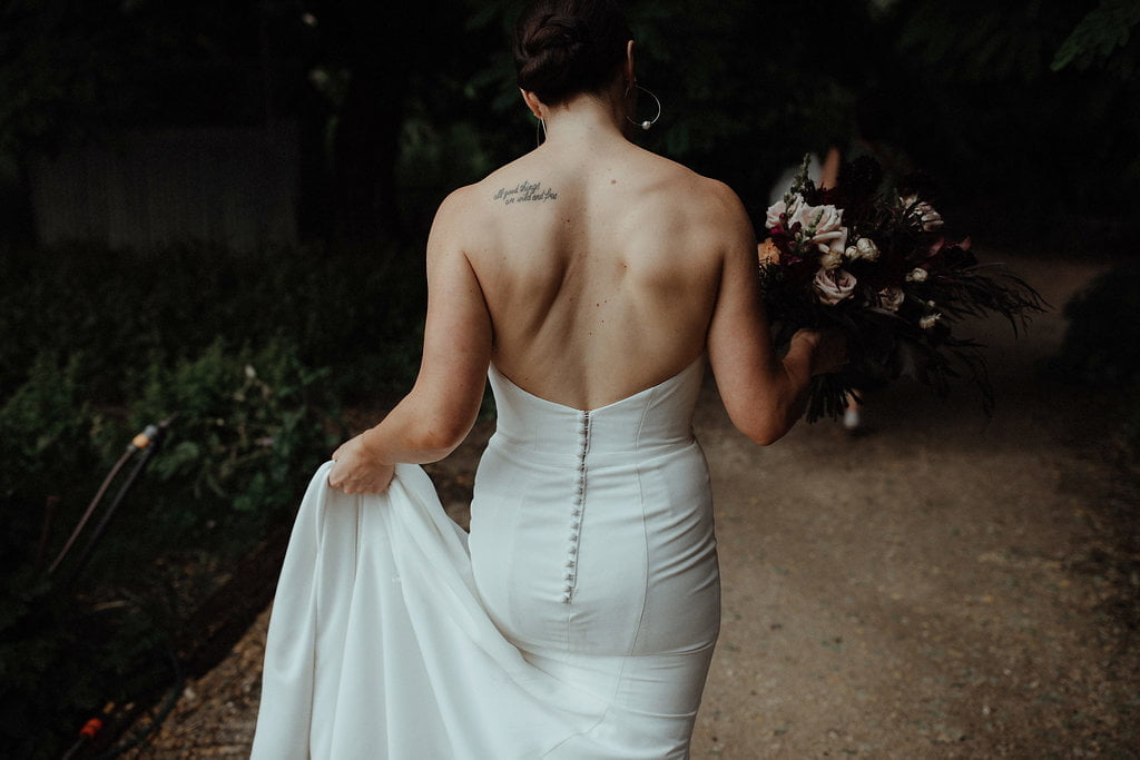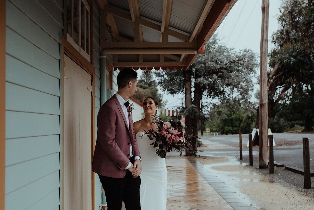 WE’RE GLAD WE “We were so happy we did a first look. Lanky hates PDA and having all eyes on him, so it was really nice to share that moment with just each other. However, I wish we organised a wet weather back up or picked a venue that had the option of both an indoor, or outdoor ceremony location. Our reception floor plan allowed for a ceremony set up with a bit of re-jigging, but there was little to no covered areas apart from the reception room which made both the ceremony and photos very difficult with such bad weather.”