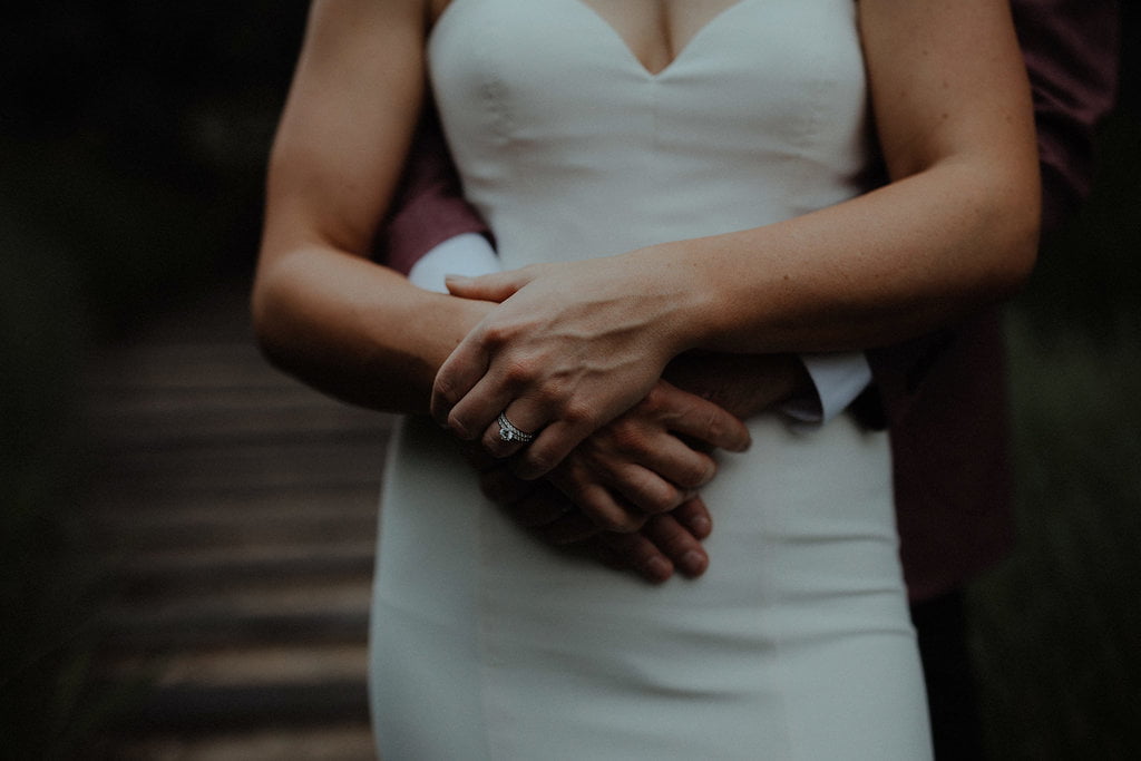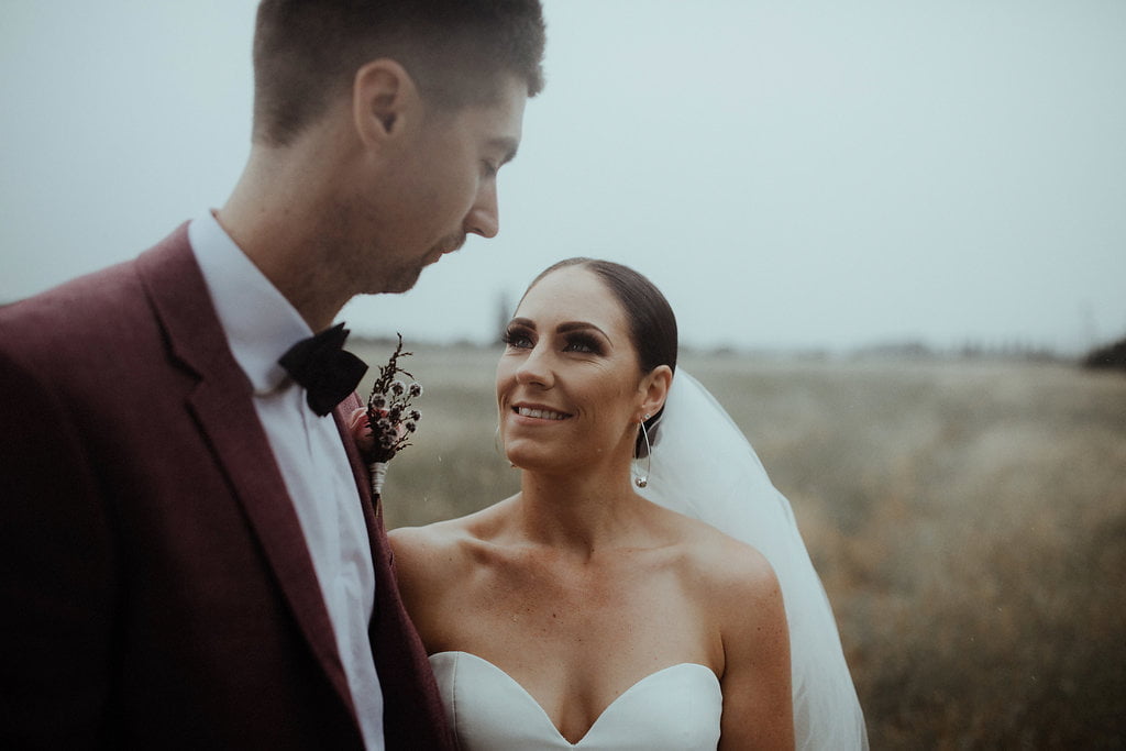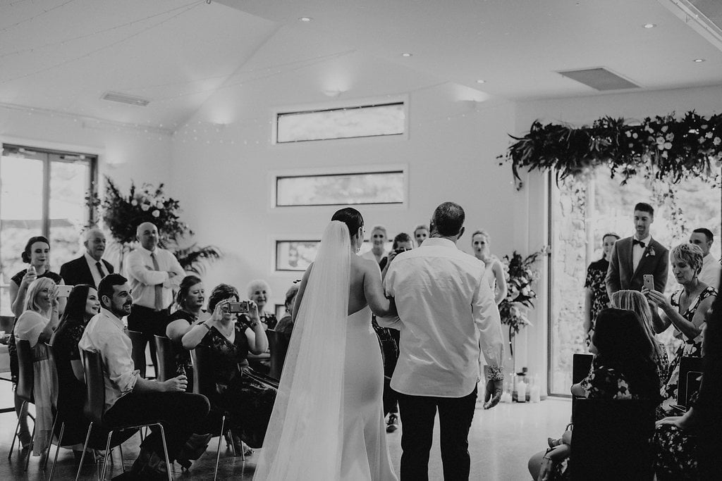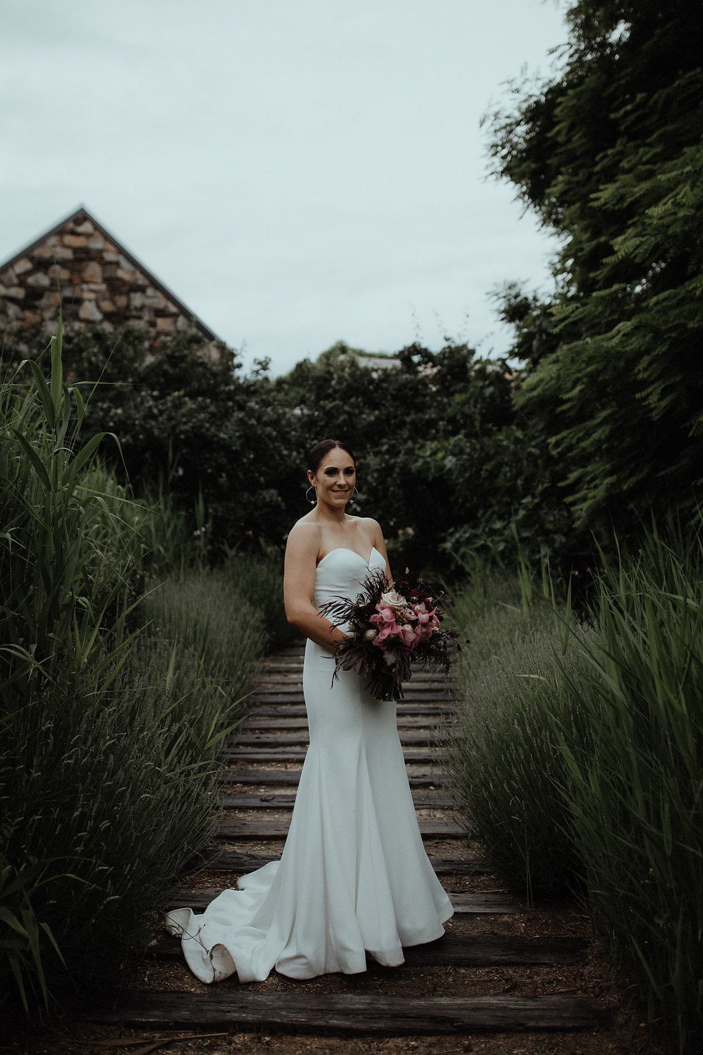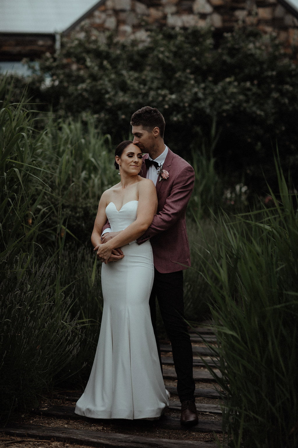 WE’RE GLAD WE “We were so happy we did a first look. Lanky hates PDA and having all eyes on him, so it was really nice to share that moment with just each other. However, I wish we organised a wet weather back up or picked a venue that had the option of both an indoor, or outdoor ceremony location. Our reception floor plan allowed for a ceremony set up with a bit of re-jigging, but there was little to no covered areas apart from the reception room which made both the ceremony and photos very difficult with such bad weather.”