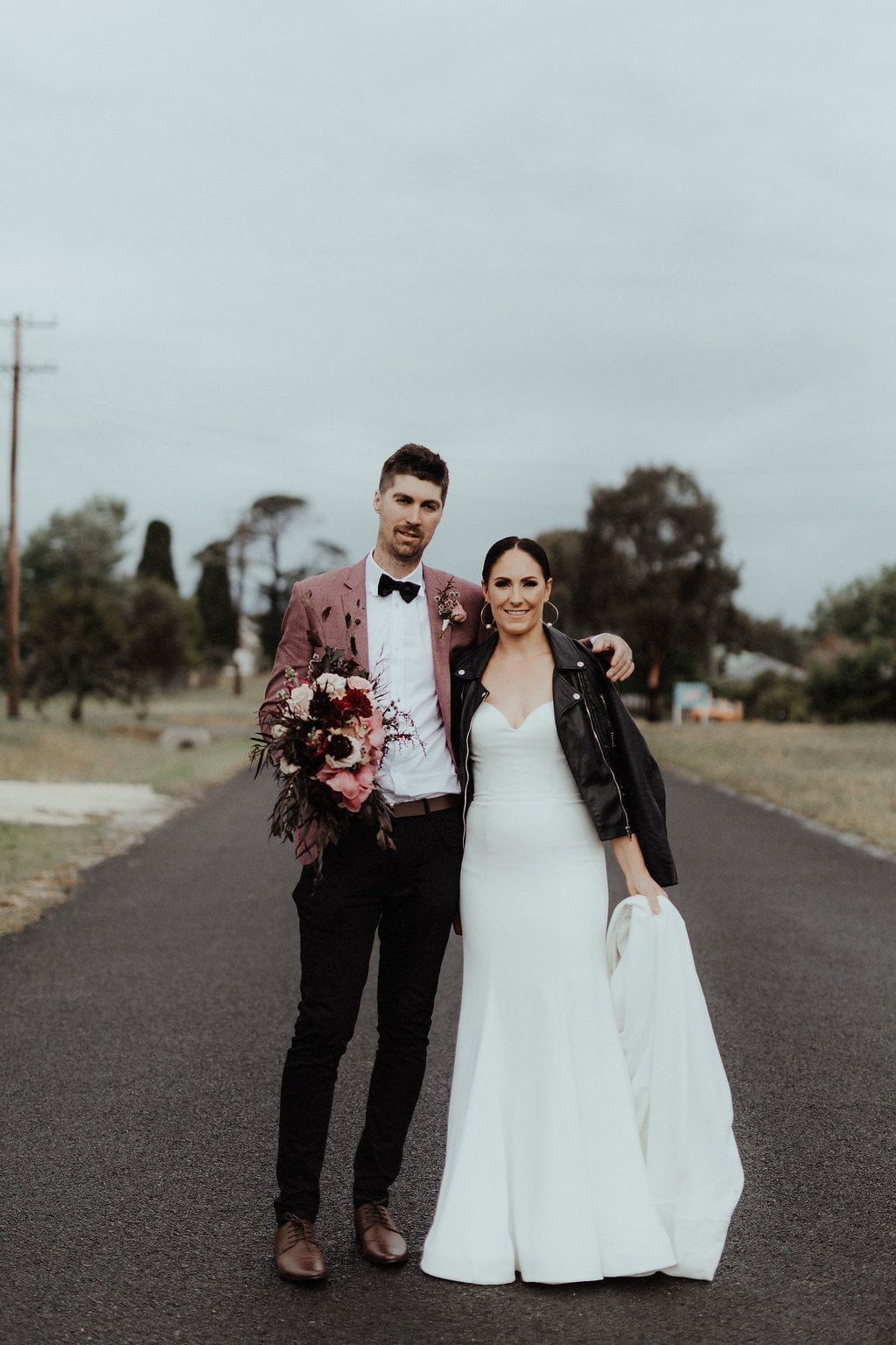 CONTRIBUTING VENDORS Photographer Corrina & Dylan Stylist Willowhouse Weddings & Events Florist Lilygrace Flowers Invitations Butters Creative Place Cards Design Fusion Studio Ceremony & Reception Grazing Cake La Ombre Creations Linen Napkins Table Art Hire Items Showpony Events Photo Booth Mugshots Photo Booths Neons MK Neon Signage MP Signs Entertainment DJ Lipgloss & Ruby Kentwell Celebrant A Girl Meets a Boy Transport Deane Transport BRIDE Bridal Gown Custom-Made Veil Kathryn Lemin Designs Leather Jacket Just Jeans Pyjamas Homebodii Rings Creations Jewellers Shoes Pied a Terre Earrings Dinosaur Designs Hair Kate Lily Dressing Hair Makeup Jacklyne Leigh Bridesmaid Dresses Cue, Kookai, C/MEO Collective, Esther Bridesmaid Gifts The Daily Edited GROOM Suit Jacket West End by Simon Carter Shirt InStitchu Pants yd. Bow Tie & Shoes Connor Ring Michael Hill