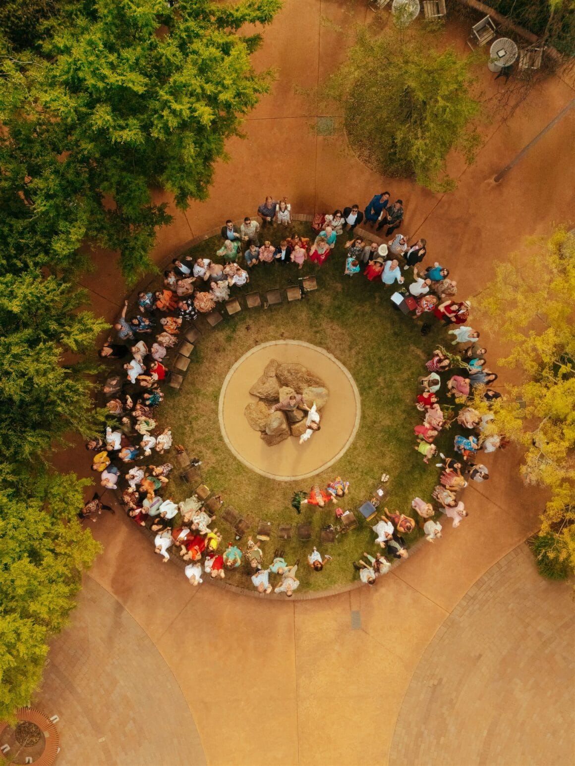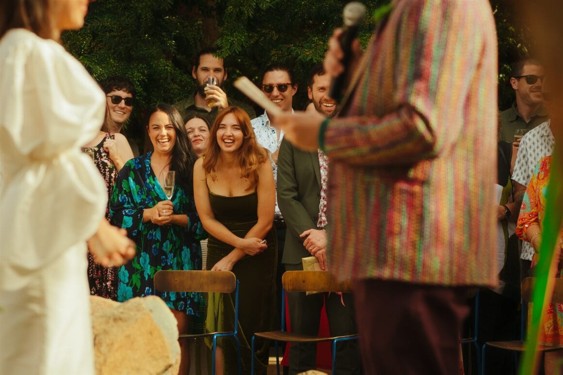“We are not at all religious, but there were a few meaningful incorporations that we felt were important. Obviously, an acknowledgement of country was first and foremost, but another important touch was to invite anyone in the crowd to take off their shoes and socks and feel the ground beneath their feet. Connect with the earth so that they could connect with each other. This was entirely optional, but for Tom, this helped to centre himself and bring him to the moment.”