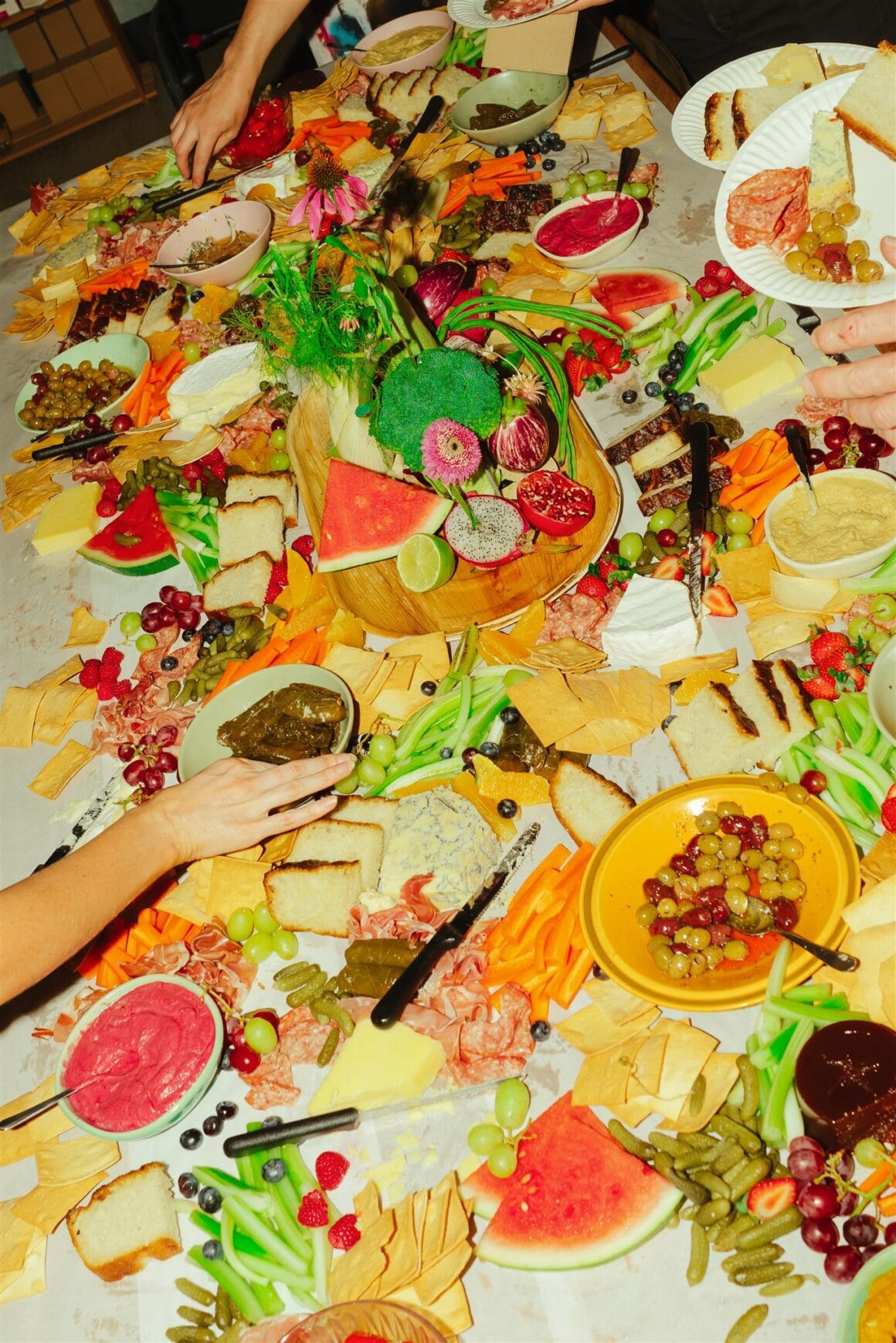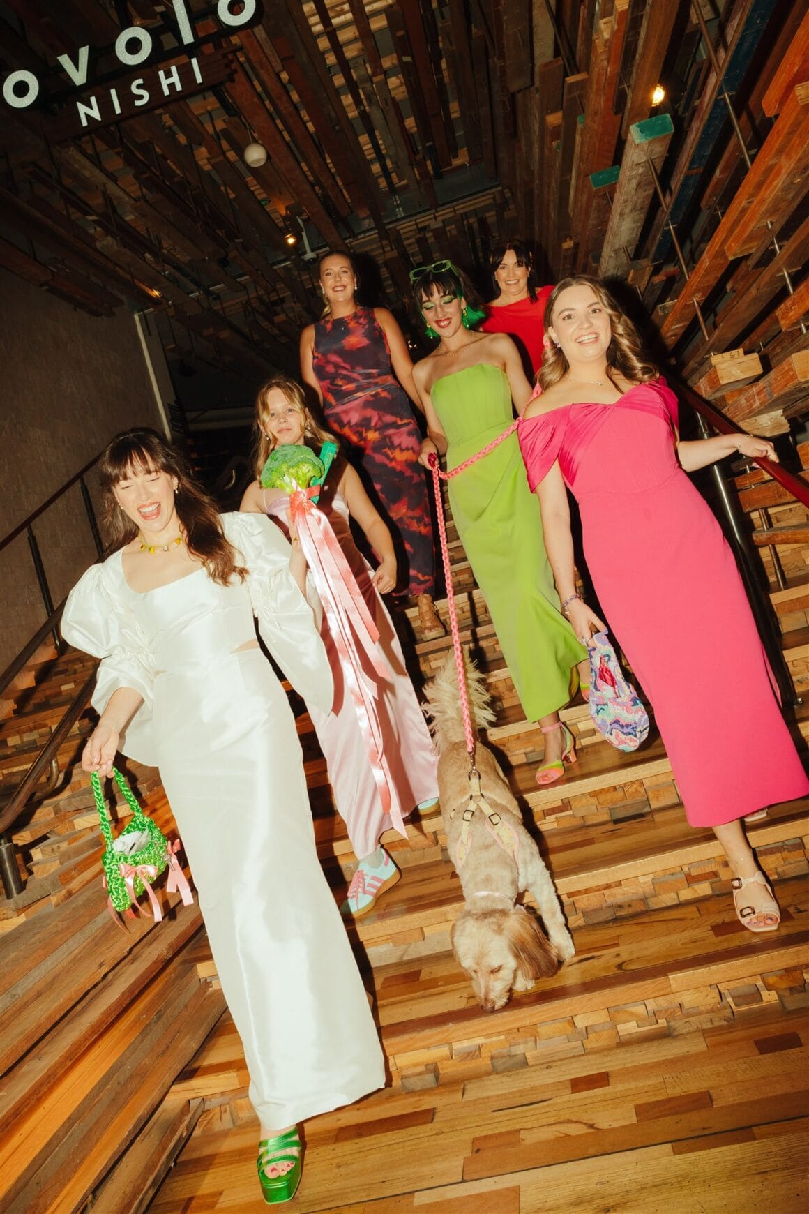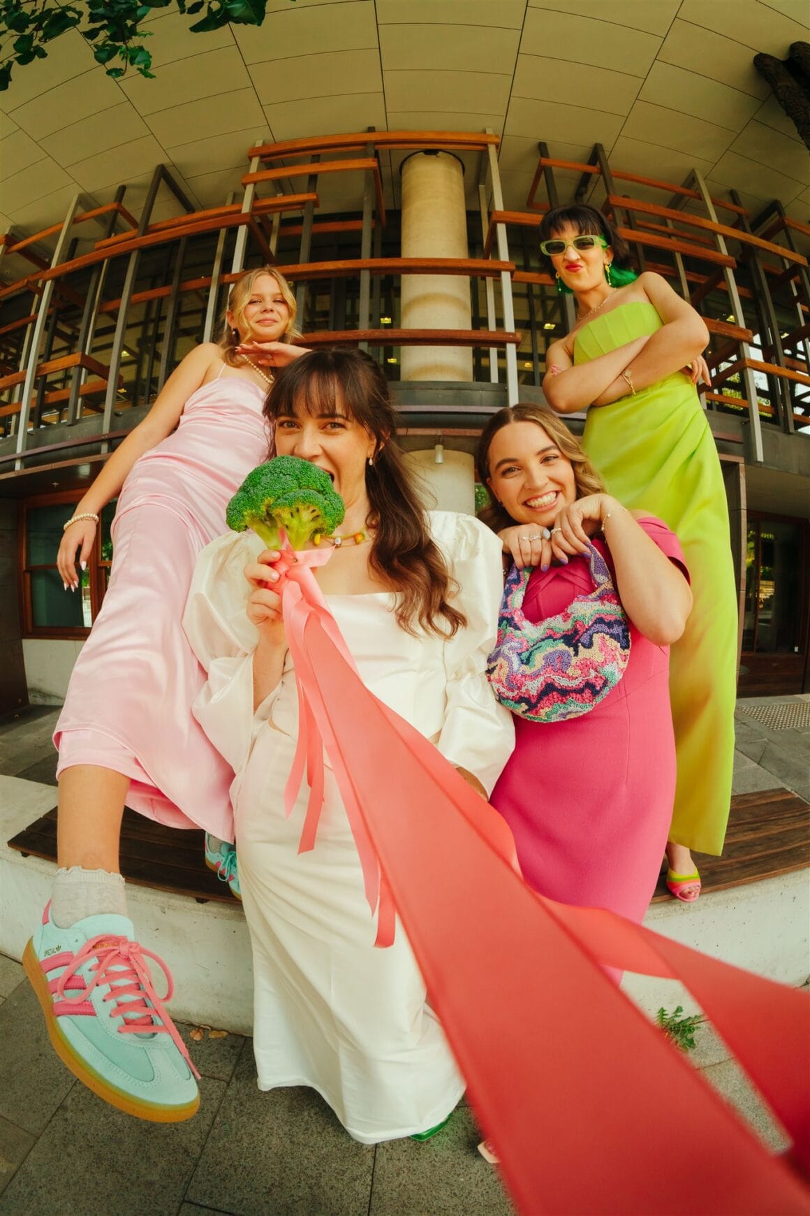 “The first night that we met in Sydney, the karaoke crew, including Chloe, came back to my house for a nightcap and a chat. It was there that I showed Chloe the odd assortment of vegetables growing in the small courtyard. I proudly displayed herbs, chillies, some carrots grown in a toaster, and a solitary broccoli named Peter Broc. We devoured poor Peter raw and, from that day, fresh fruits and vegetables became a theme of our relationship. When the topic of a dress code or theme came around, we weren’t happy with the idea of just “black tie” or “cocktail”; it all felt too restrictive. So we came upon a more artistic concept – a theme that would allow everyone to wear what they wanted, express themselves, be unfettered, and bring the colour and vibrancy that we wanted to see on the day. ‘Fresh and juicy!’ (The crowd sure did not disappoint on the day, and we loved how it was interpreted.”