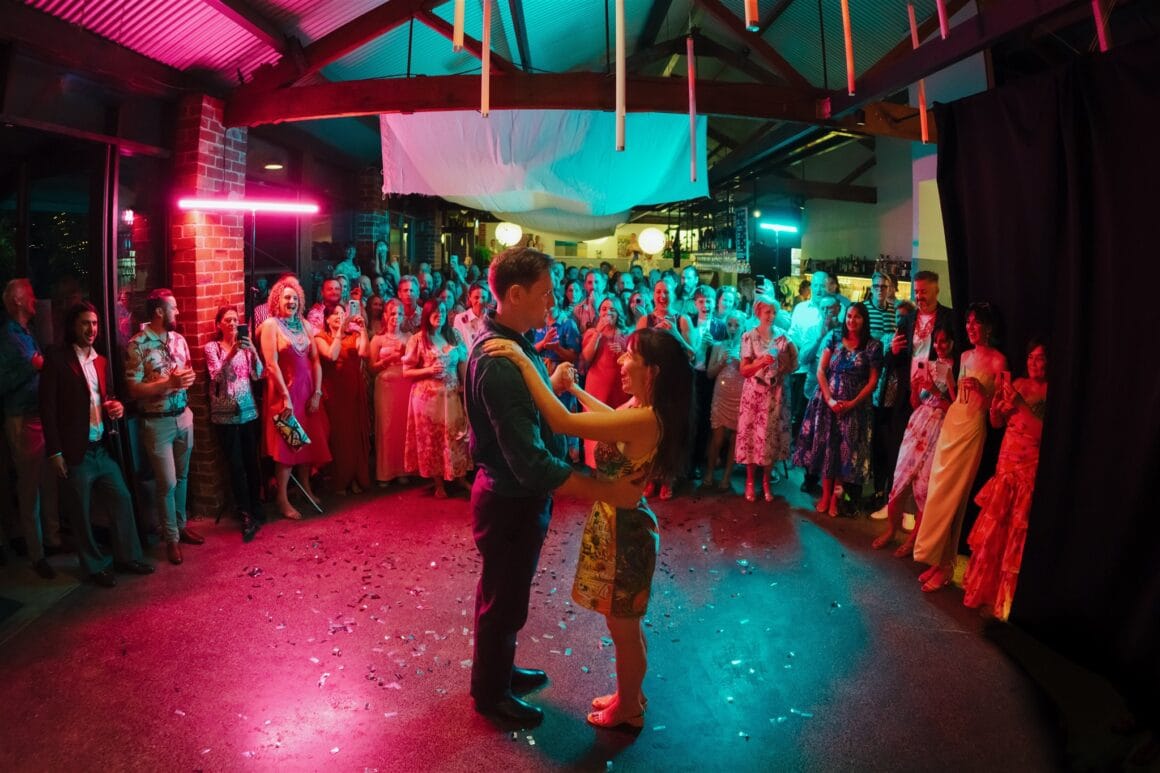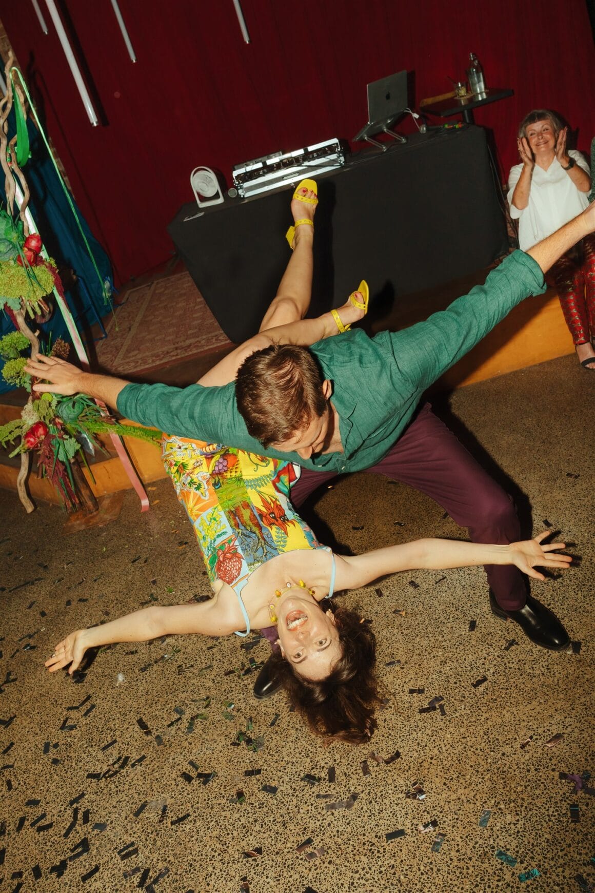 (Tom} “My favourite moment was arriving at the ceremony in the back of Chloe’s sister’s ute driven by her Dad. The car had been decked out with ribbons and fresh vegies by Chloe’s Dad and sister. Chloe and I had our first few moments to ourselves to actually look at each other, talk and prepare ourselves for what was to come. As we arrived, all 150ish guests were cheering and smiling, our walking down the aisle song was playing, and I was just overcome with emotion.” (Chloe) “I would have to agree… A close second favourite moment was the choreographed dance by Melissa from Dancensations. We wanted to do a routine that was a little different – think Napoleon Dynamite or Muriel’s Wedding but with a couple of lifts and spins and some confetti for dramatic effect. The guests LOVED it, we really surprised them with something a bit unexpected there, and it felt like such a thrill to be our complete and silly selves and go into the dancefloor with a bang.”