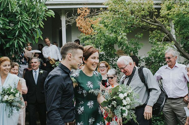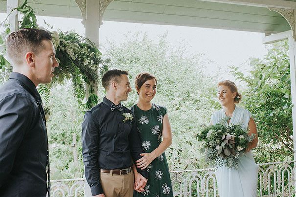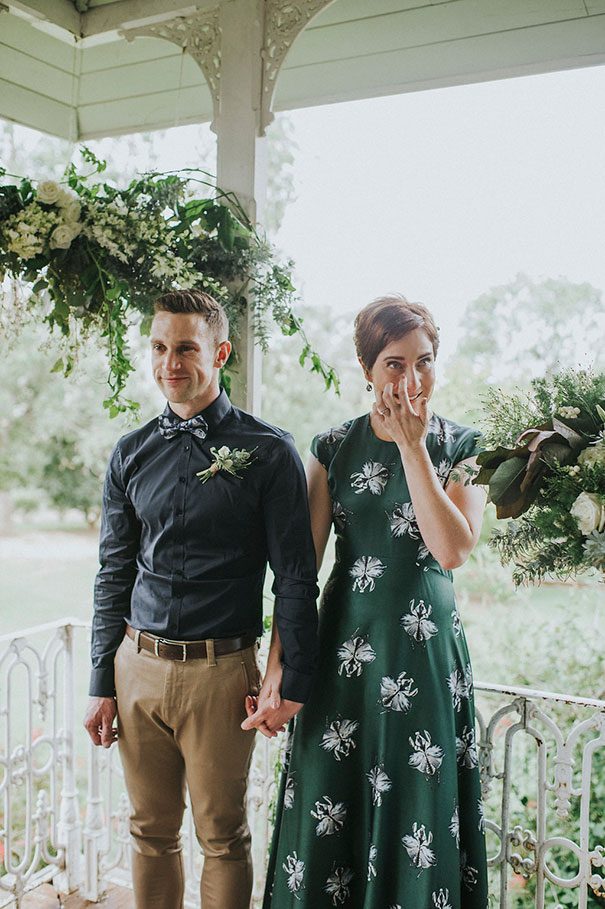 Having spent the first four months trying to work out “how NOT to look like a bride”, Christelle enlisted the help of Beate (a fashion stylist and personal shopper) to help her find ‘the one’. After several emails back and forth, they found themselves at David Jones and – in just two hours – also found the perfect non-bridal bridal green (yes, green!)Bianca Spender gown. Martin, too, was a pretty big fan of his bride’s fashion choice. “Christelle looked stunning in her dress. I had no idea what she would be wearing until she walked down the aisle, and was close to tears when I first saw her. Of course my favourite detail of the day was my beautiful wife.”