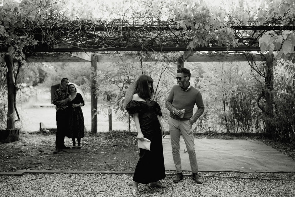 THE DRESS “I wasn’t keen on wearing white and I wanted to buy something that I could wear again and again. Most of all, I wanted to feel comfortable. I owned a few Arnsdorf pieces already and I really wanted to invest in clothing that was ethical and sustainable. Arnsdorf do limited runs and will even tailor to fit you. I had a great experience with Thea Bassilou in their Fitzroy store. I also ended up buying an Arnsdorf black velvet jumpsuit to wear later in the night.”