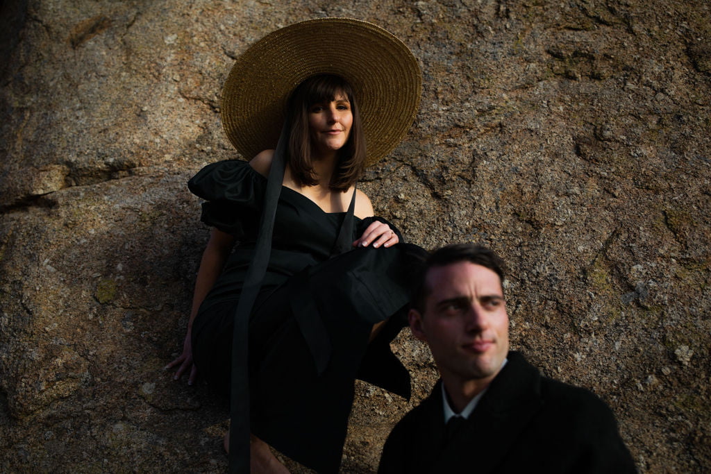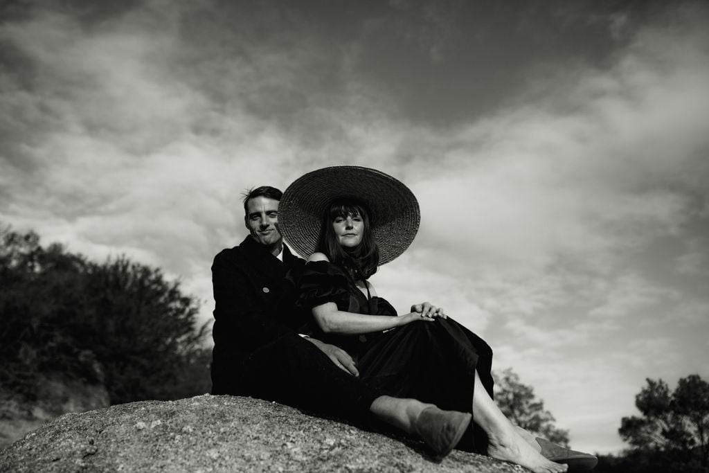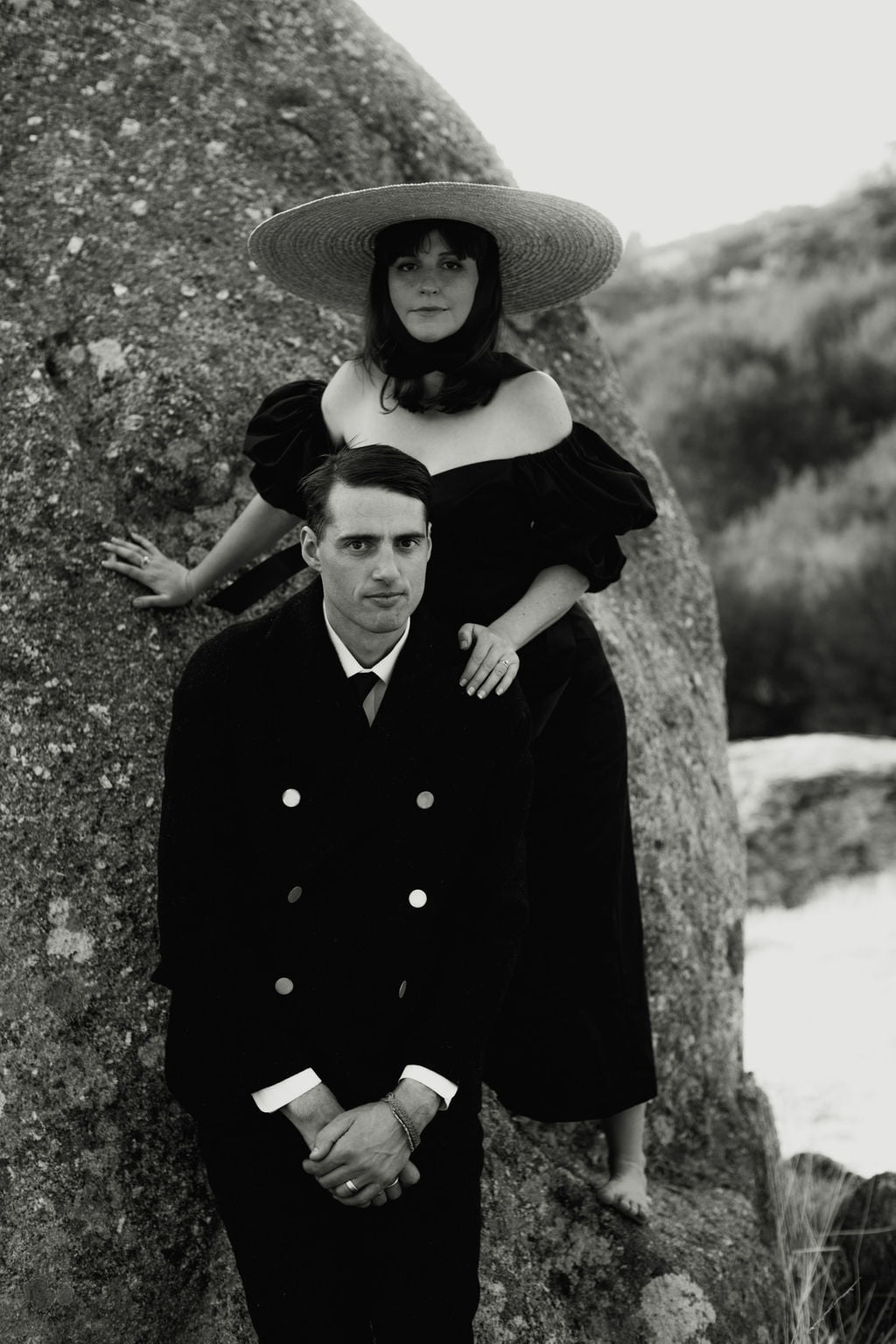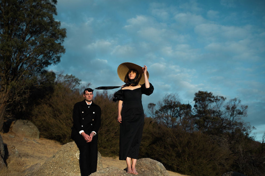 Claire and Dave are both artists, so it goes without saying that their big day was one humungous work of art. The couple brainstormed some pretty cray visions for their wedding including children in suits covered with bells, a lone bagpiper on a distant hill and boats stranded in drained out dams. Whilst the couple decided to strip things back a touch, the day is still pretty darn impressive. That black dress and beribboned hat combo sure has stolen a piece of our hearts! Now, you are seriously going to want to scroll down for I Got You Babe’s classy captures…
