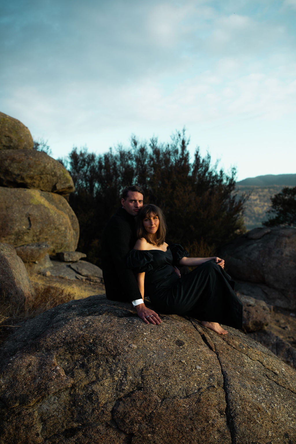 STANDOUT VENDORS “The food was incredible. Spade to Blade created a menu for us that was made from locally sourced produce. They cooked on the coals of the fires which added to the whole mood. Our photography was done by Lilli from I Got You Babe. I originally hadn’t realised she even did wedding photography and had been following her fine art photography on Instagram. Rather than fancy dinners and weekend getaways, Dave and I have a tradition of purchasing artwork to celebrate our anniversary. We wanted an image that felt like an artwork more than a wedding photo. Lilli did an incredible job. Her image of us on the rocks will join our growing art collection.”