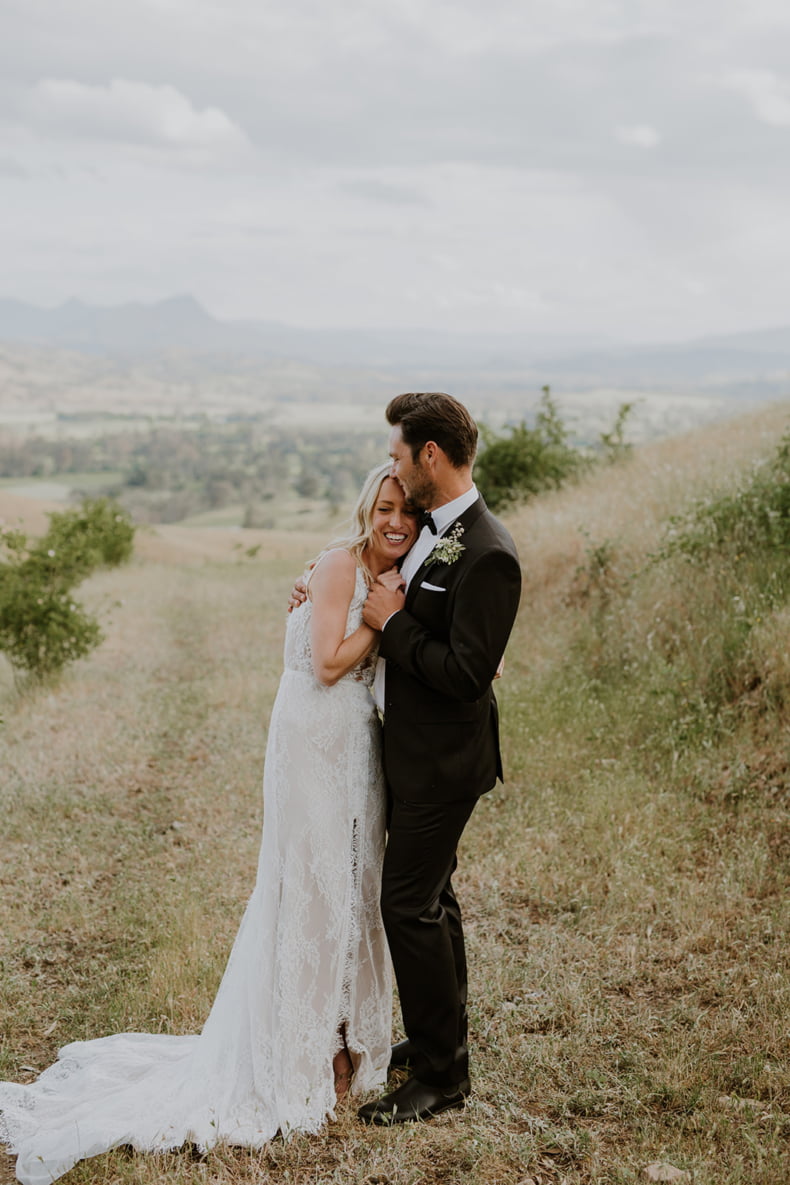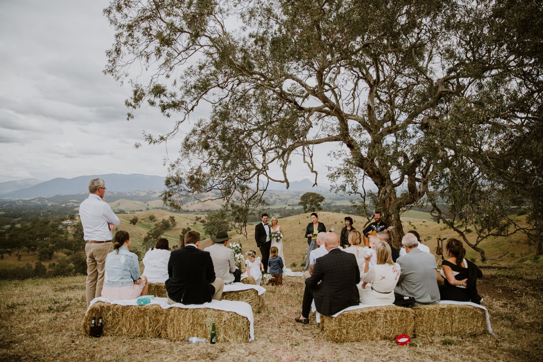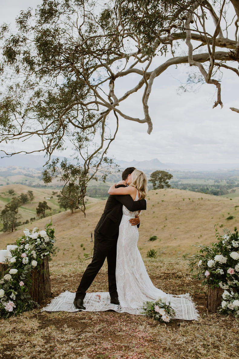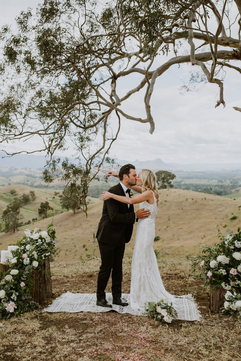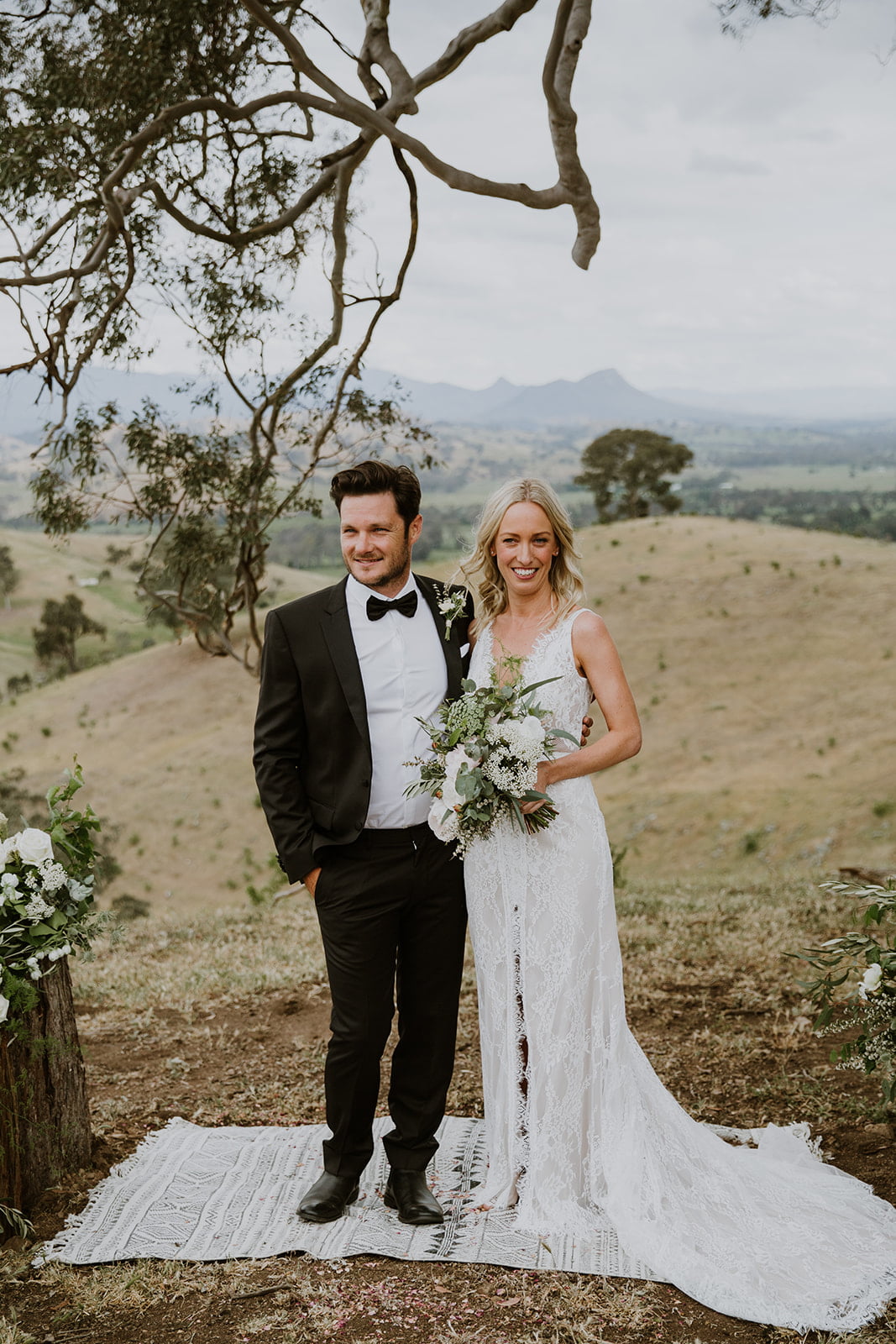 THE VENUE “After looking over tonnes of options from wineries to holiday homes, Hawaii to Broome, one day I said to Jay, “why don’t we just have the wedding here, at home?”. We had just finished building our house and rather than spending money on a venue we decided to put that money into our landscaping. Jay’s parents have a beautiful property that looks over the Cathedral Ranges. We took a drive up to the top of their hill one day with the kids and thought yep, why would we do it anywhere else? From that day on there was no more questioning, it felt right. It was perfect with kids too, they kept themselves busy while mum and dad had a blast!”