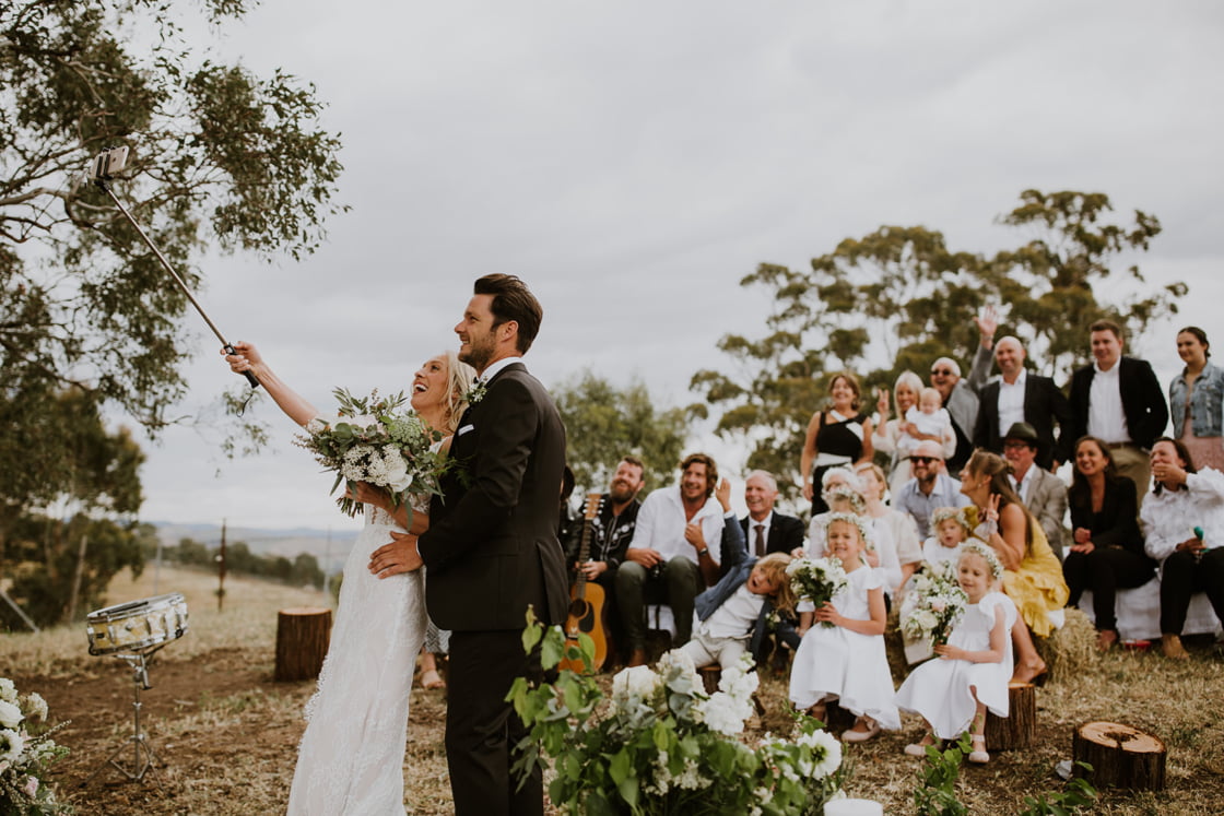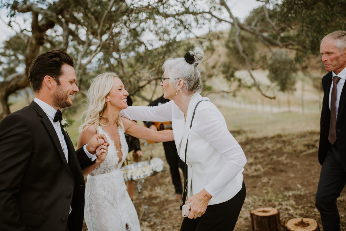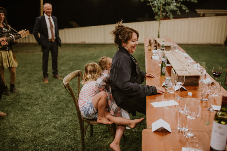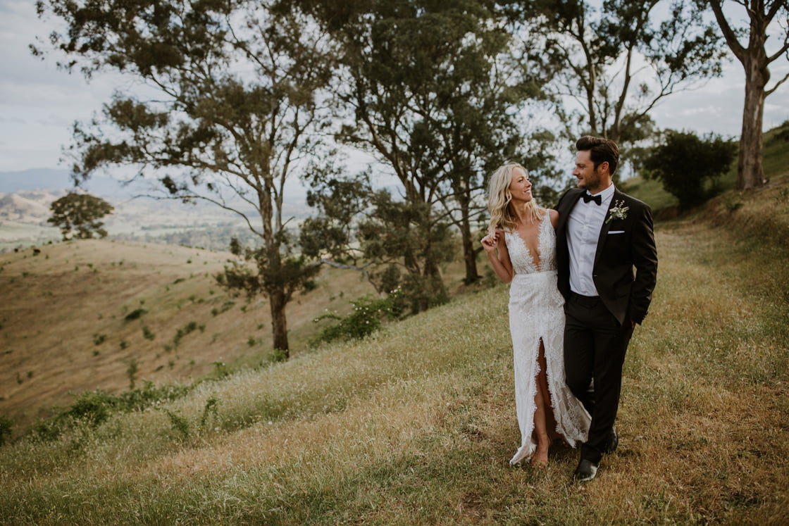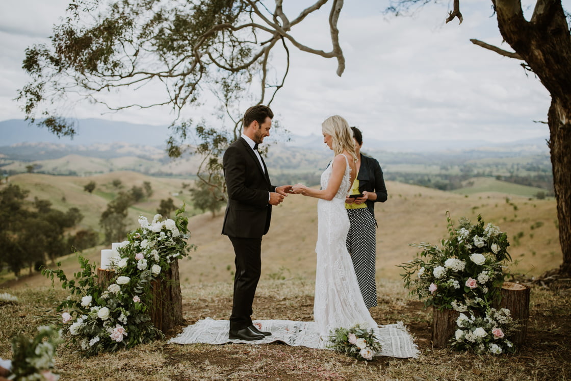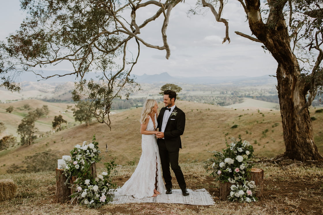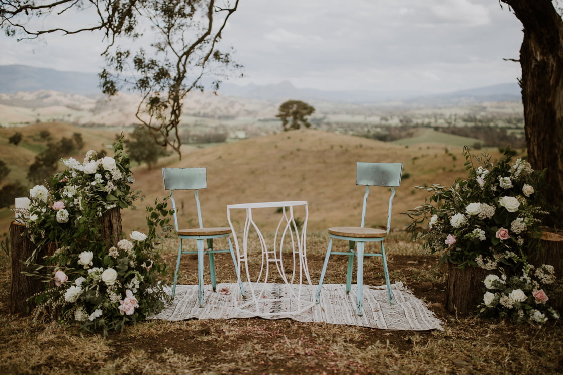 THE VENUE “After looking over tonnes of options from wineries to holiday homes, Hawaii to Broome, one day I said to Jay, “why don’t we just have the wedding here, at home?”. We had just finished building our house and rather than spending money on a venue we decided to put that money into our landscaping. Jay’s parents have a beautiful property that looks over the Cathedral Ranges. We took a drive up to the top of their hill one day with the kids and thought yep, why would we do it anywhere else? From that day on there was no more questioning, it felt right. It was perfect with kids too, they kept themselves busy while mum and dad had a blast!”