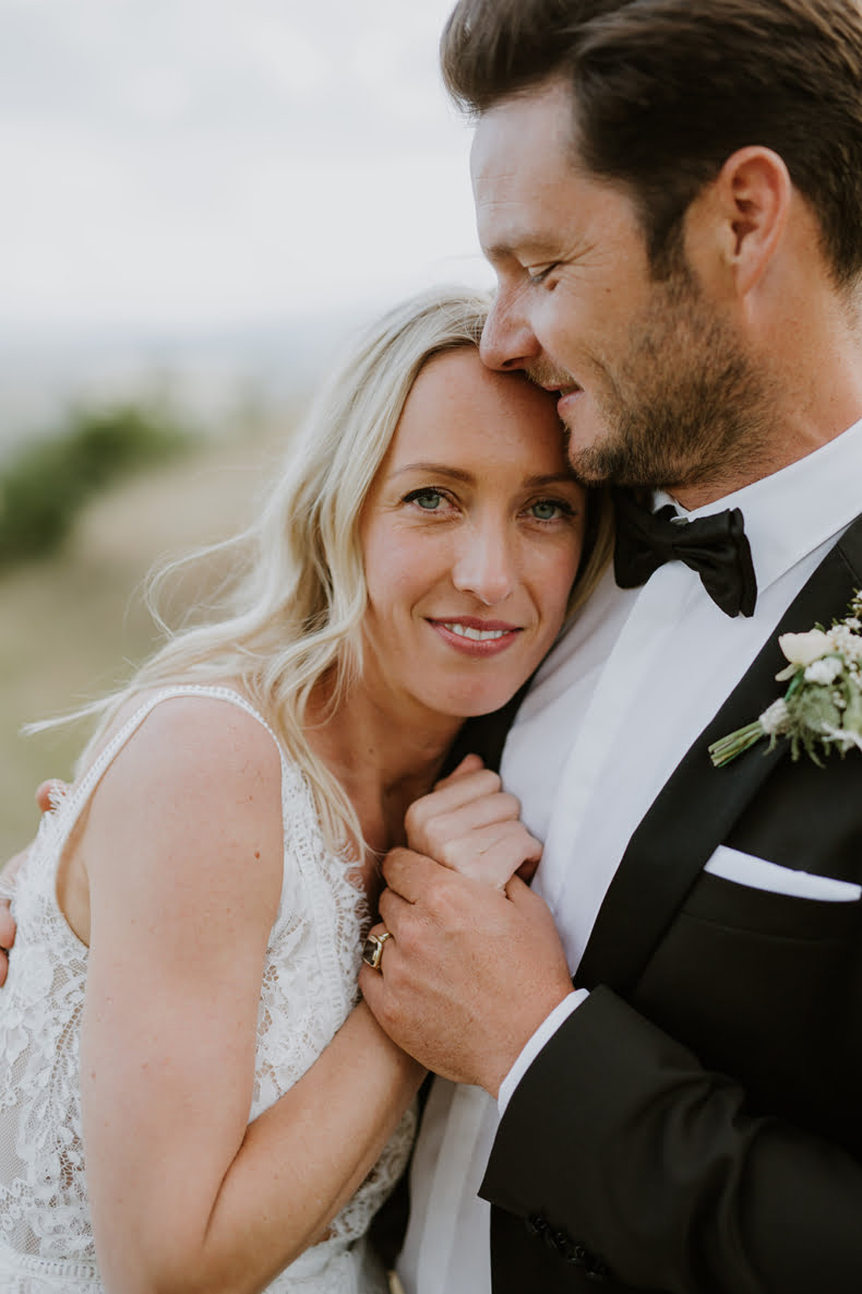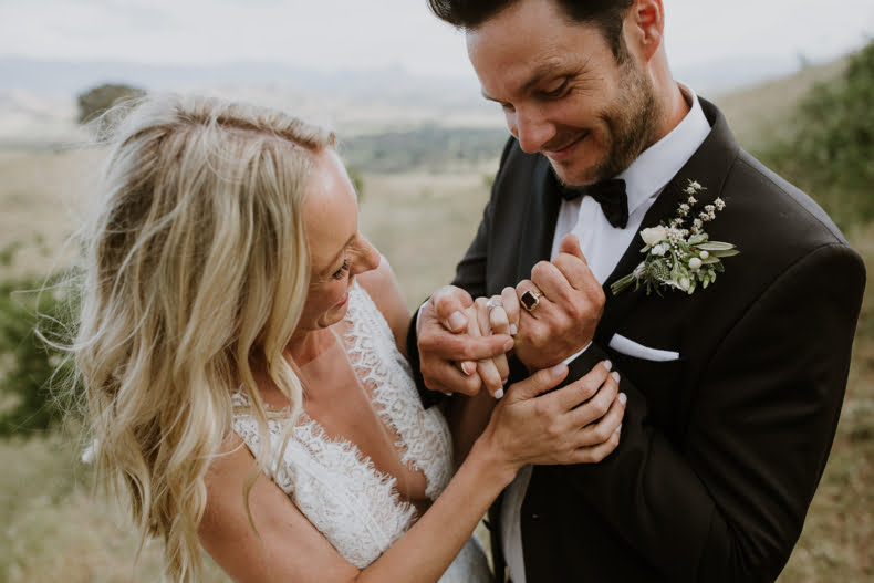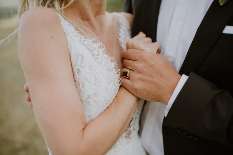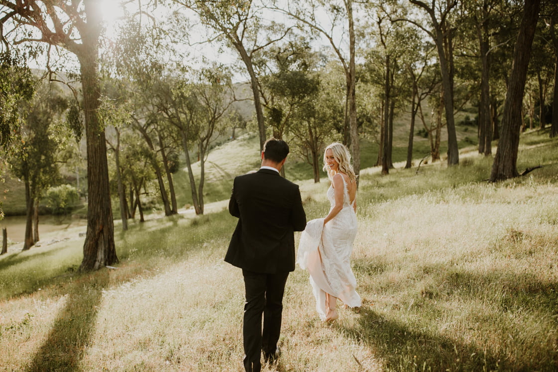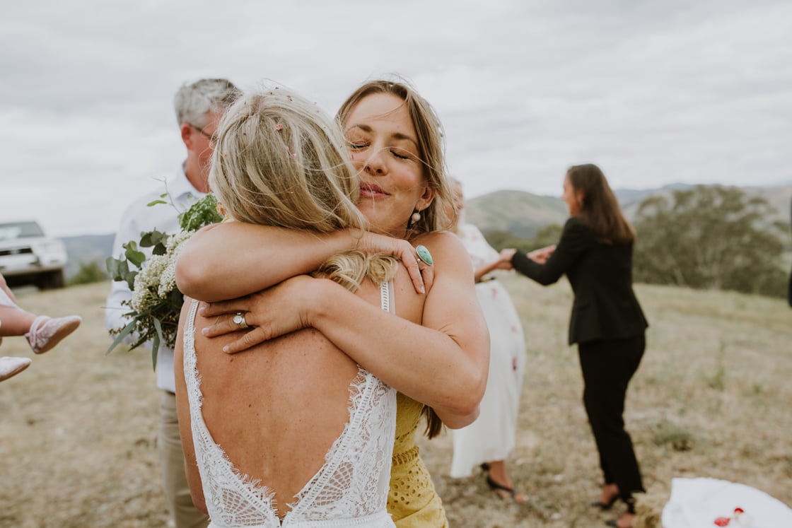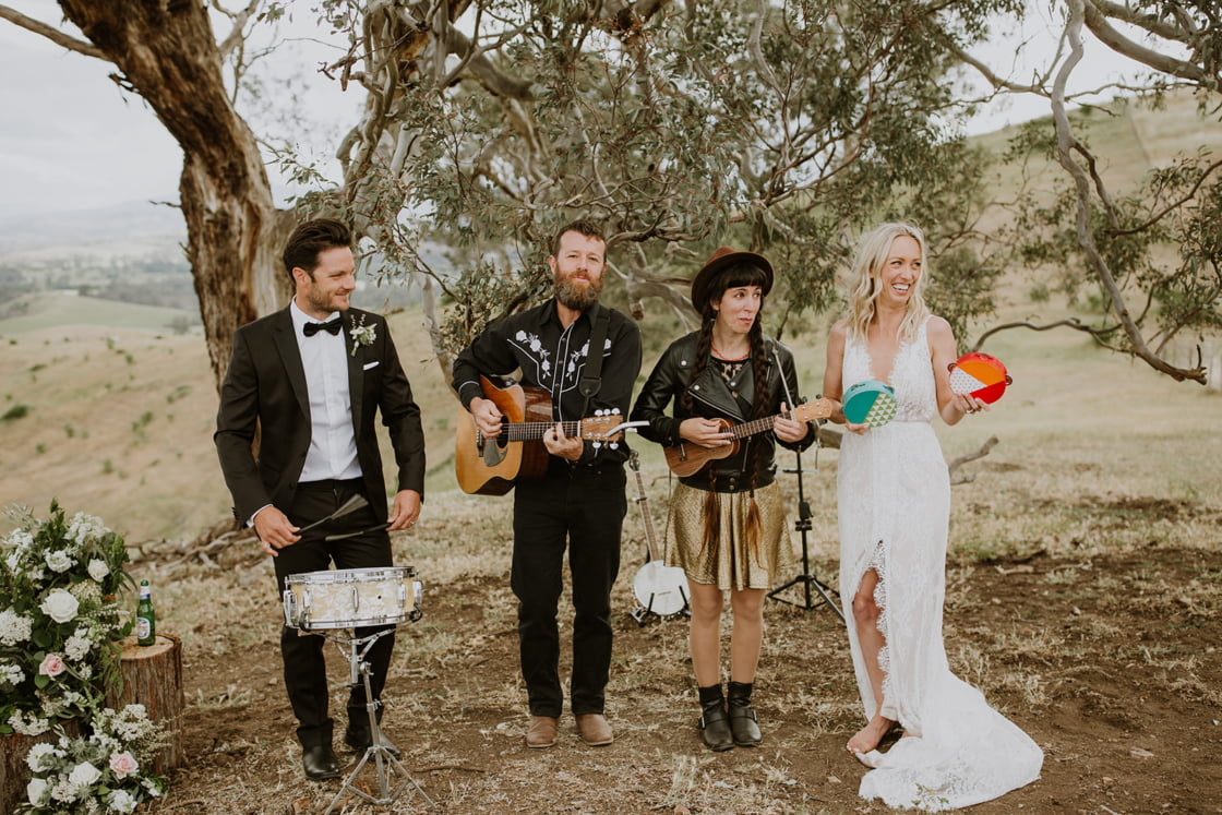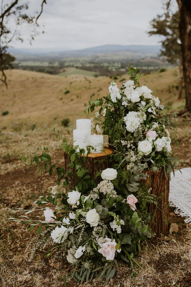 THE VENUE “After looking over tonnes of options from wineries to holiday homes, Hawaii to Broome, one day I said to Jay, “why don’t we just have the wedding here, at home?”. We had just finished building our house and rather than spending money on a venue we decided to put that money into our landscaping. Jay’s parents have a beautiful property that looks over the Cathedral Ranges. We took a drive up to the top of their hill one day with the kids and thought yep, why would we do it anywhere else? From that day on there was no more questioning, it felt right. It was perfect with kids too, they kept themselves busy while mum and dad had a blast!”