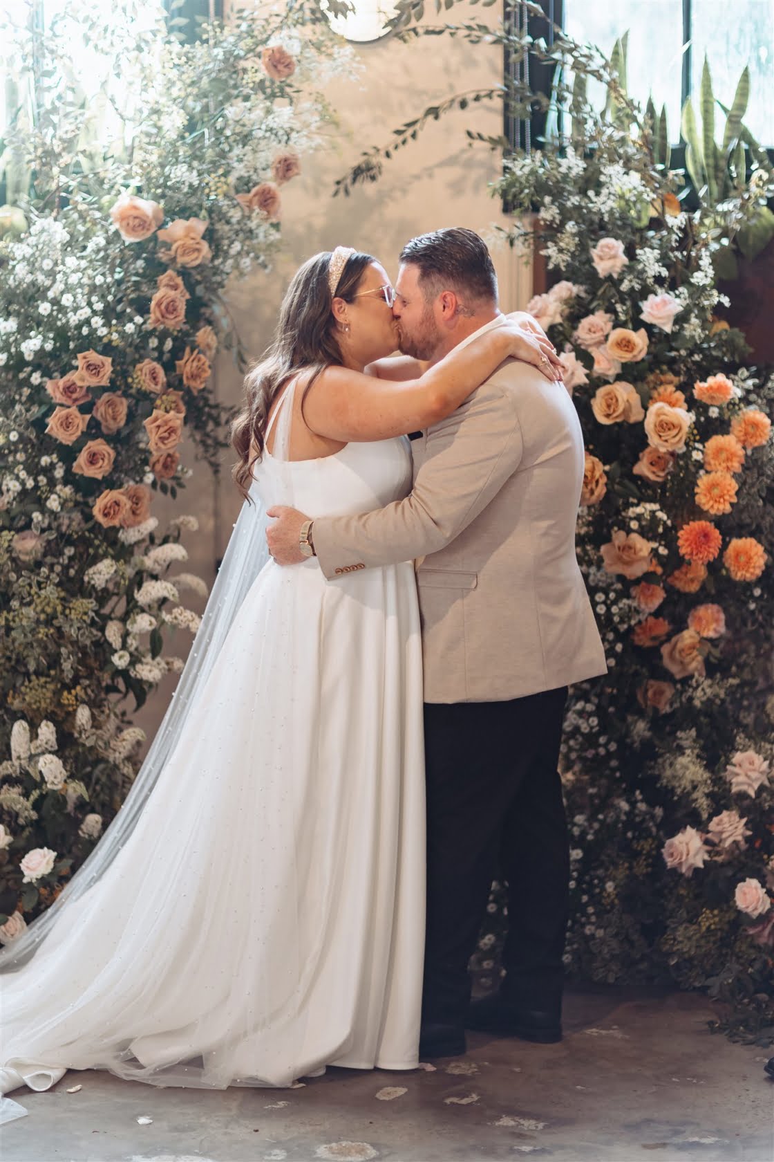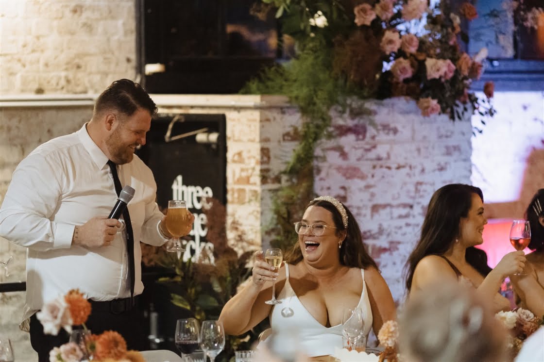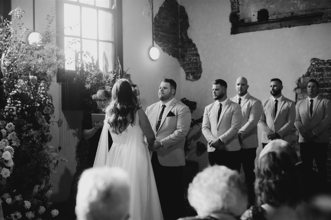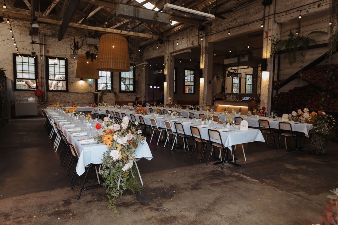 THE VENUE “We had always wanted a warehouse vibe for the wedding and imagined the romantic and soft florals amongst the harsh industrial setting. We both love our food and Three Blue Ducks Rosebery does food exceptionally well and had many events and weddings held there prior so the process and event management was great. So for us, it ticked all of the boxes. We also loved the idea of having the reception in a restaurant as one big extended family dinner as we have family dinner with Court’s family every Saturday night.”